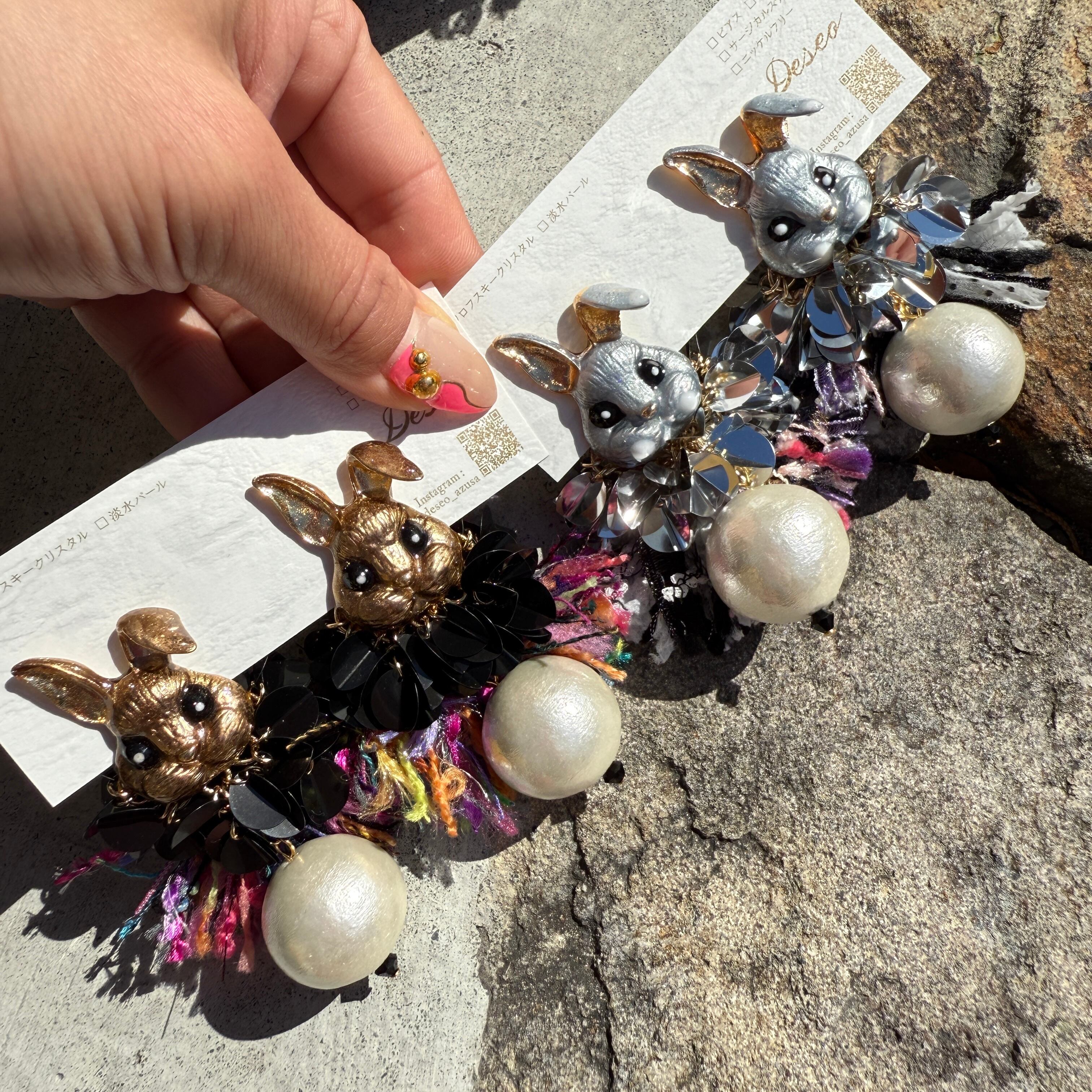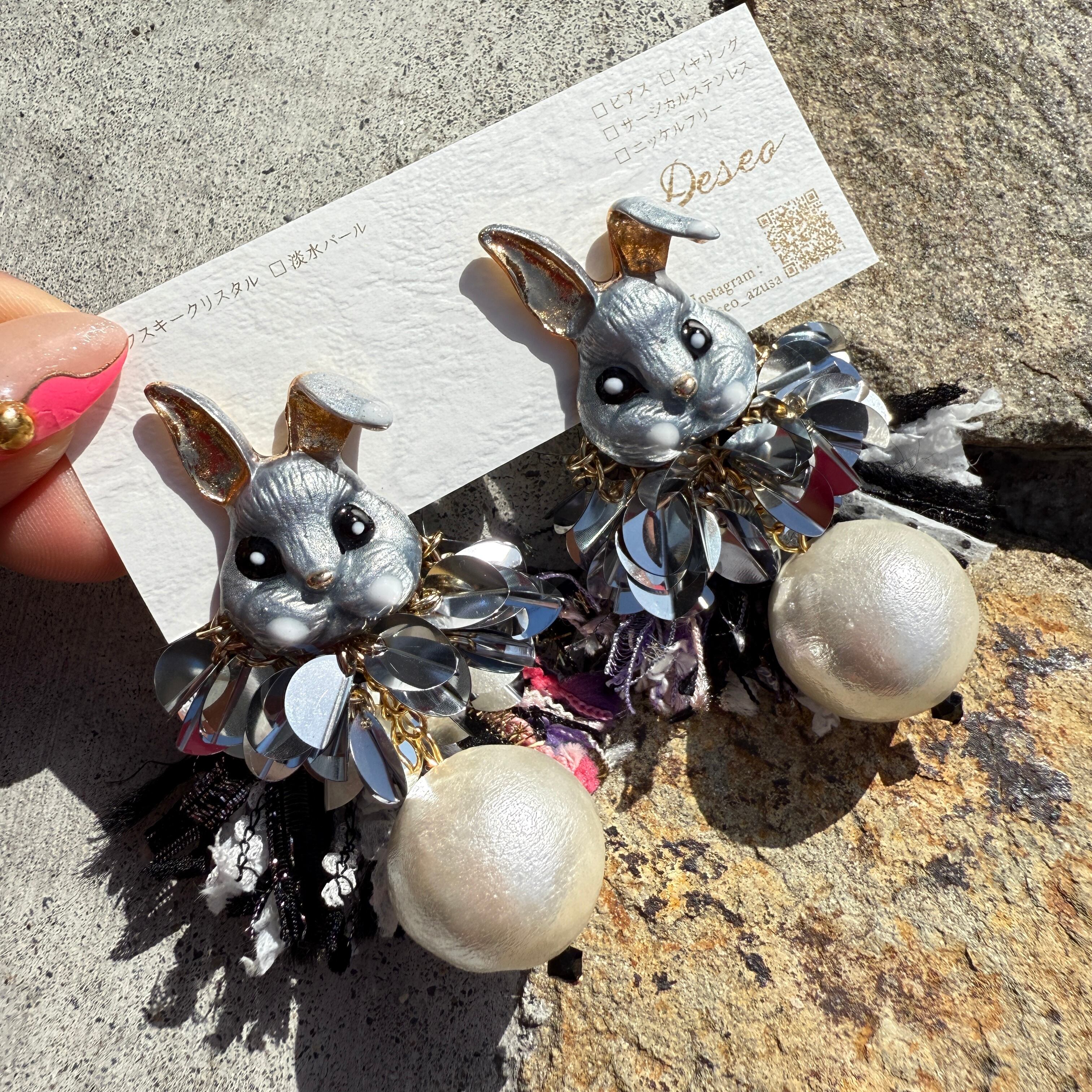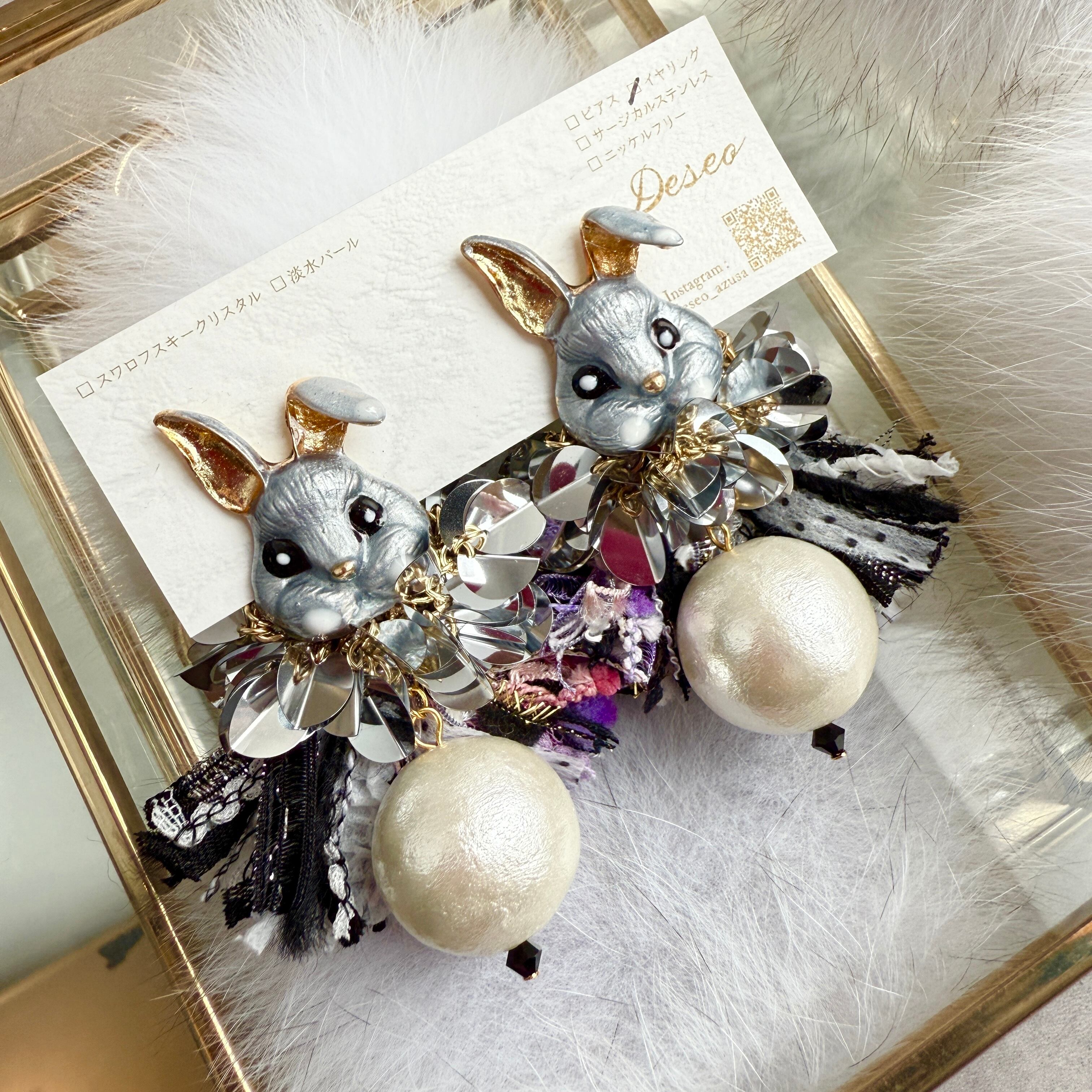 うさぎ❤️ギラMOJA★うさぎピアス うさぎイヤリング NO.756