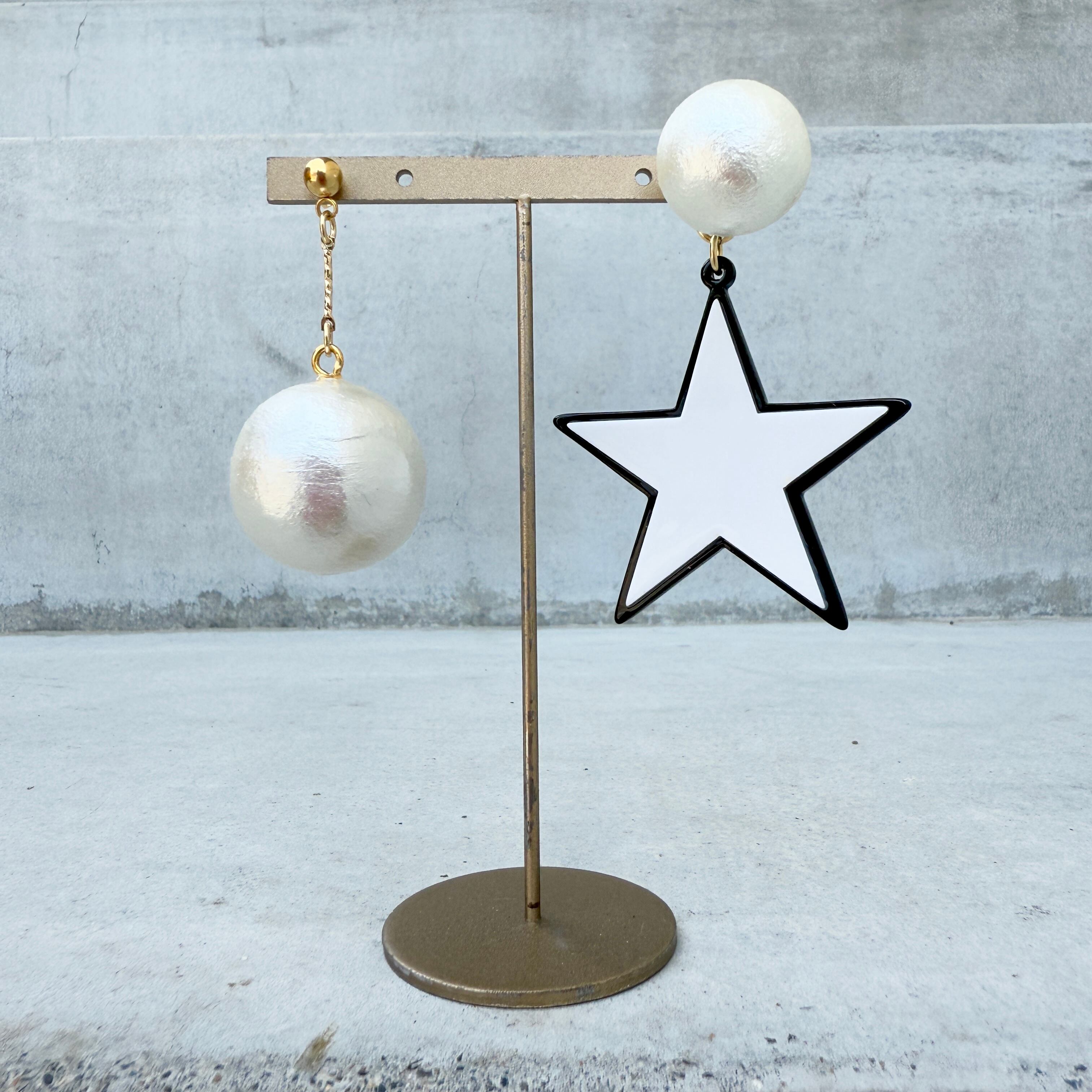 STARアシンメトリー★パールピアス パールイヤリング 星ピアス 星イヤリング NO.768