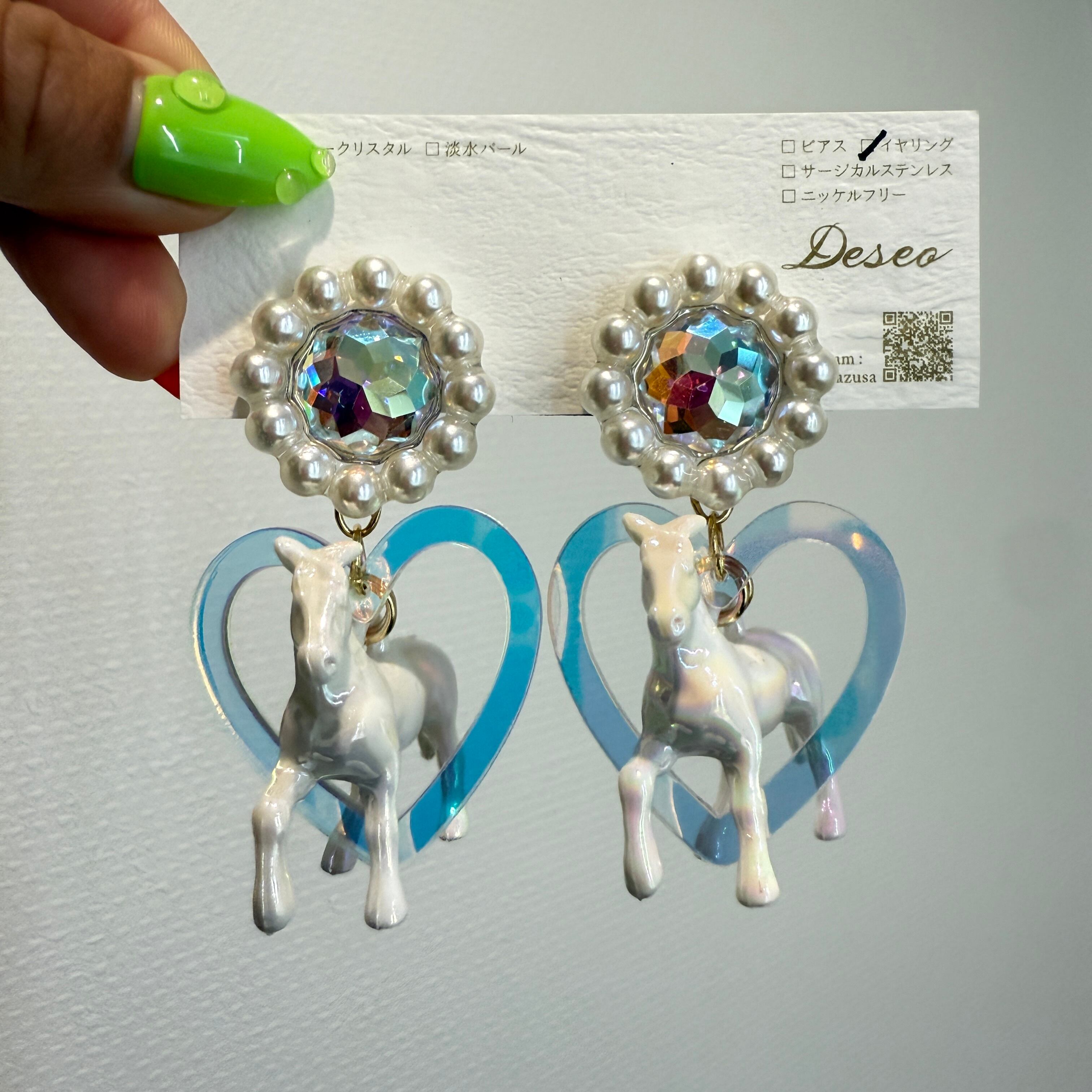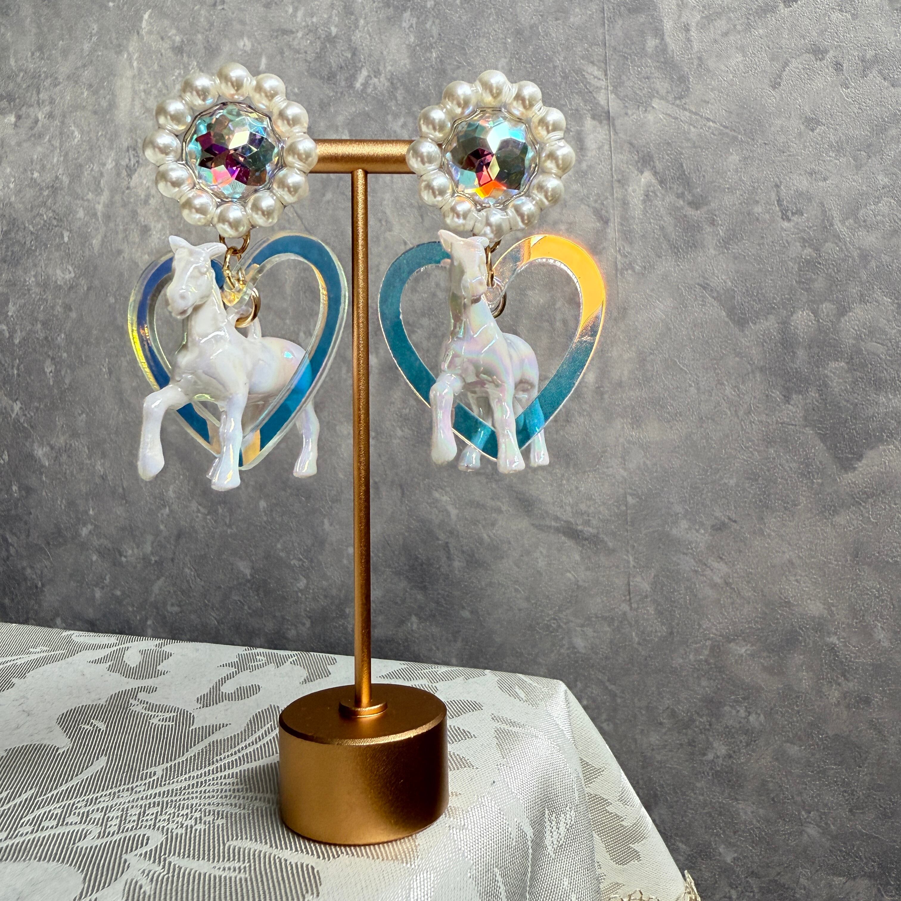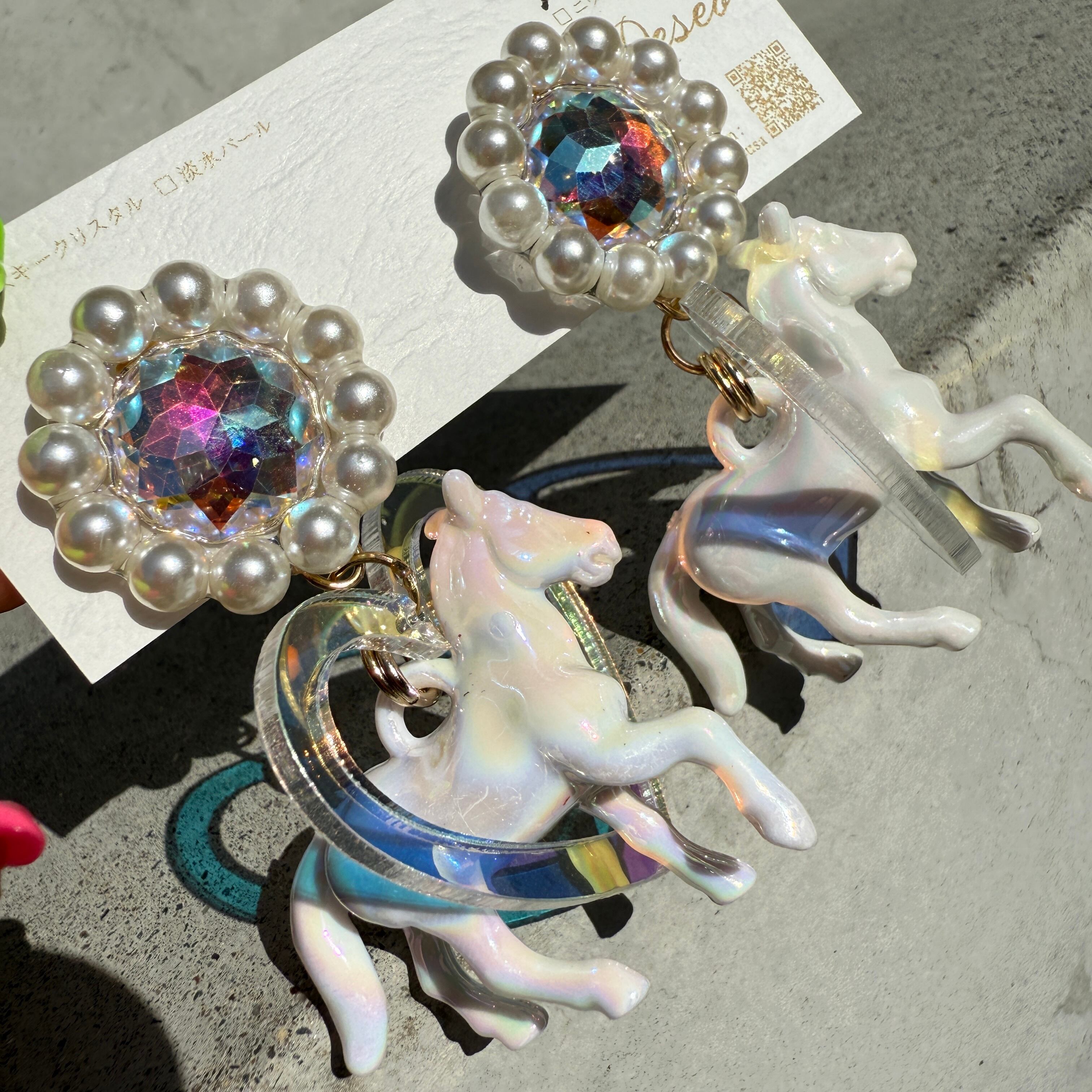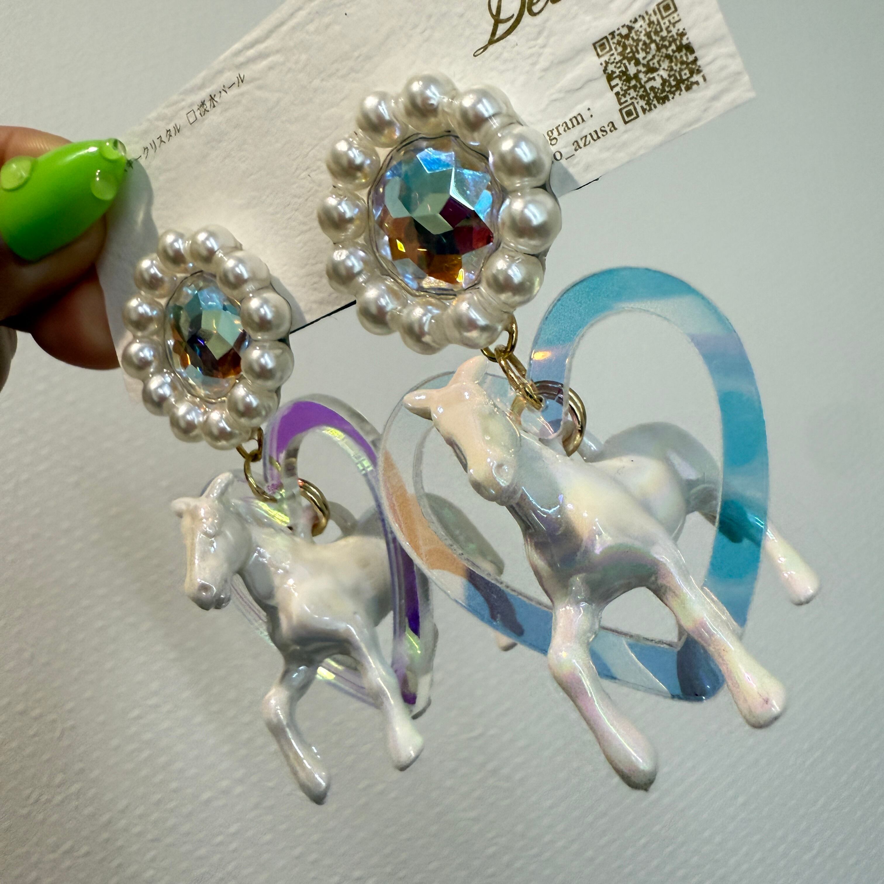 駆け出すオーロラ白馬 × ヴィンテージスワロフスキー✨夢かわいい耳アクセ♡ NO.780