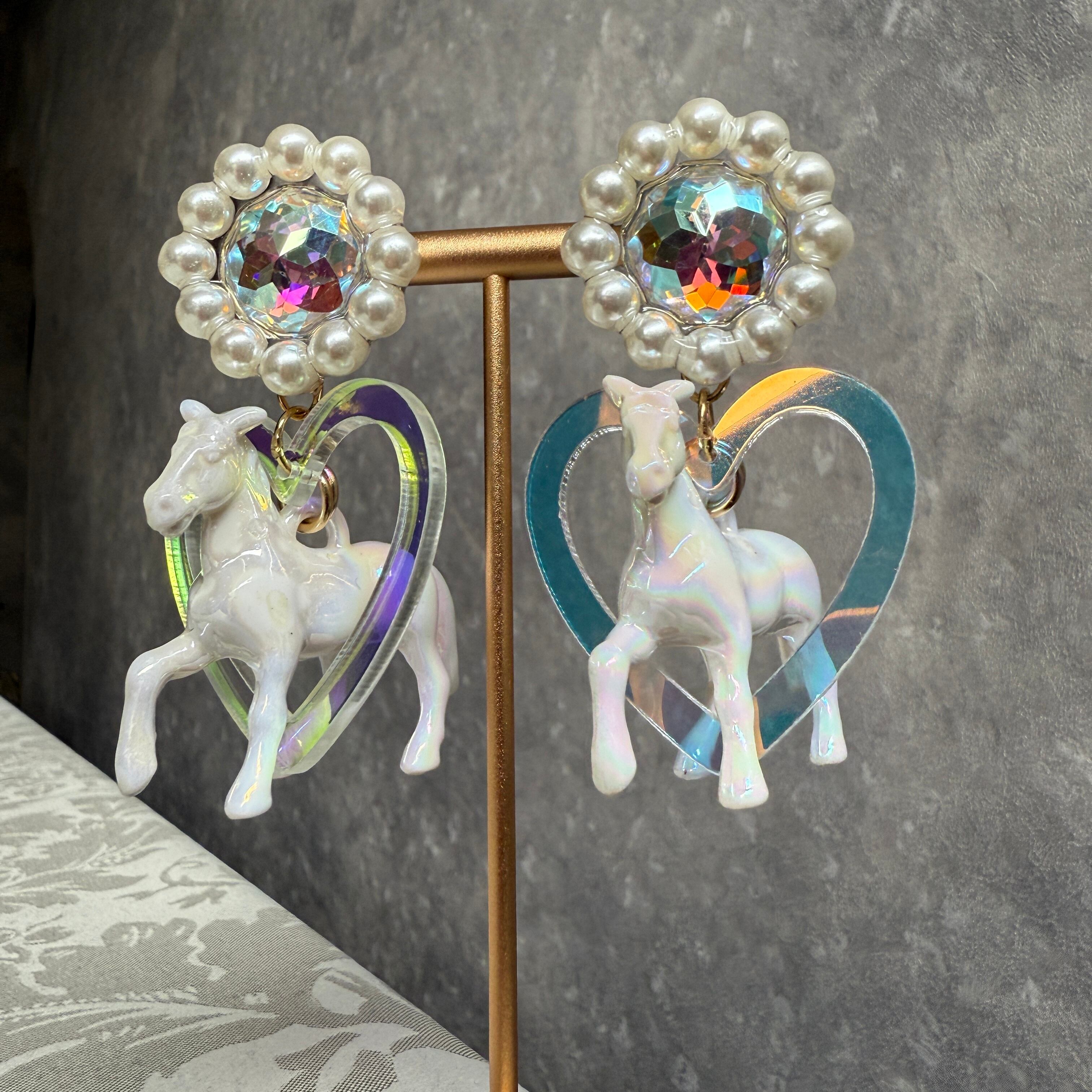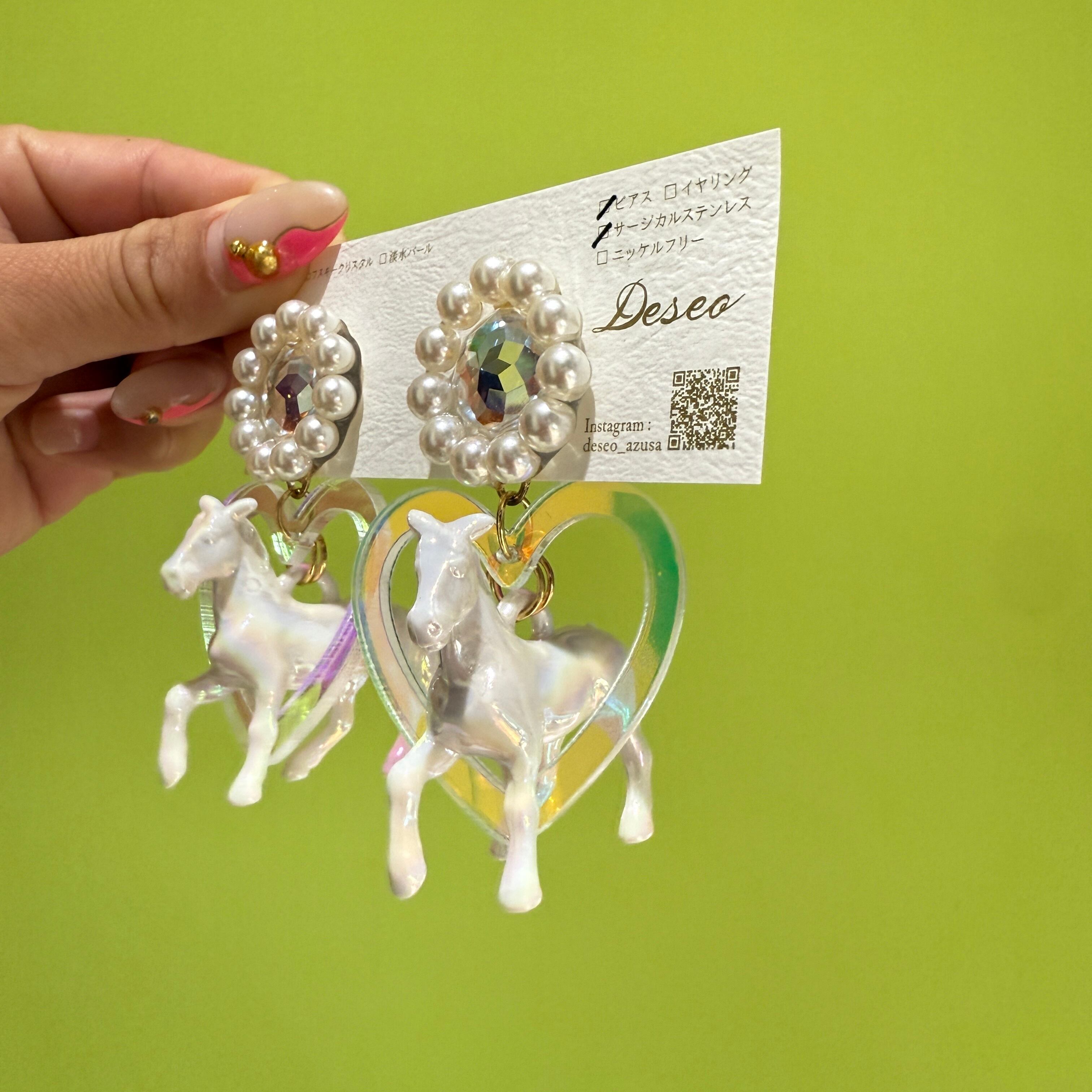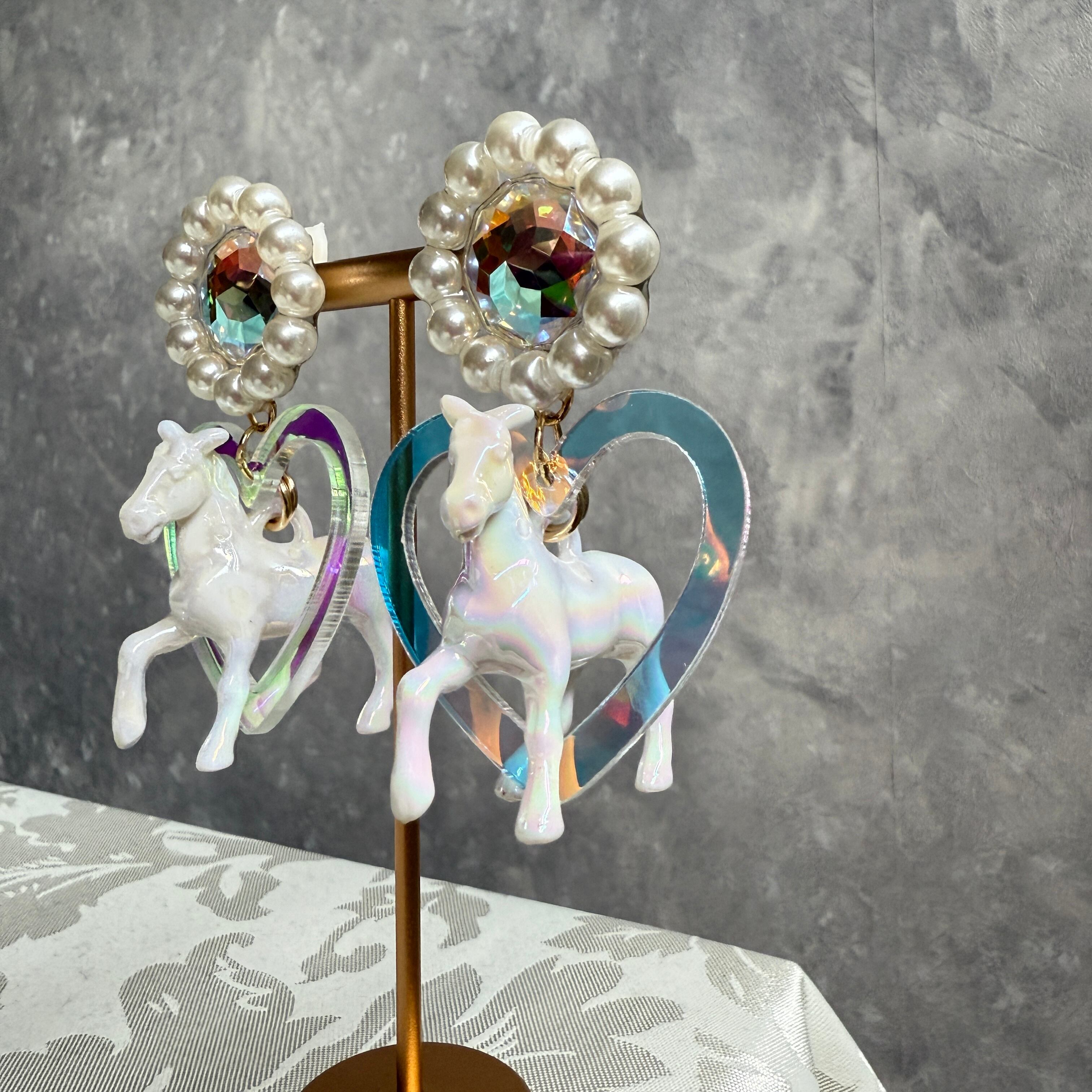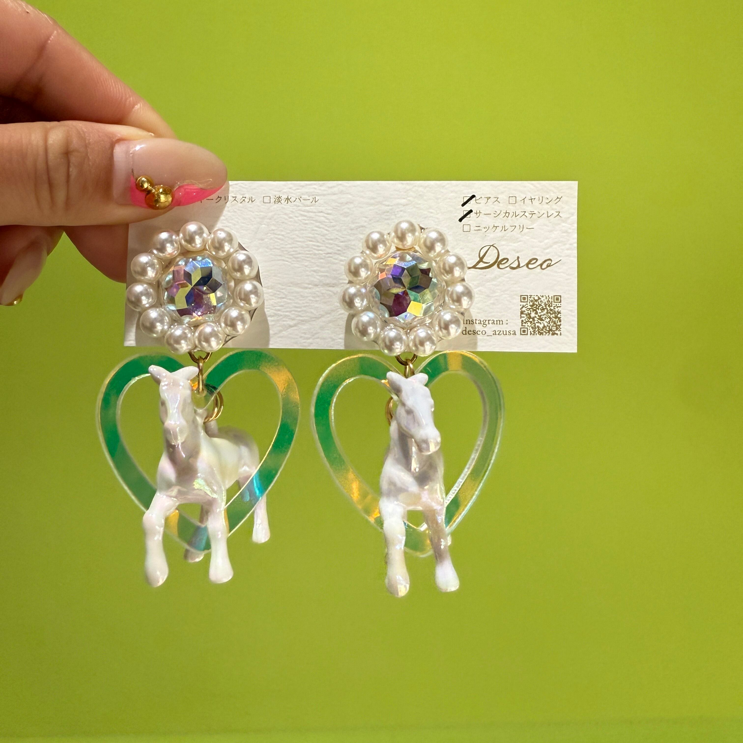 駆け出すオーロラ白馬 × ヴィンテージスワロフスキー✨夢かわいい耳アクセ♡ NO.780