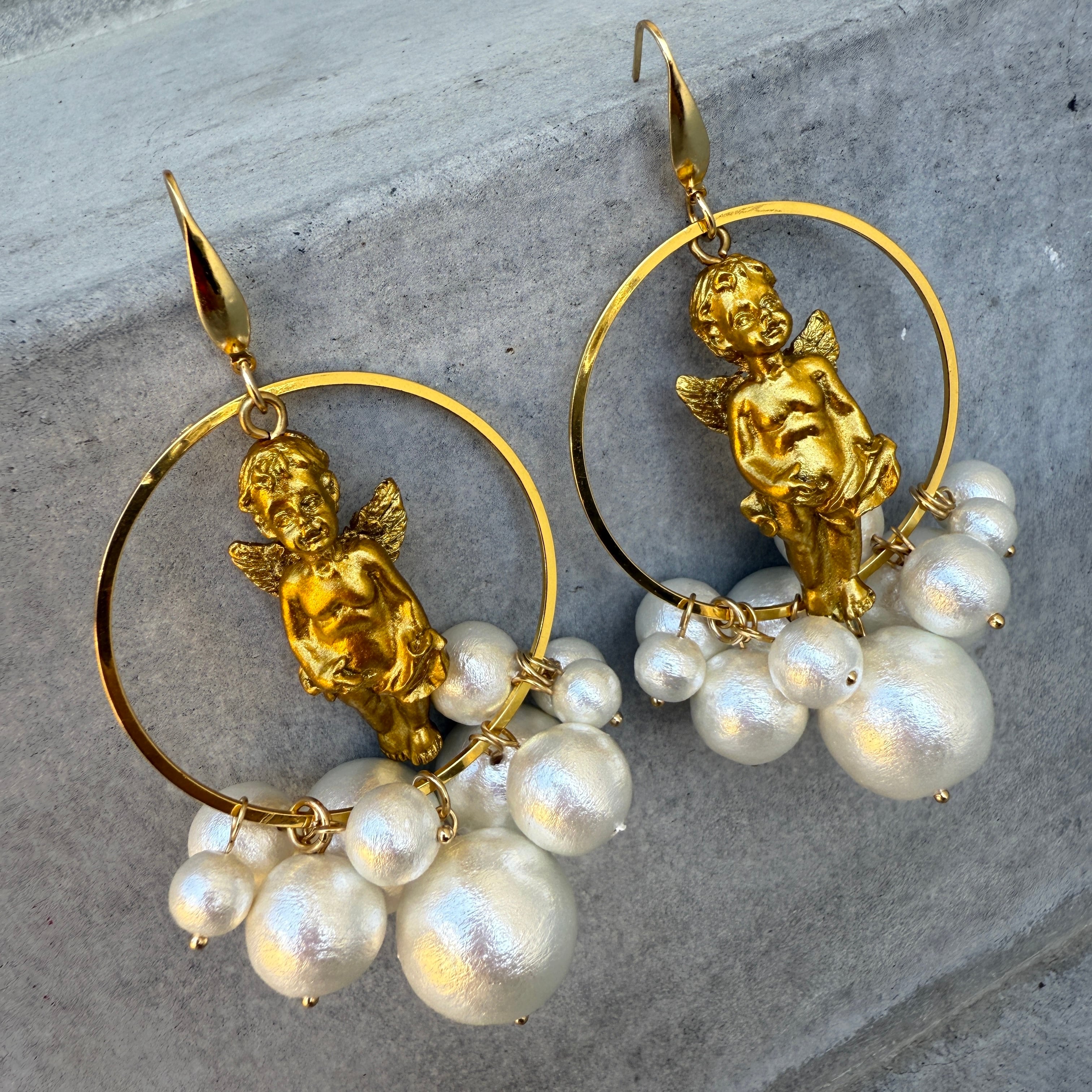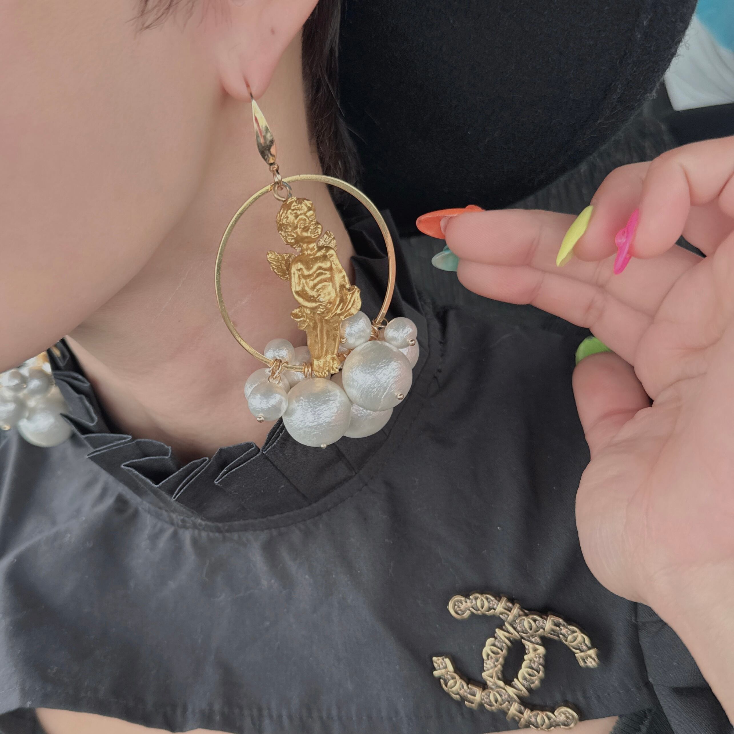 天のご加護✨天使ピアス 天使イヤリング✨大ぶりパール NO.803