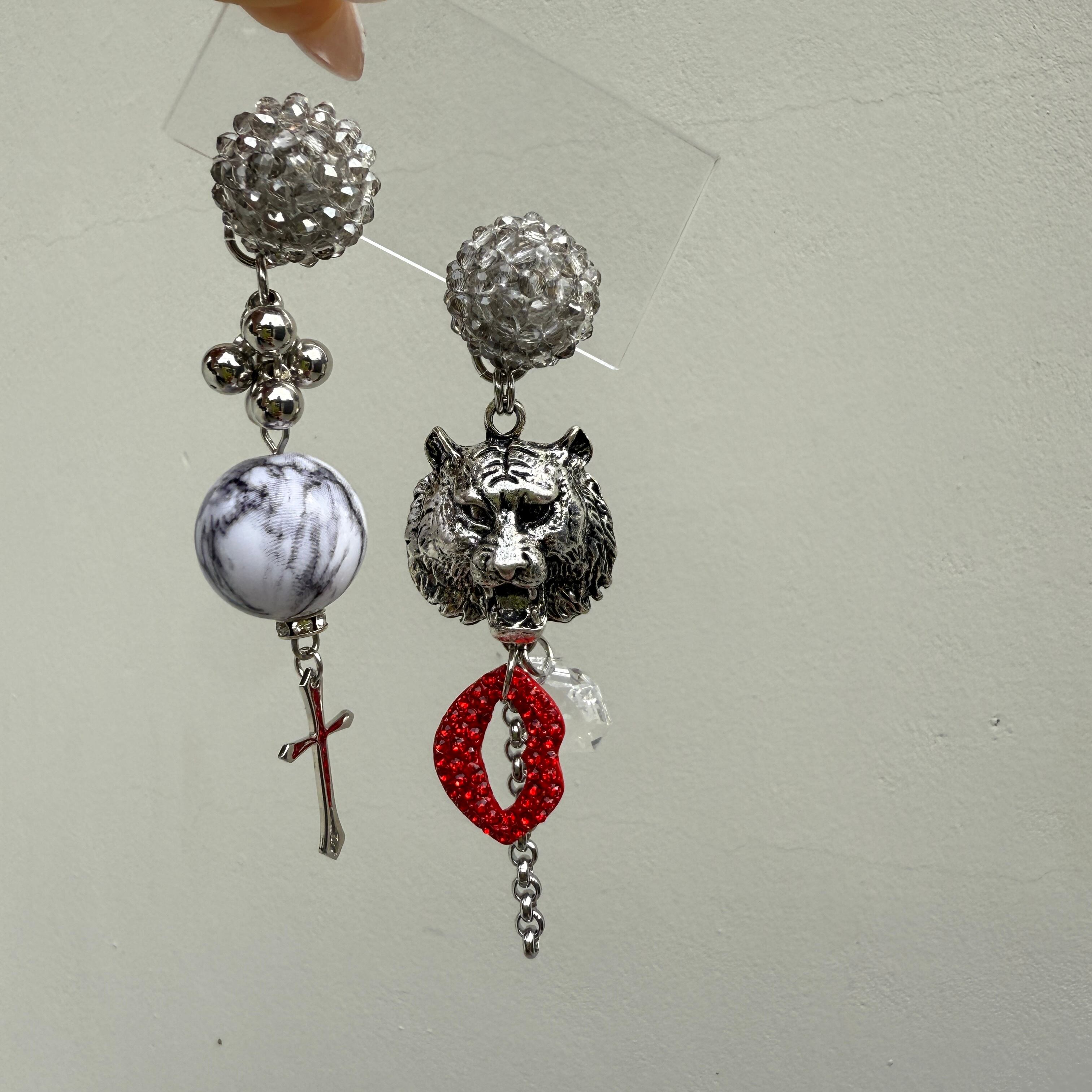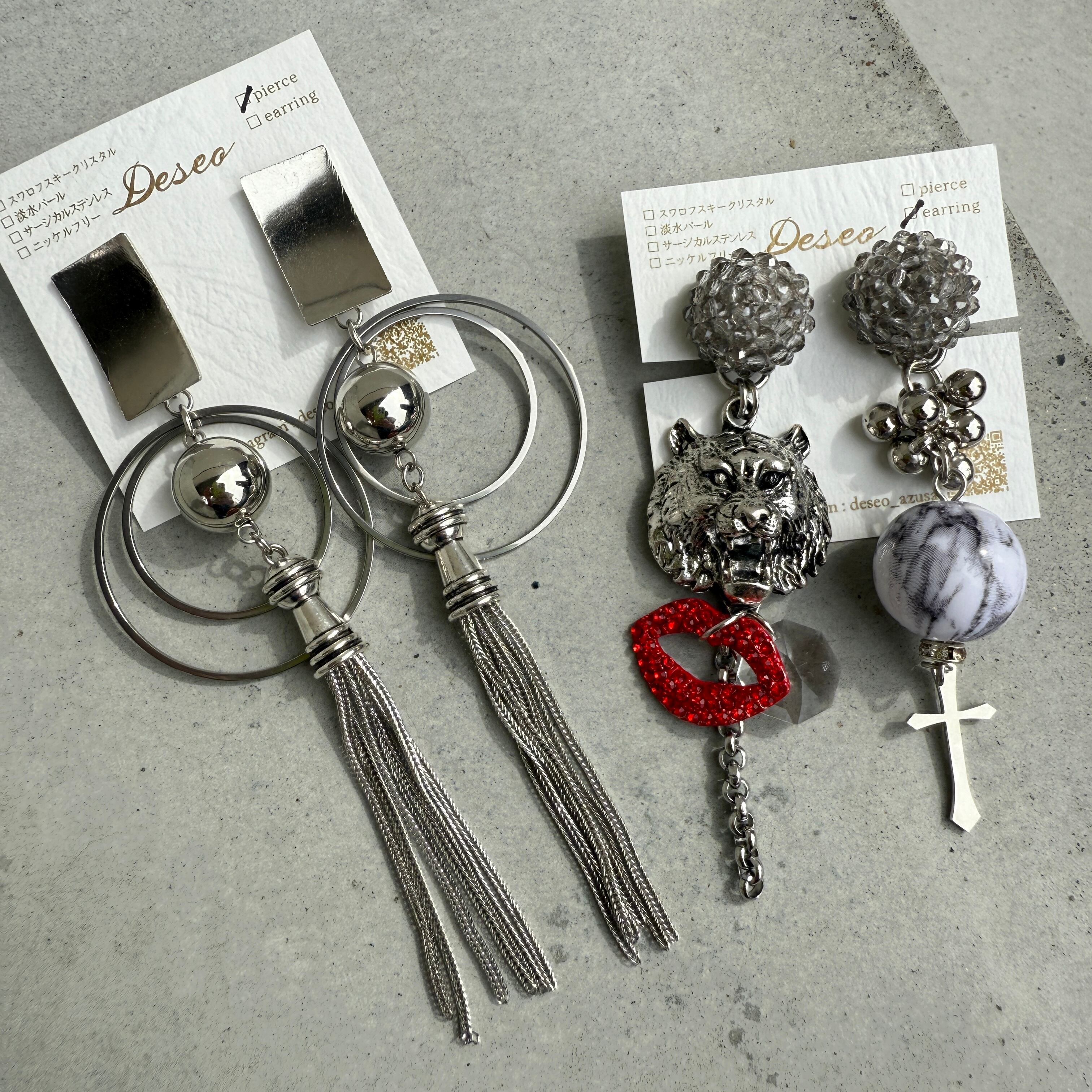 グレービーズの大きめトップはイヤリング、着用写真の小さめシルバートップがピアスです