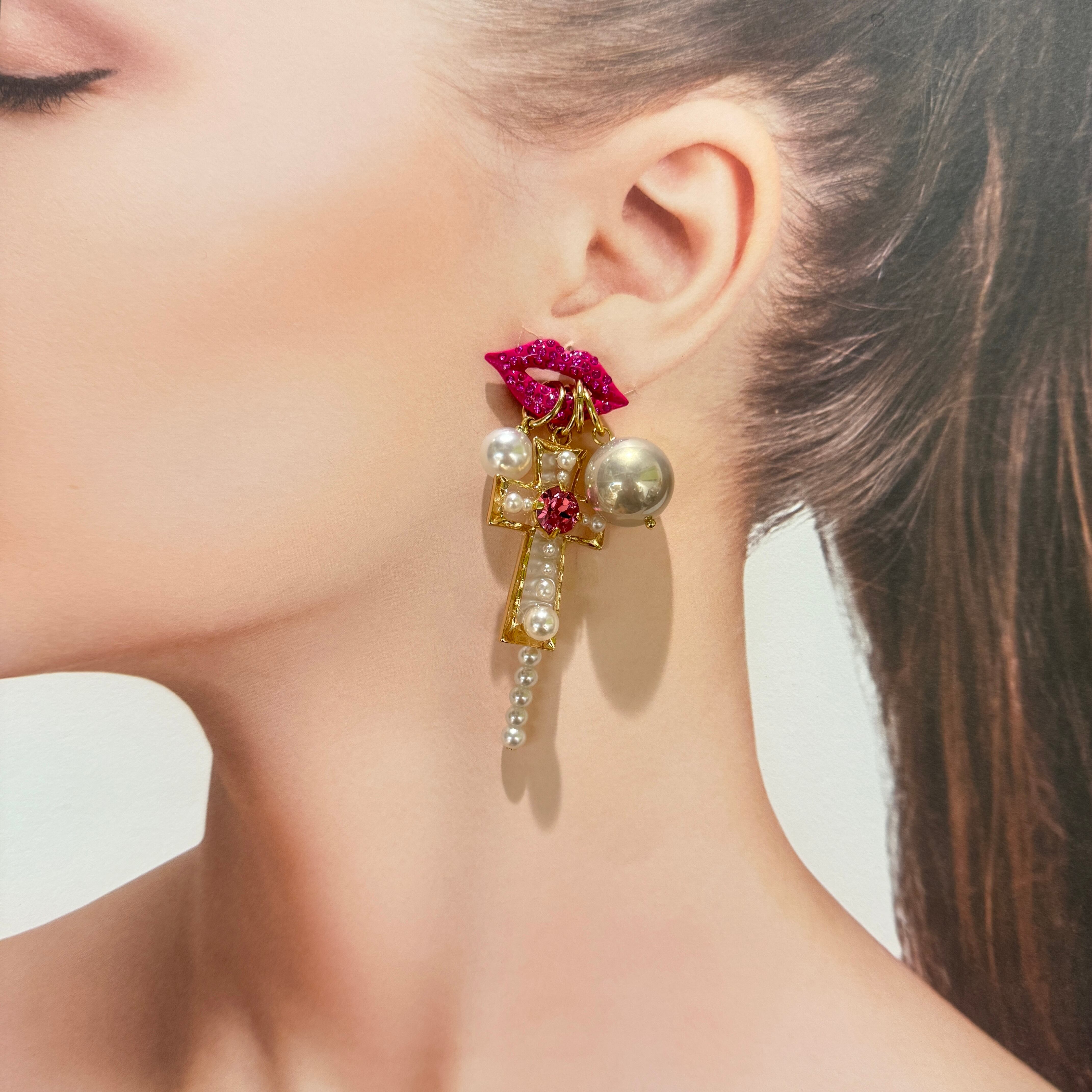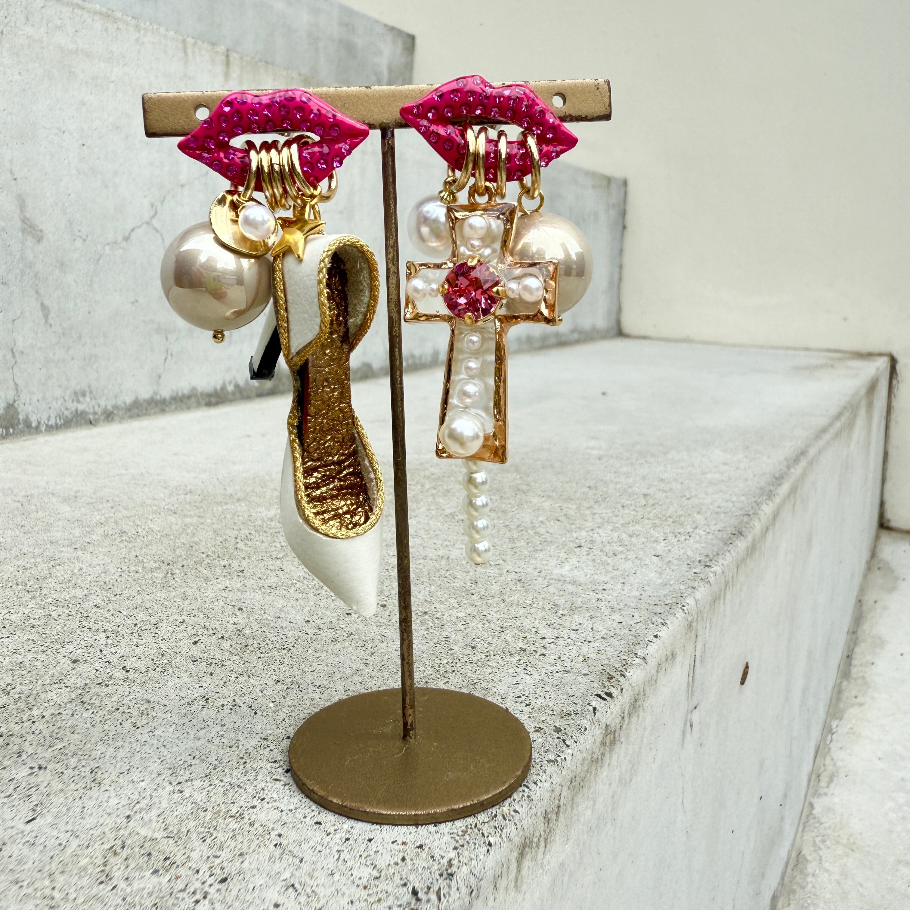 こちらはピンクスワロフスキーとパールを使用して宝石のようなクロスビジューを製作しております