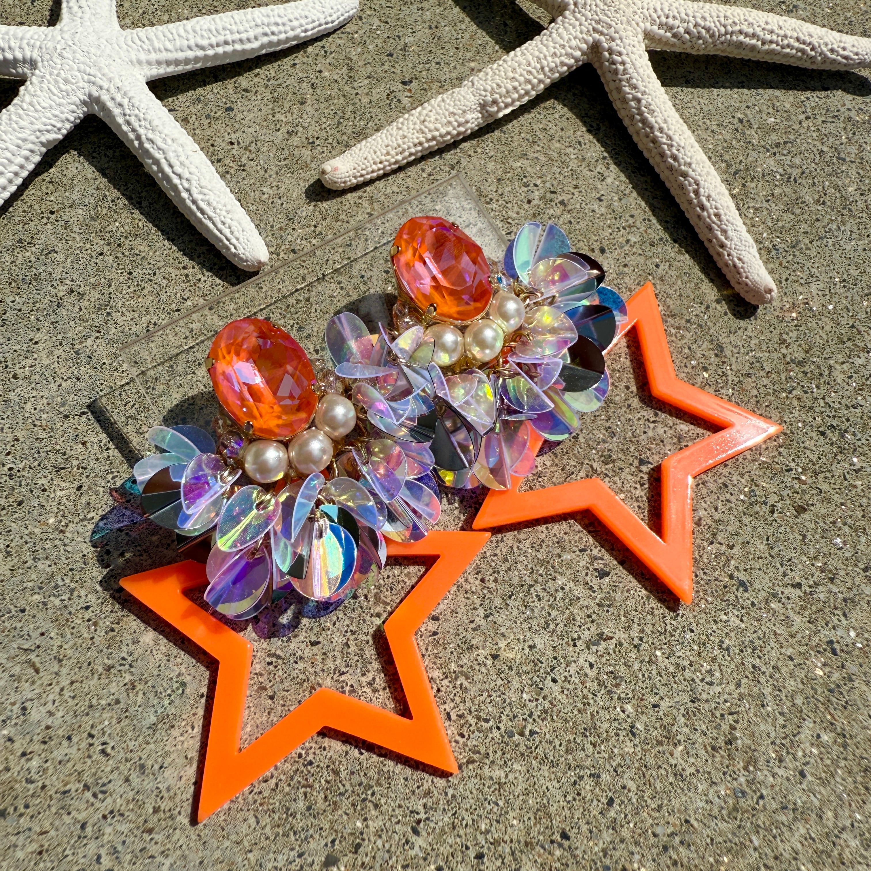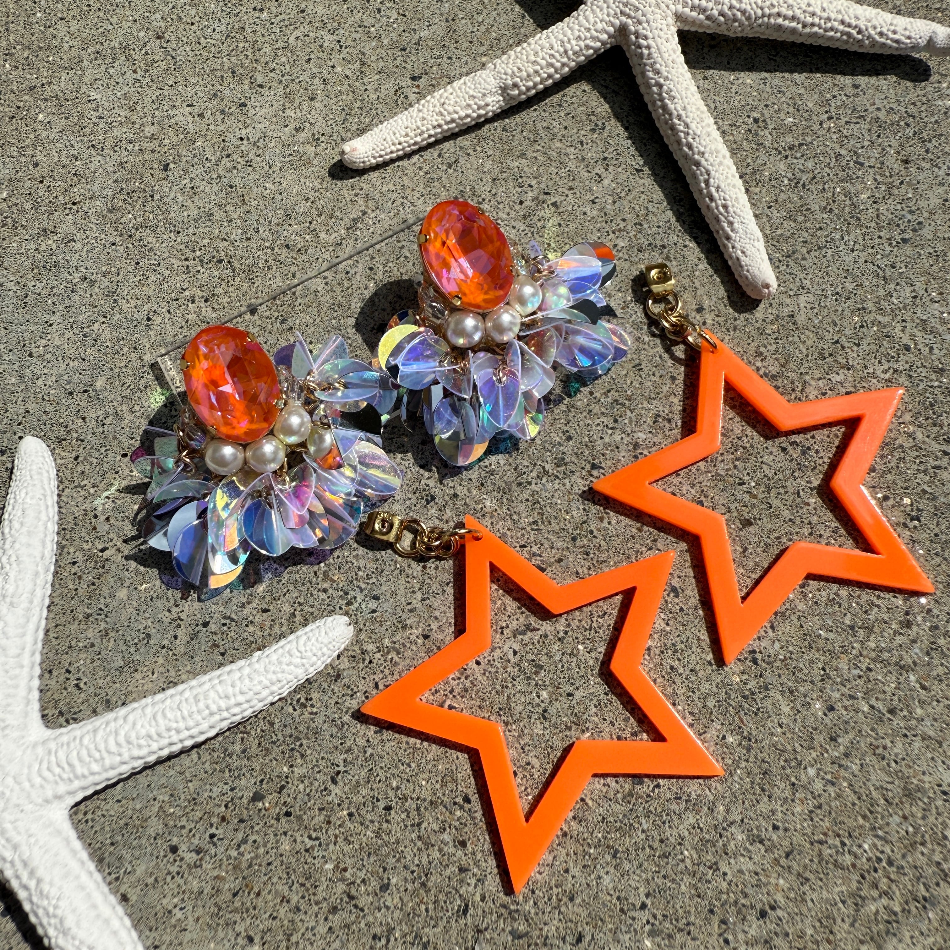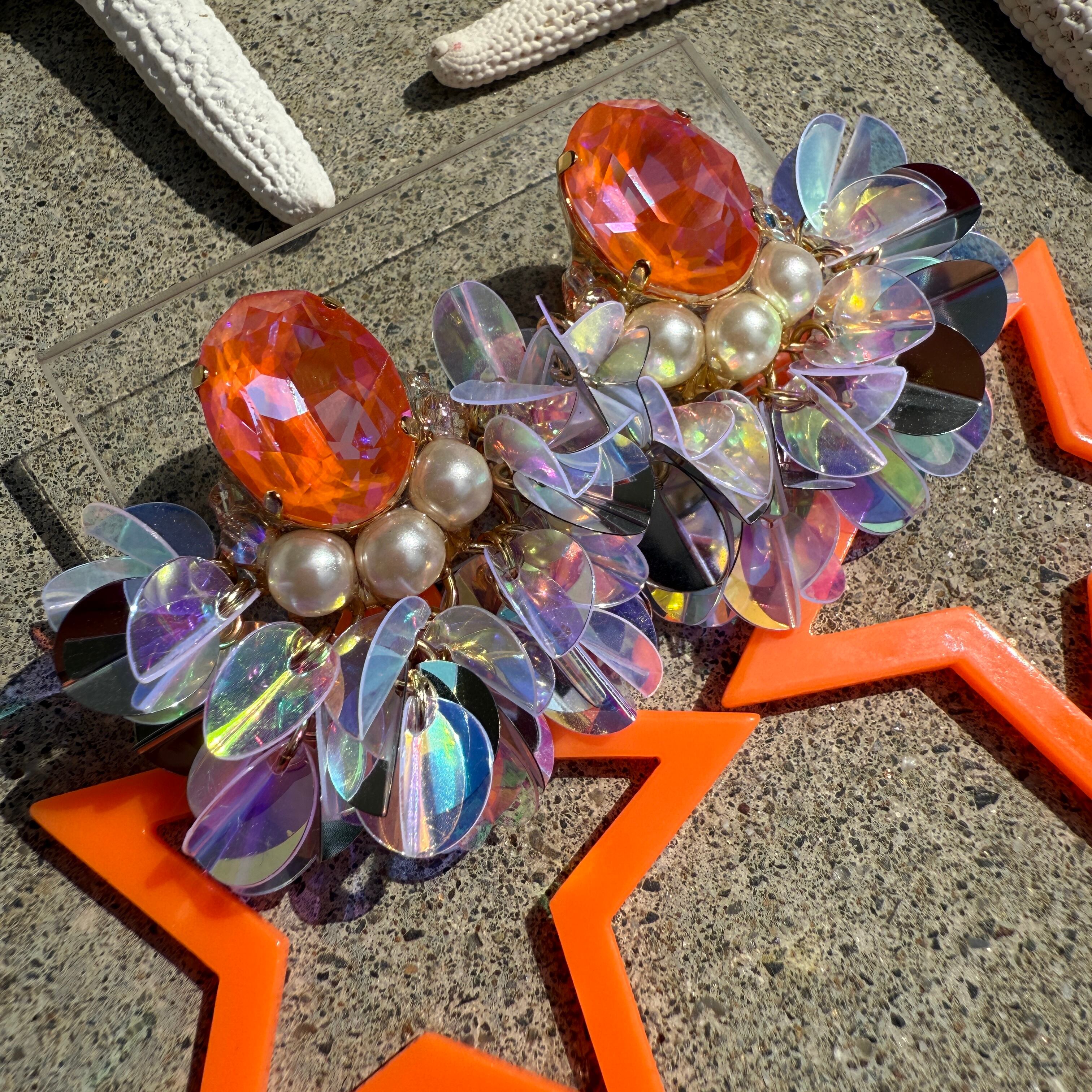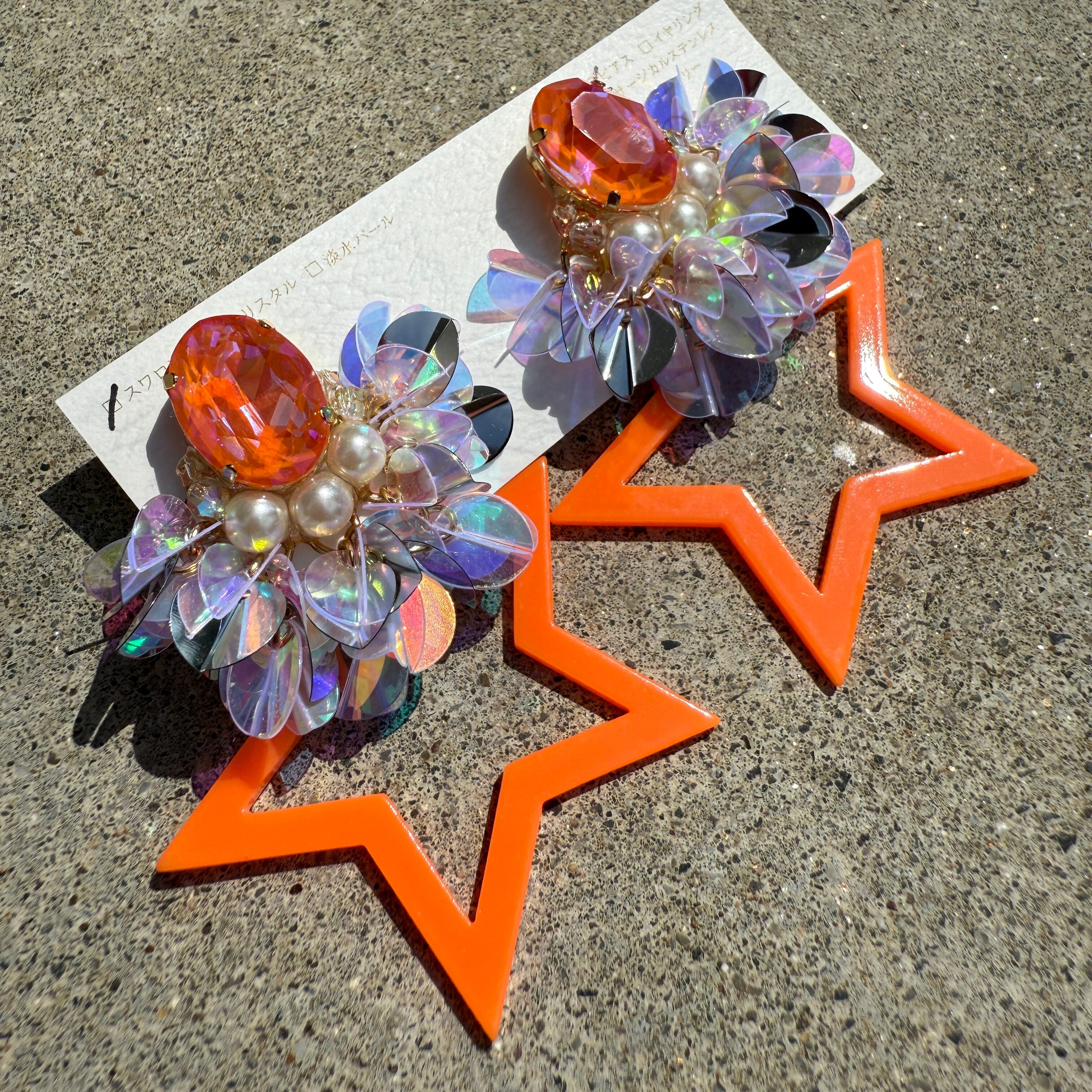 Orange★スワロフスキー × スパンコール✨スワロフスキーピアス スワロフスキーイヤリング NO.848