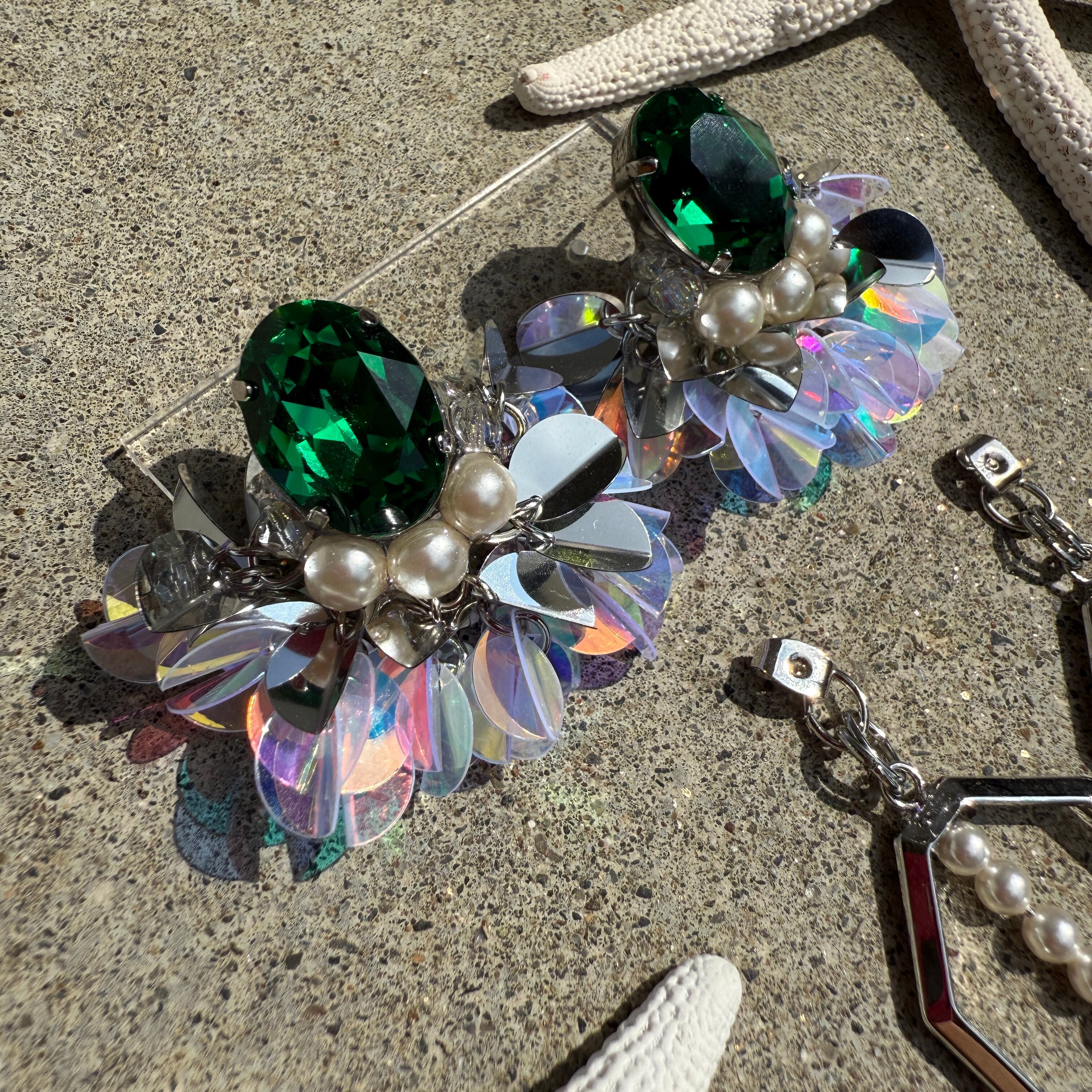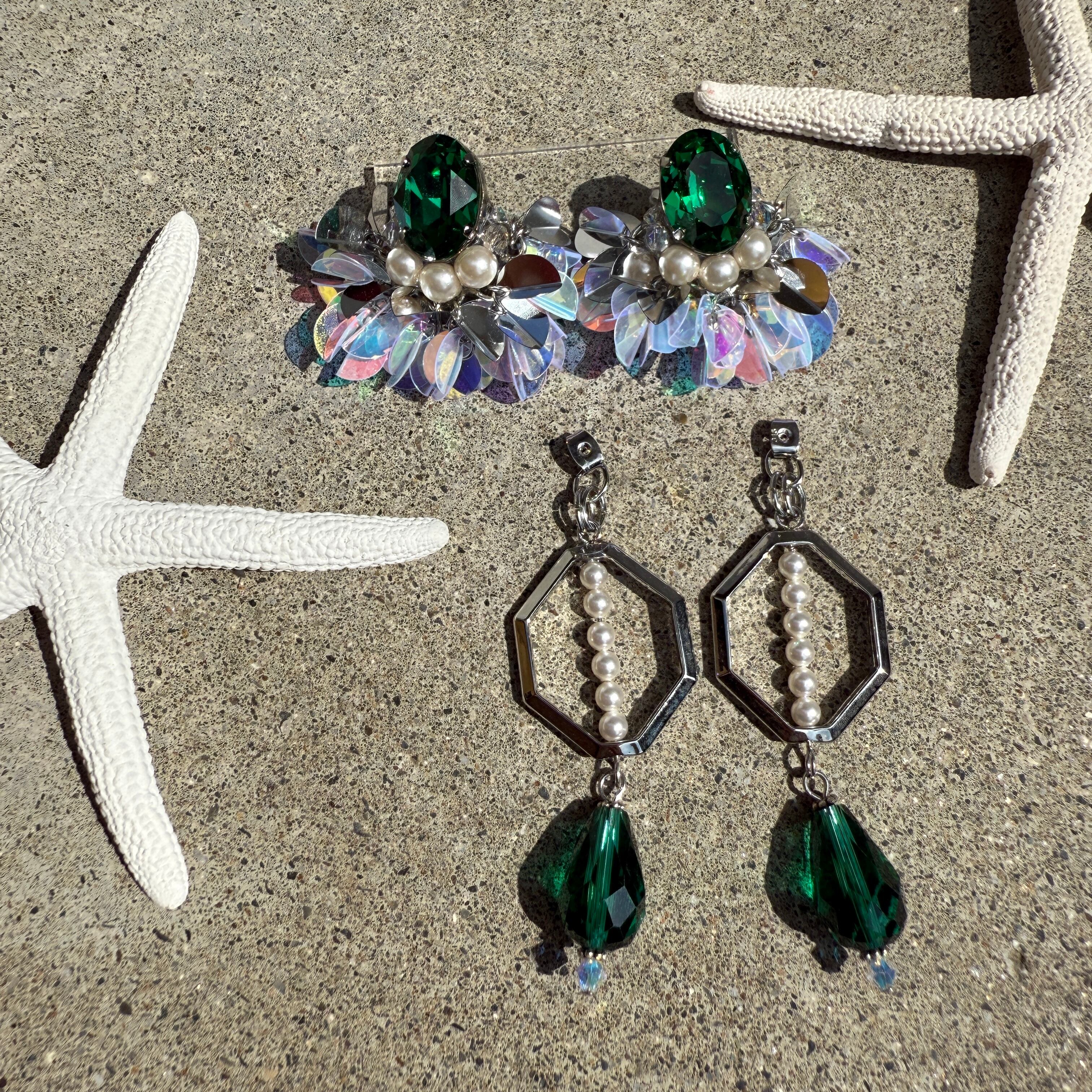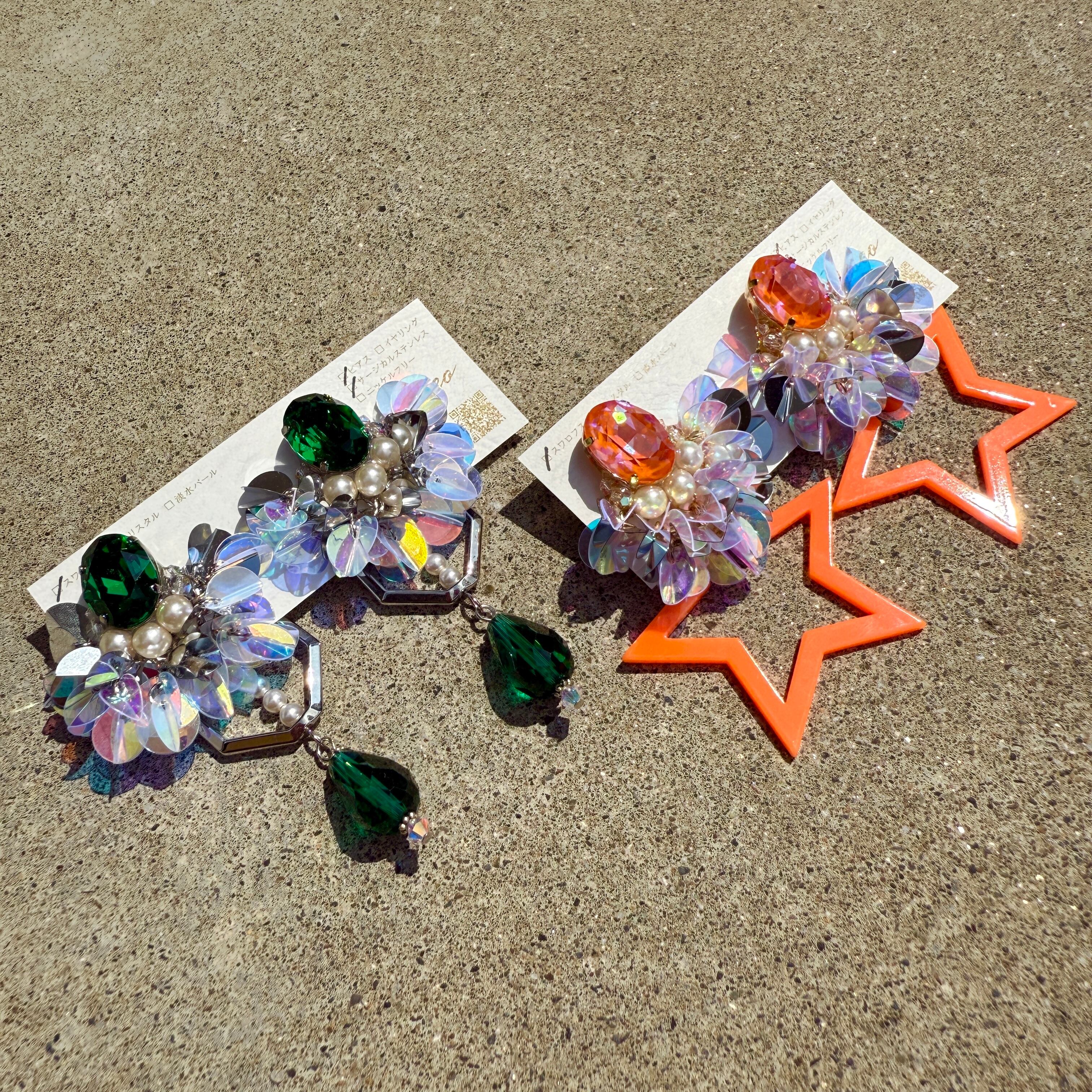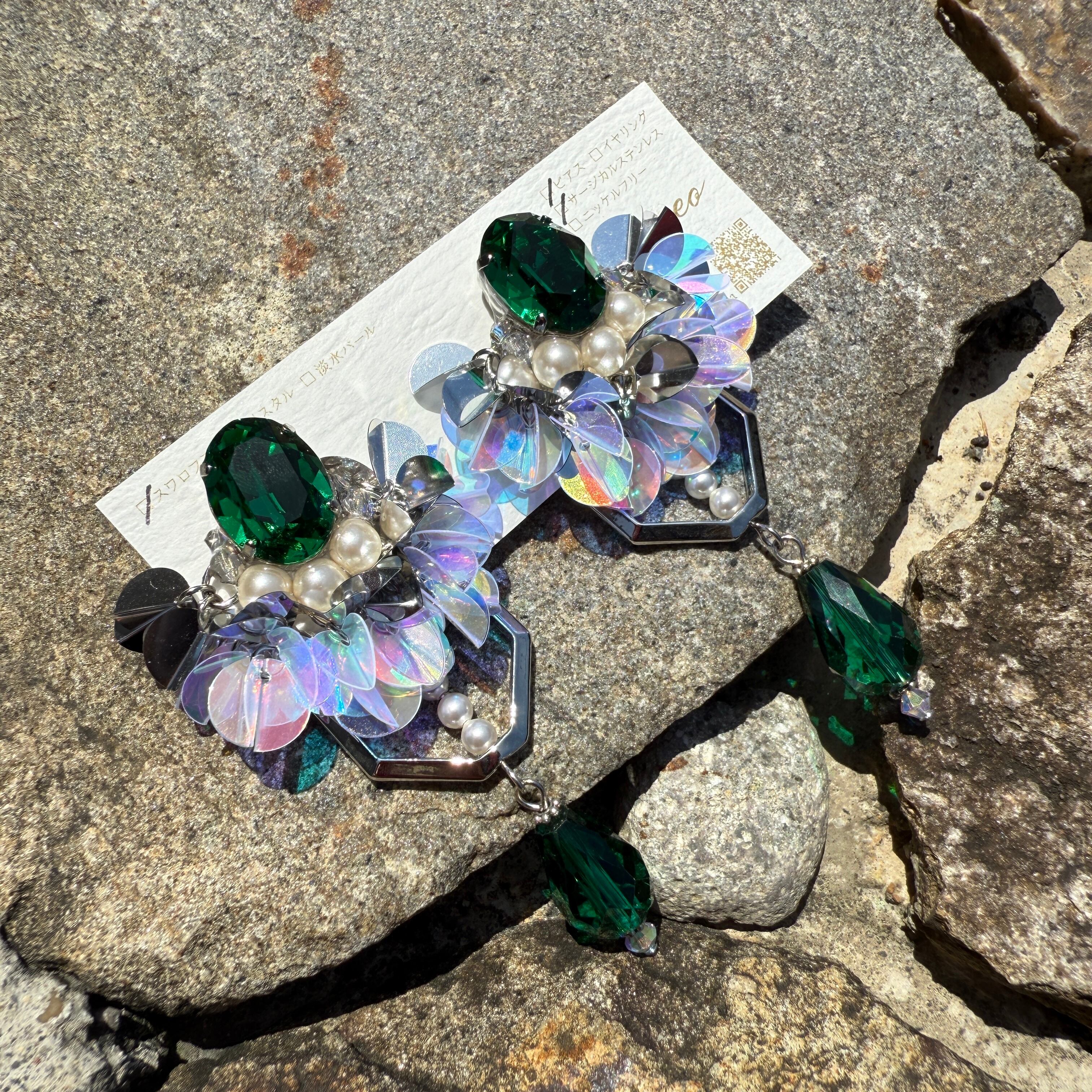 Green★スワロフスキー × スパンコール✨スワロフスキーピアス スワロフスキーイヤリング NO.849