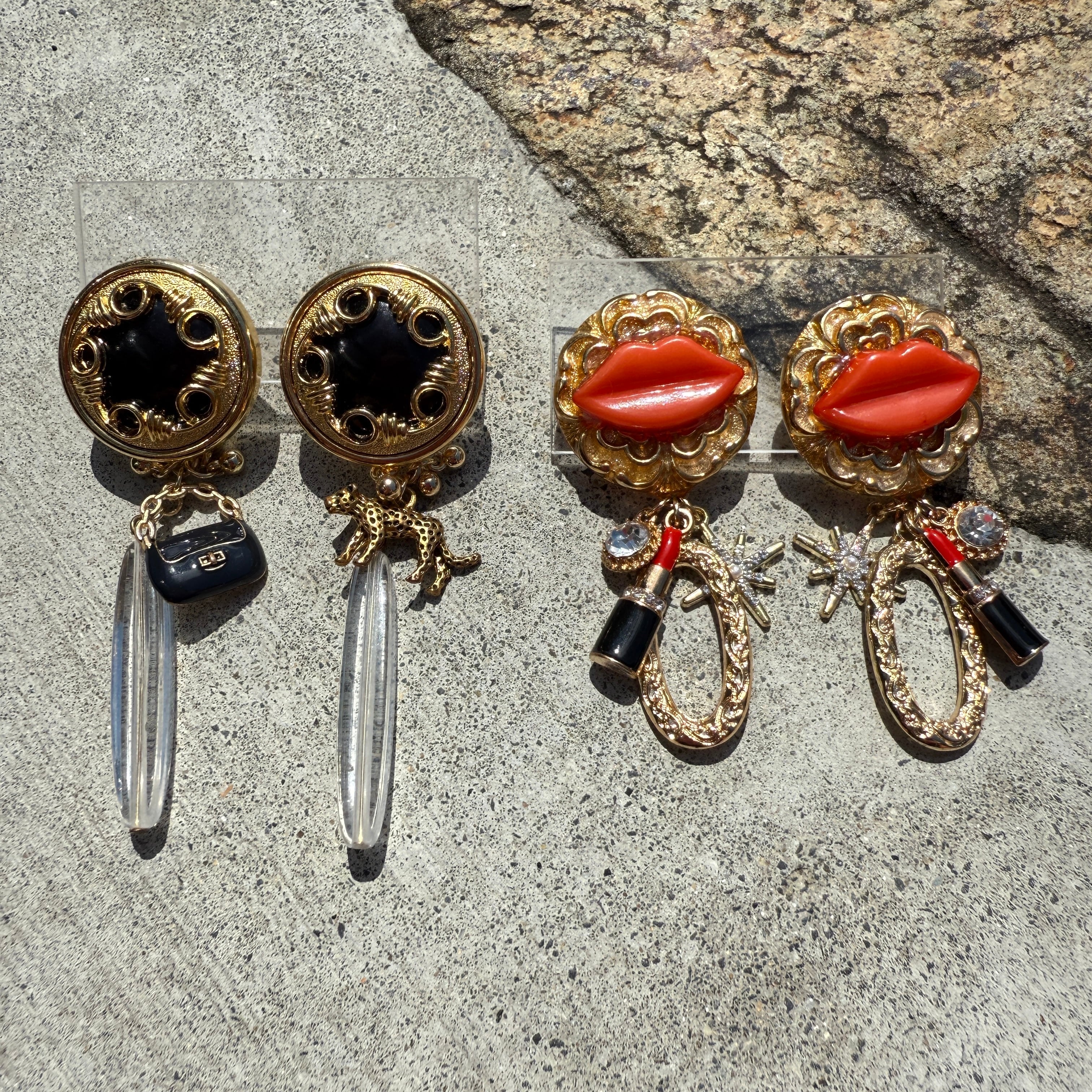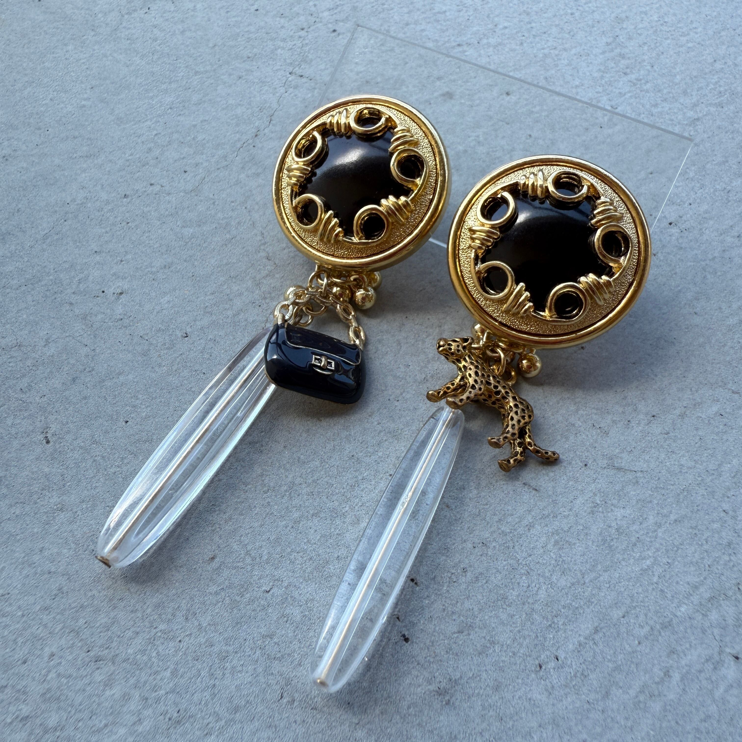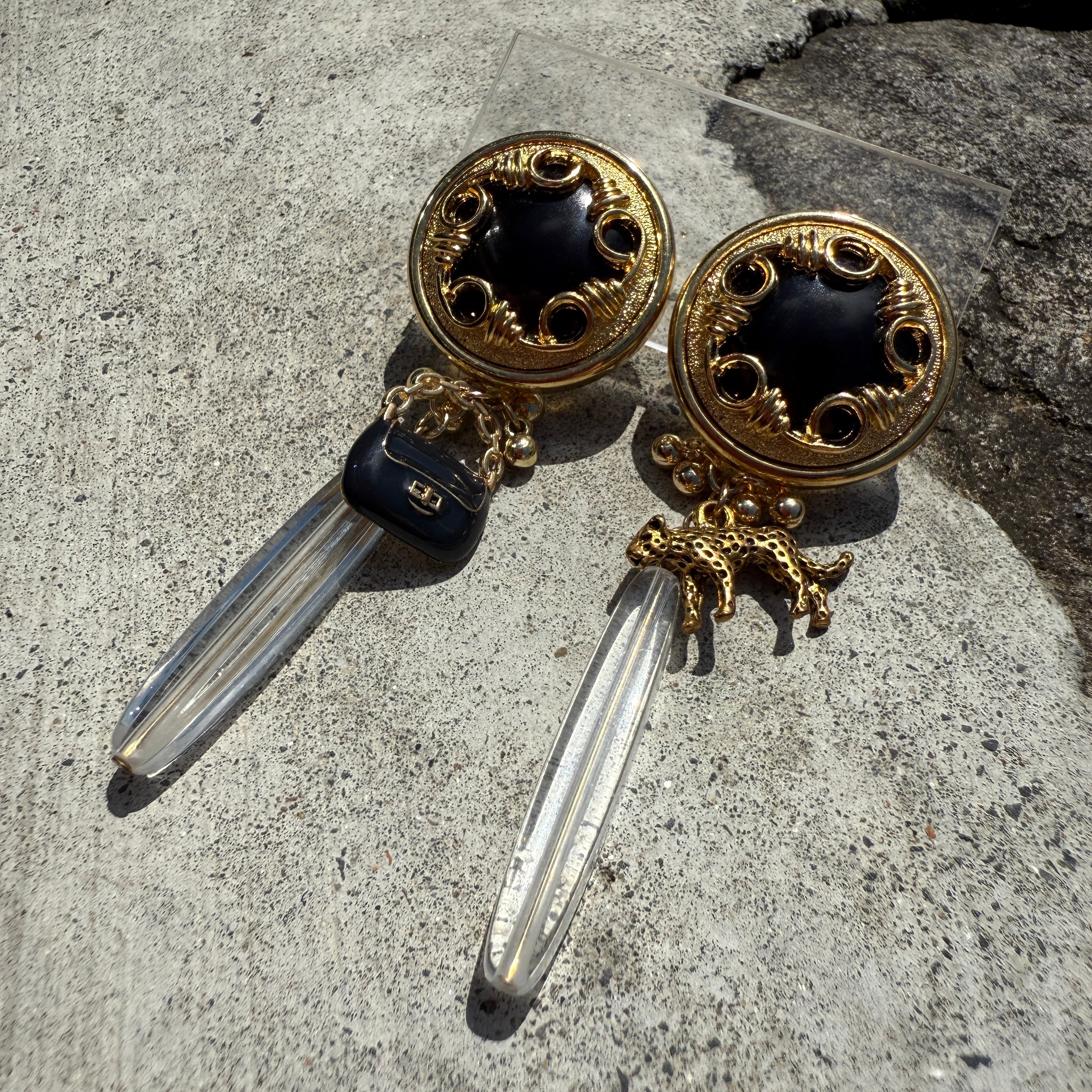 ボタンイヤリング★チーター×バッグ✨ NO.861
