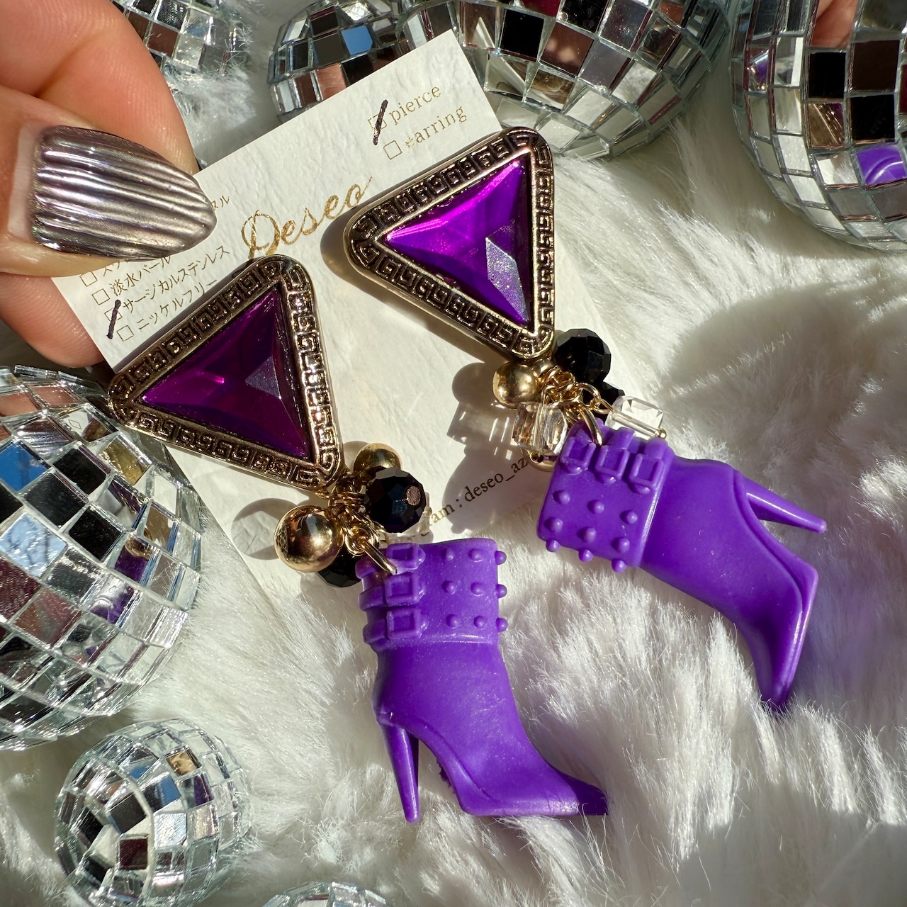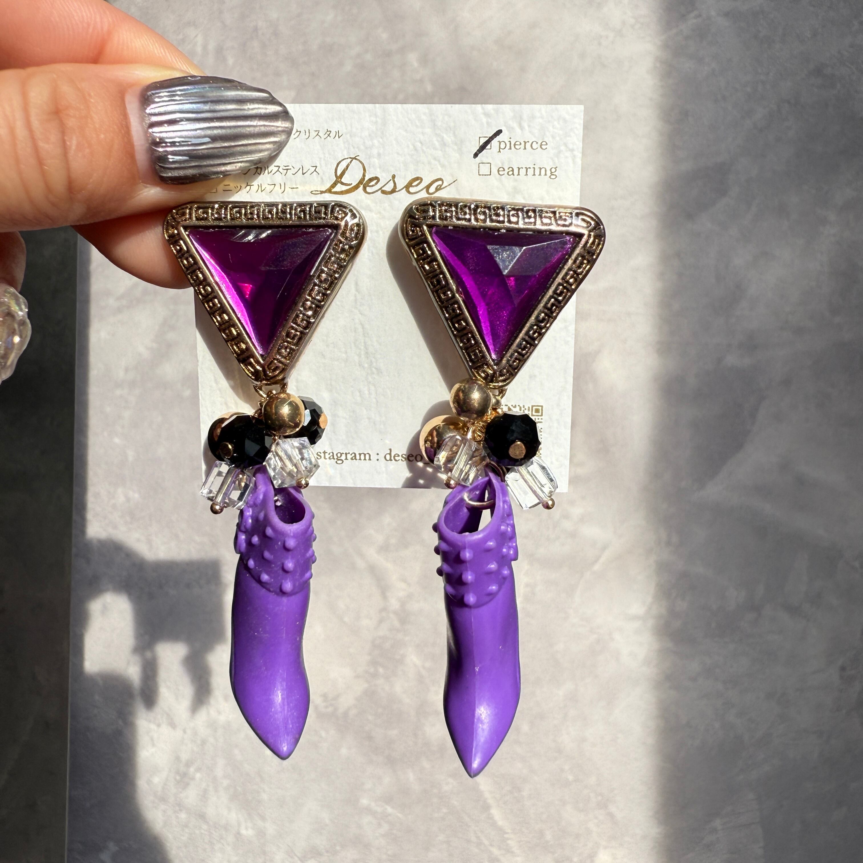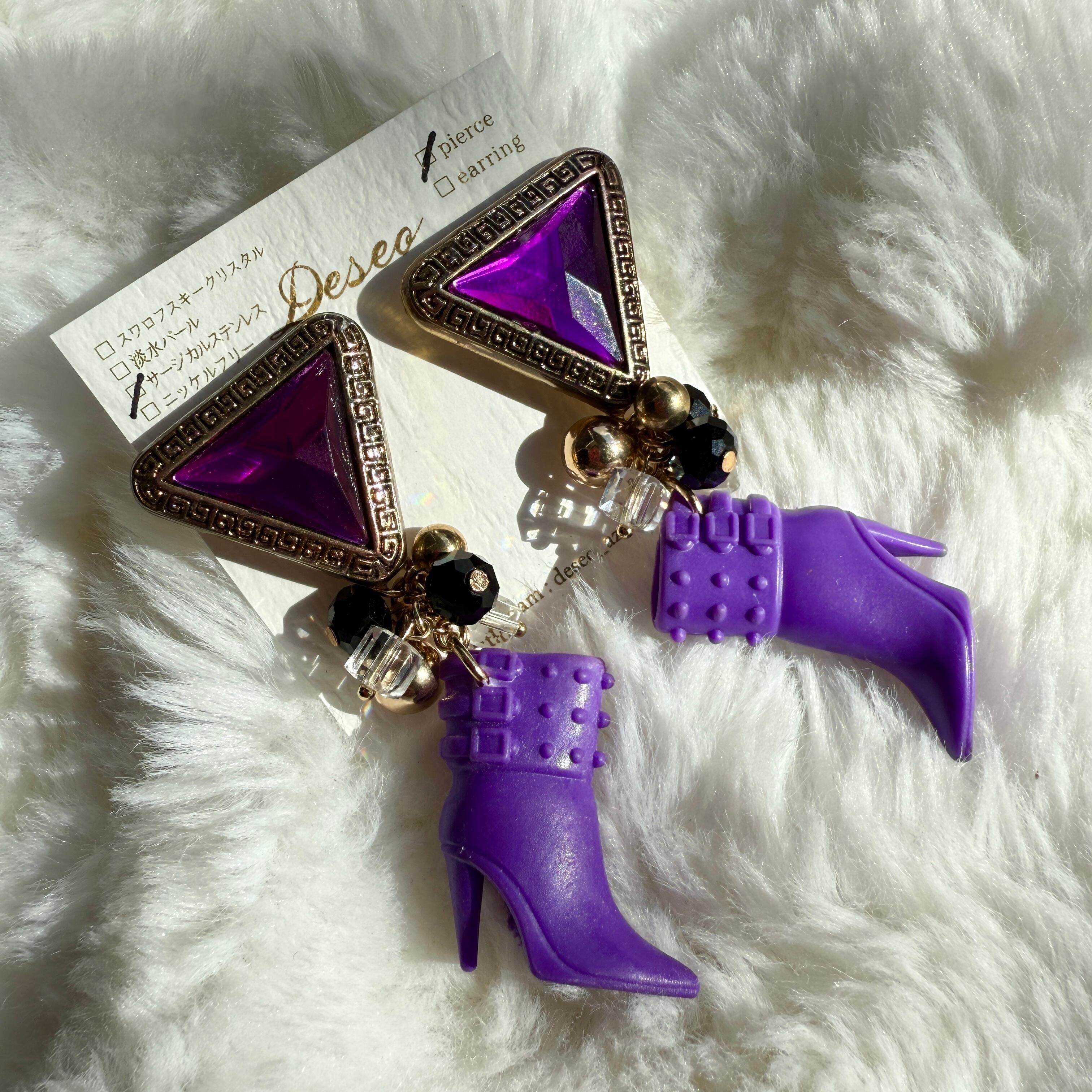 お人形ハイヒール❤️ハイヒールピアス パープルピアス★NO.902