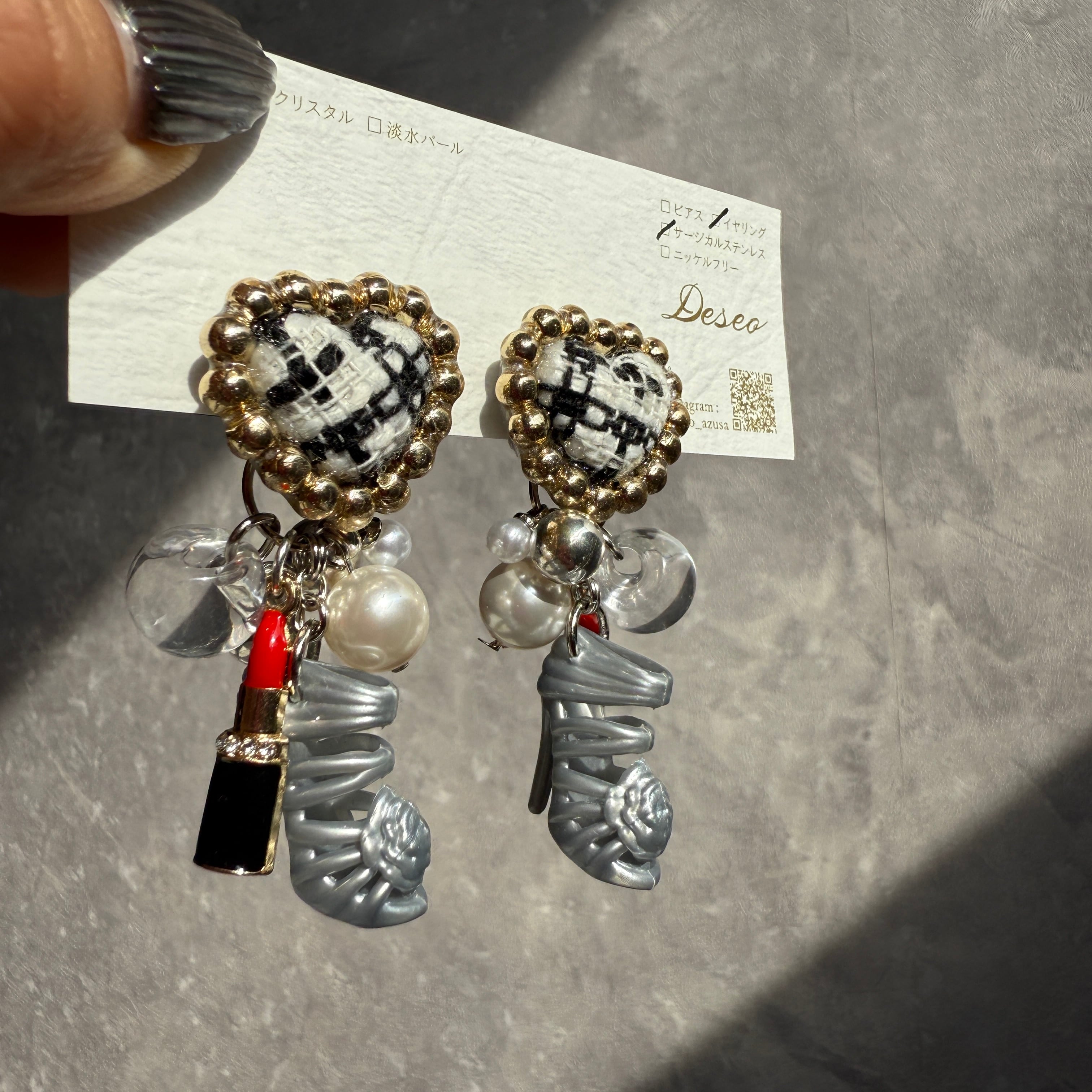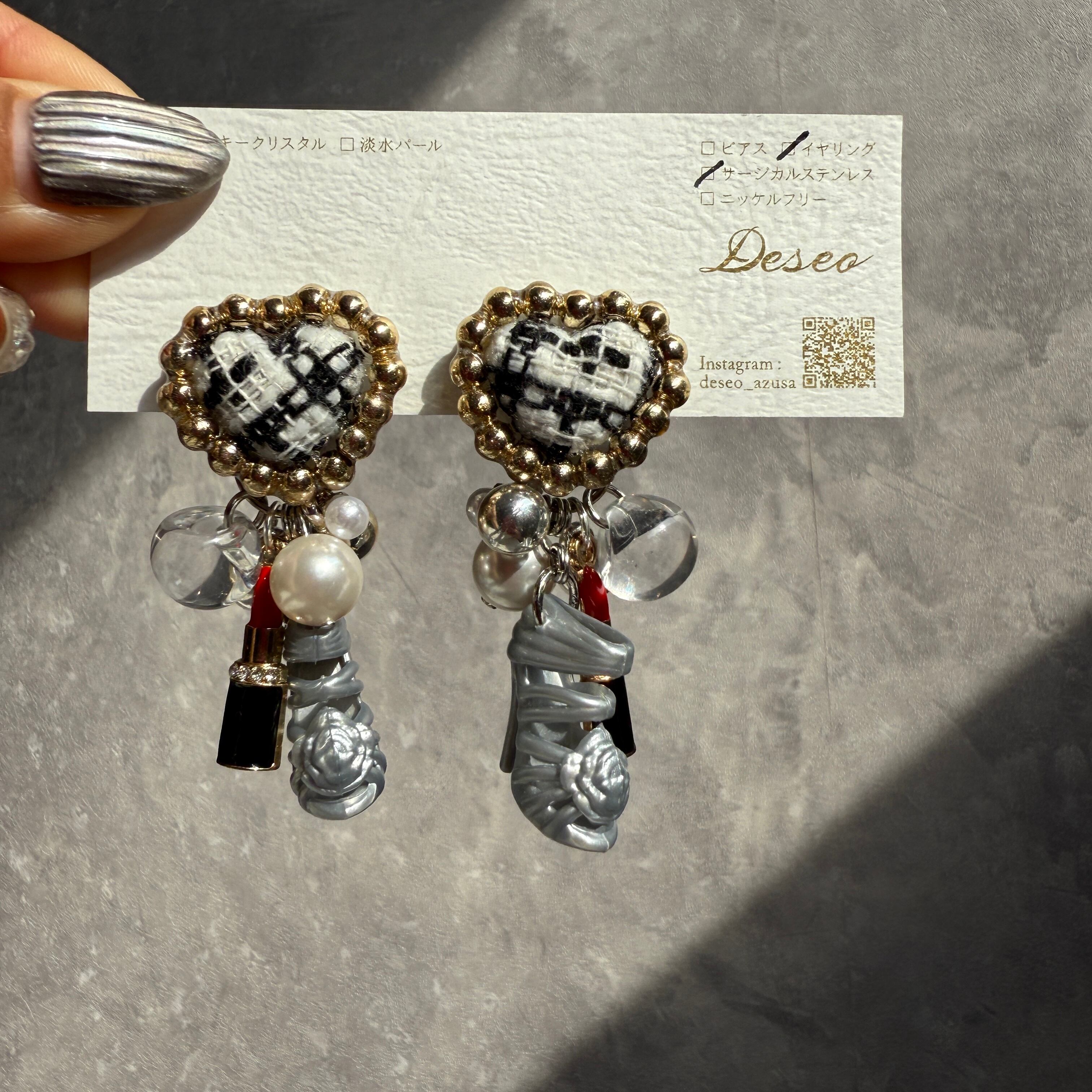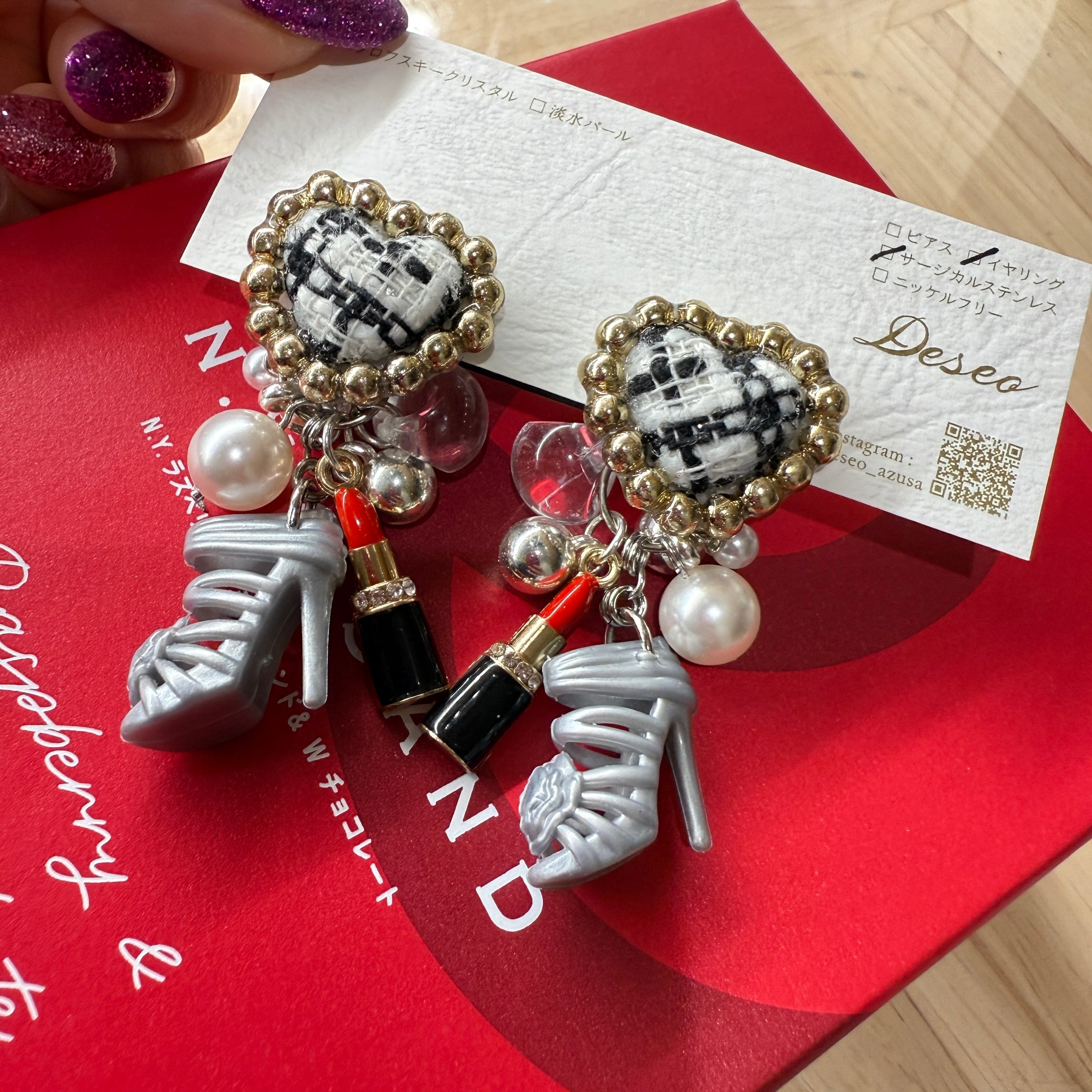 お人形ハイヒール❤️ツイードハート♡ハイヒールイヤリング✨NO.904