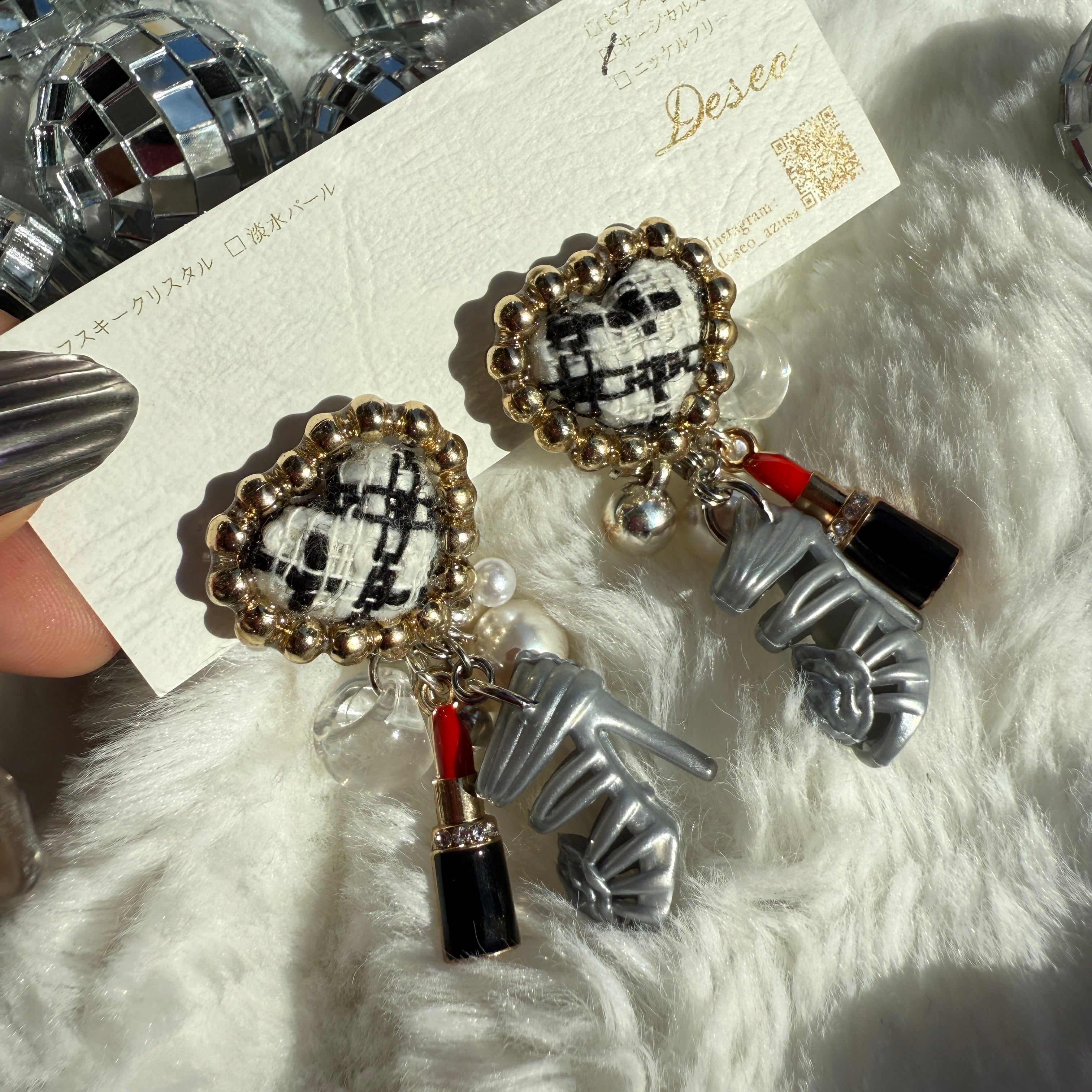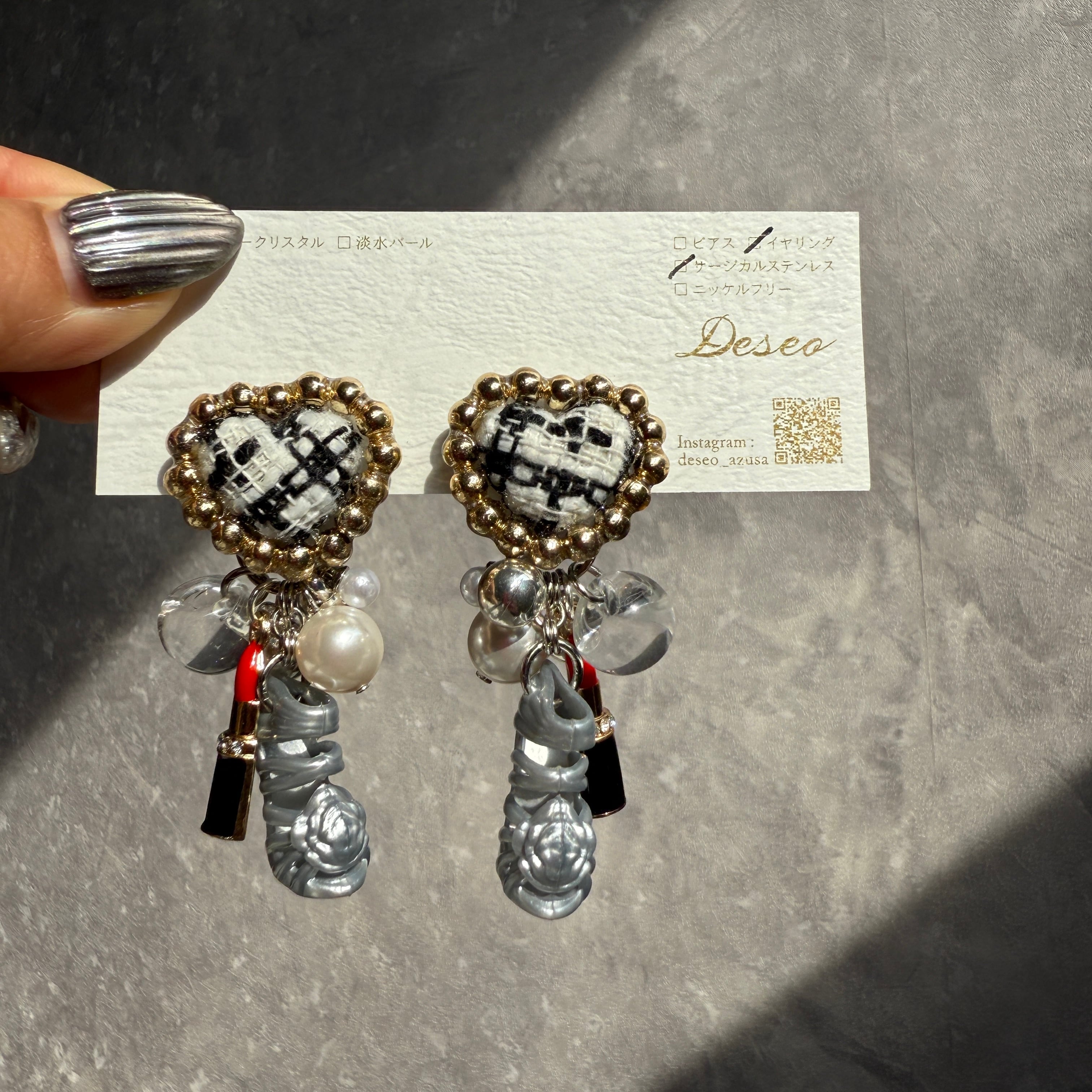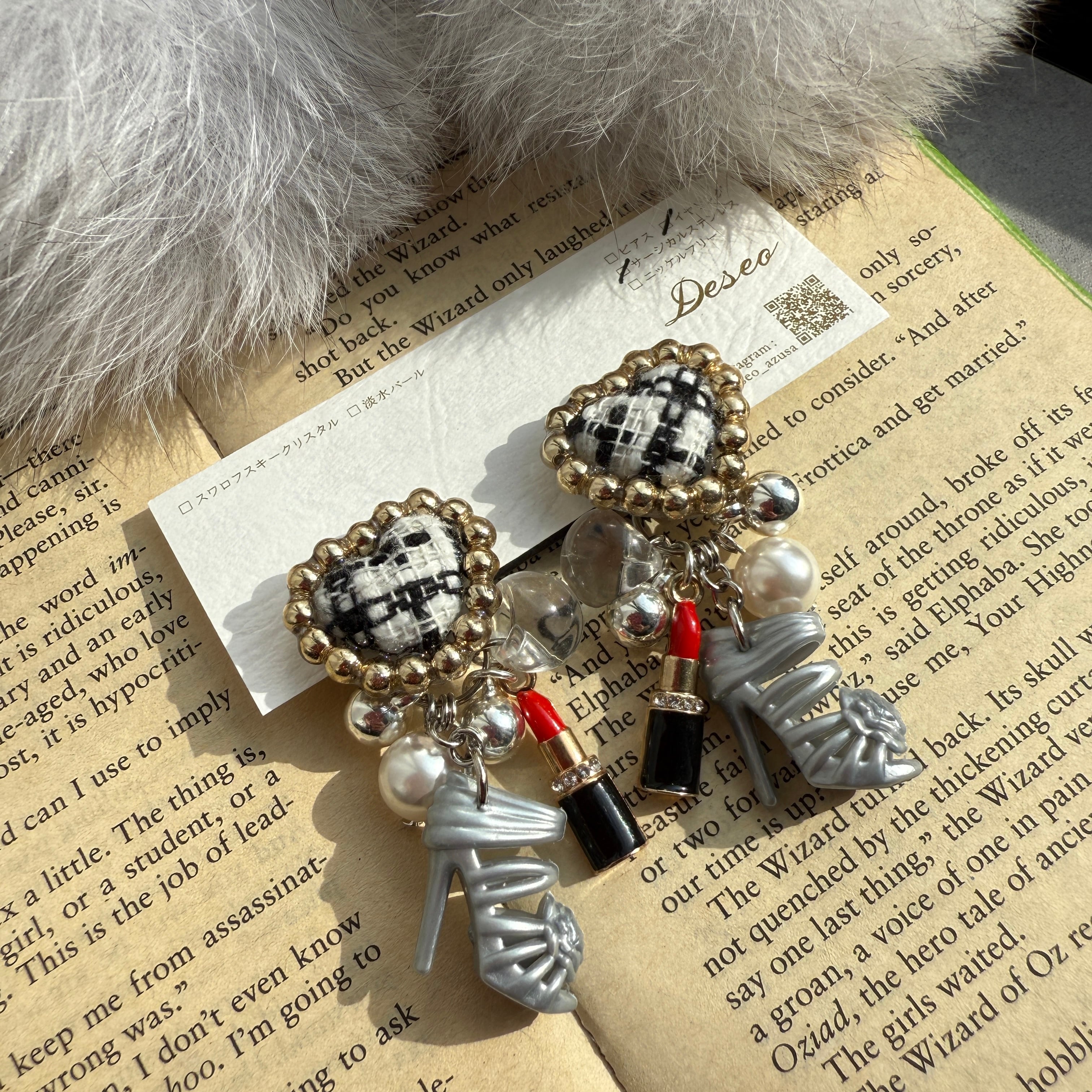 お人形ハイヒール❤️ツイードハート♡ハイヒールイヤリング✨NO.904