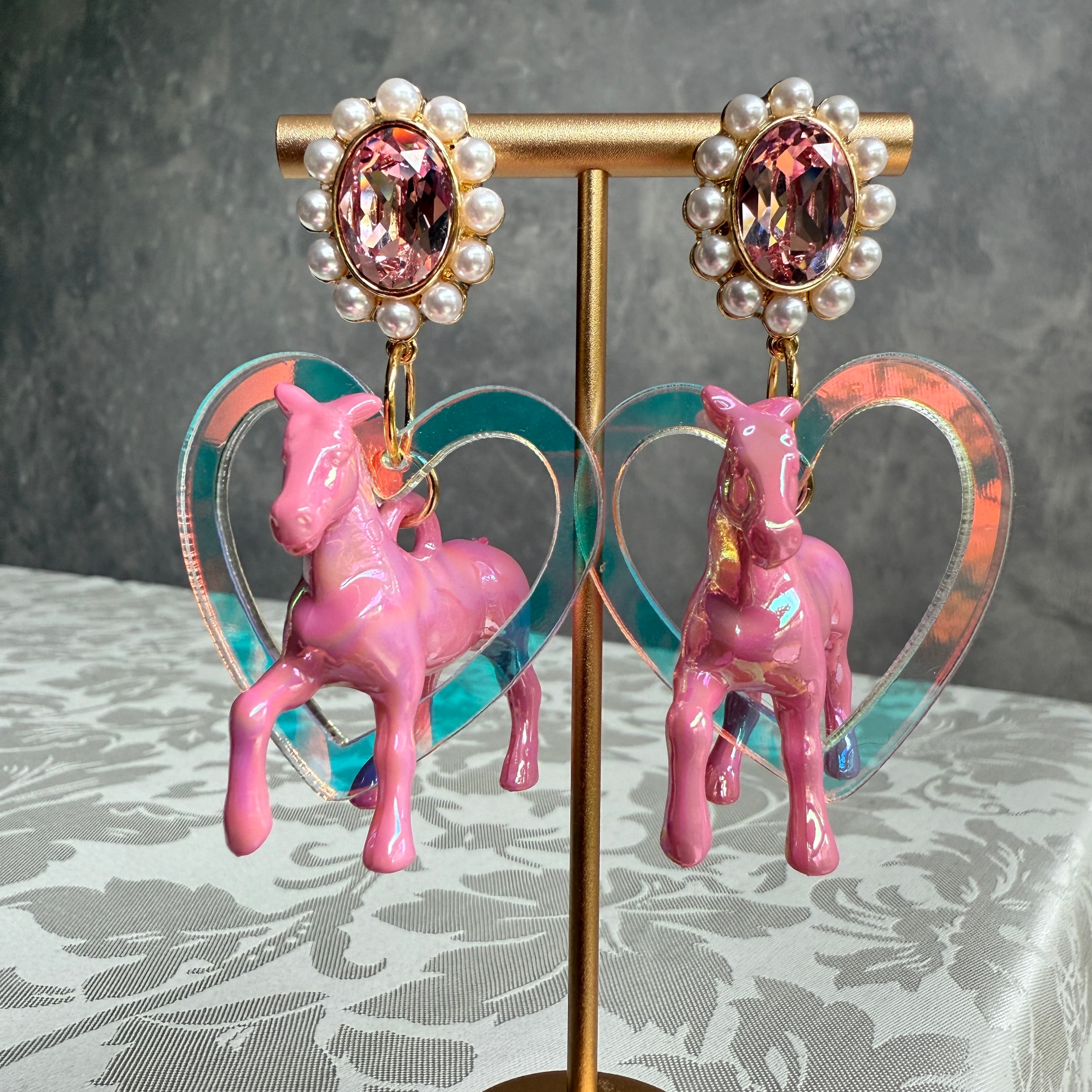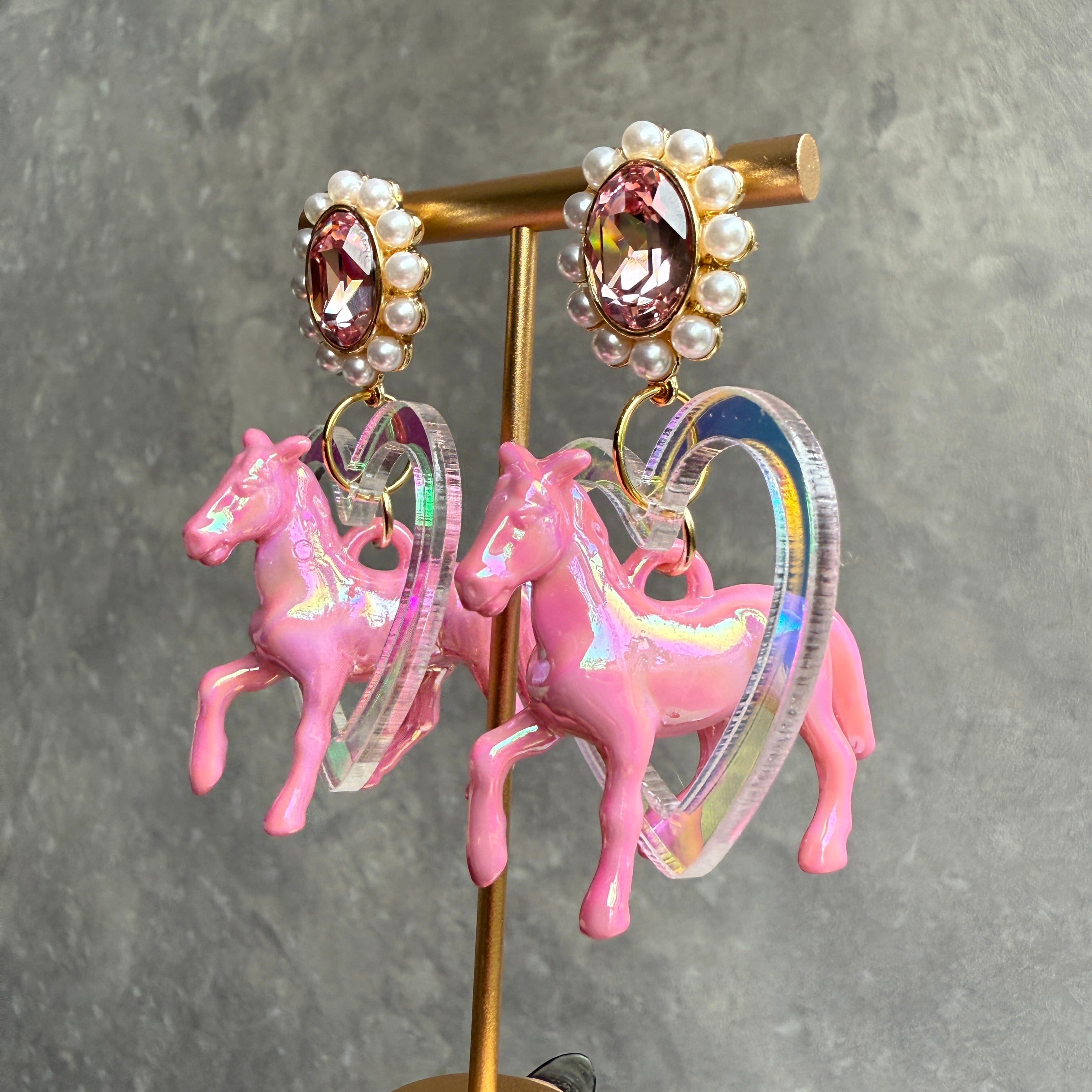 空駆ける白馬✨Pink✨馬ピアス 馬イヤリング NO.915