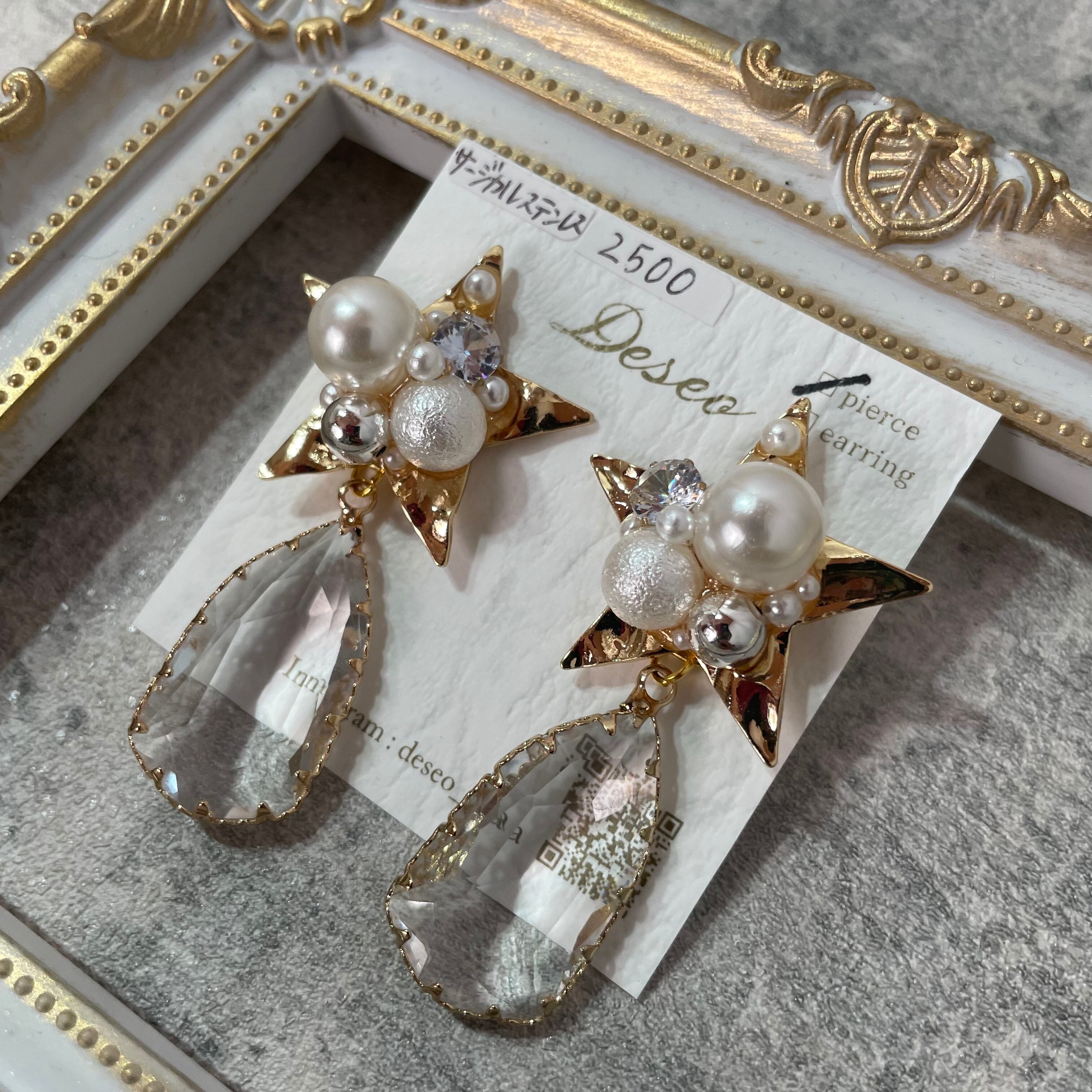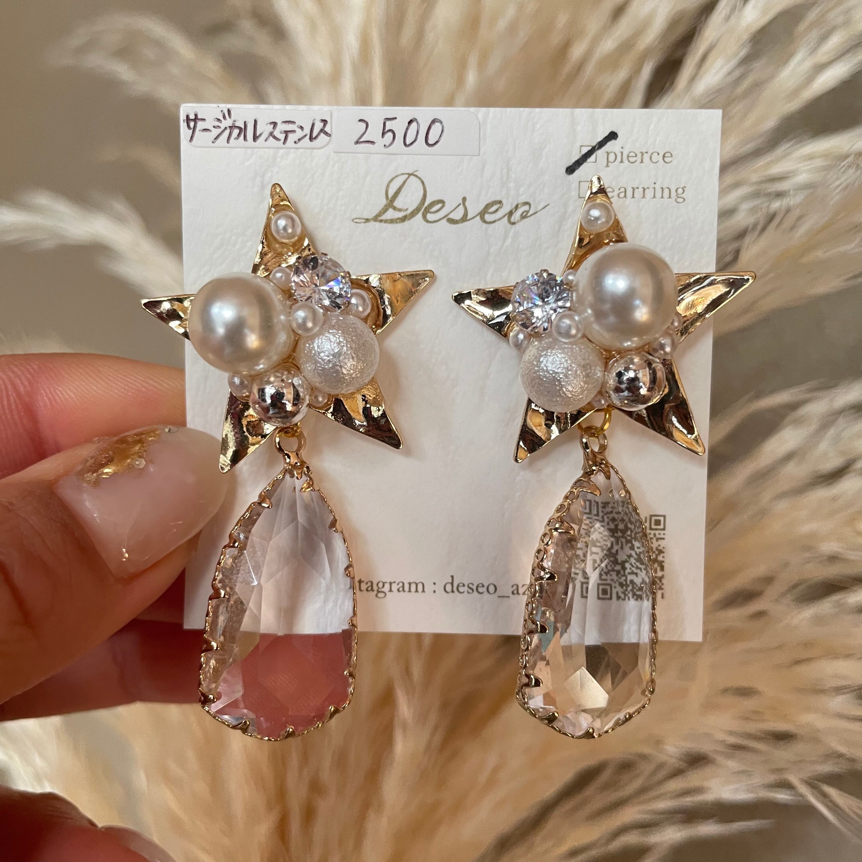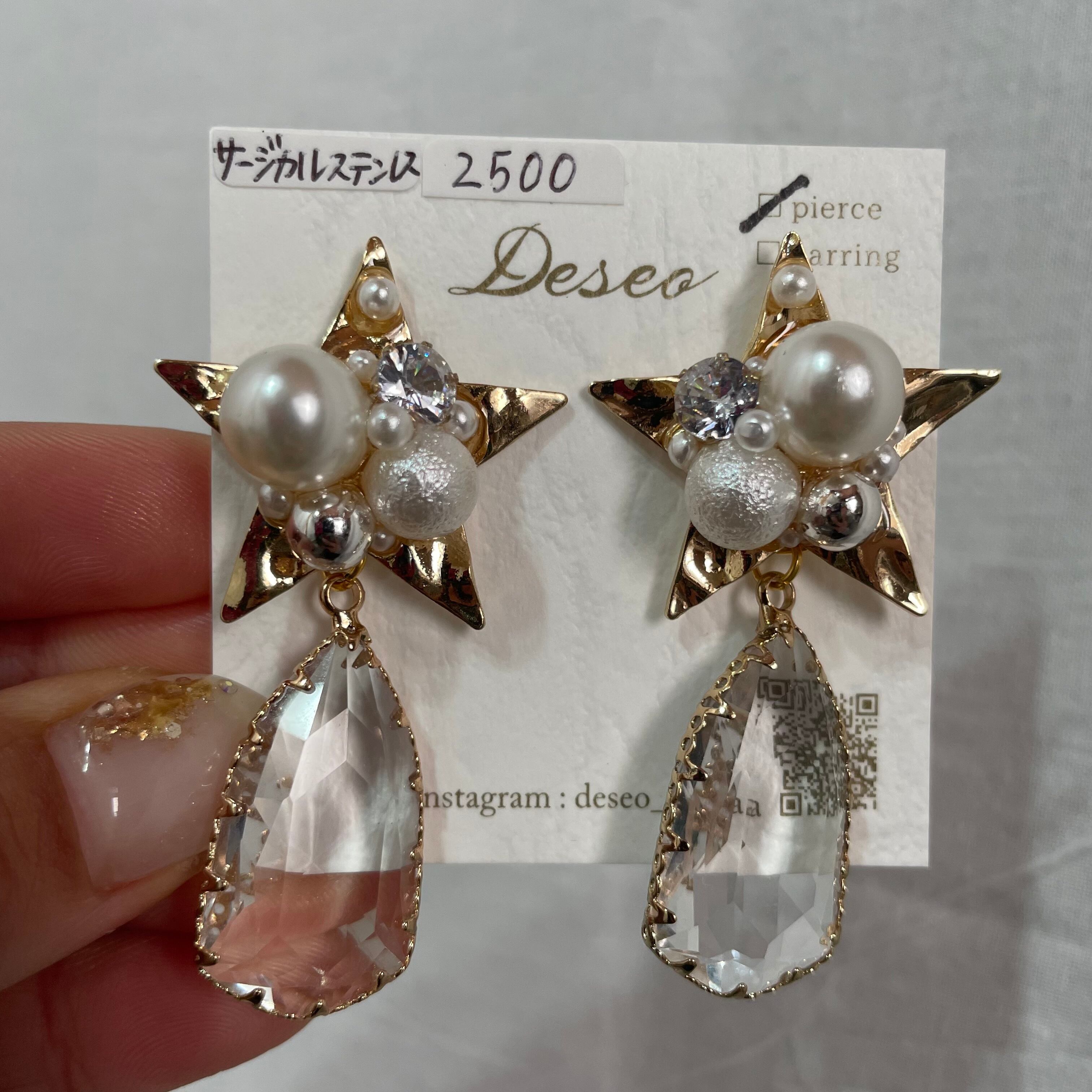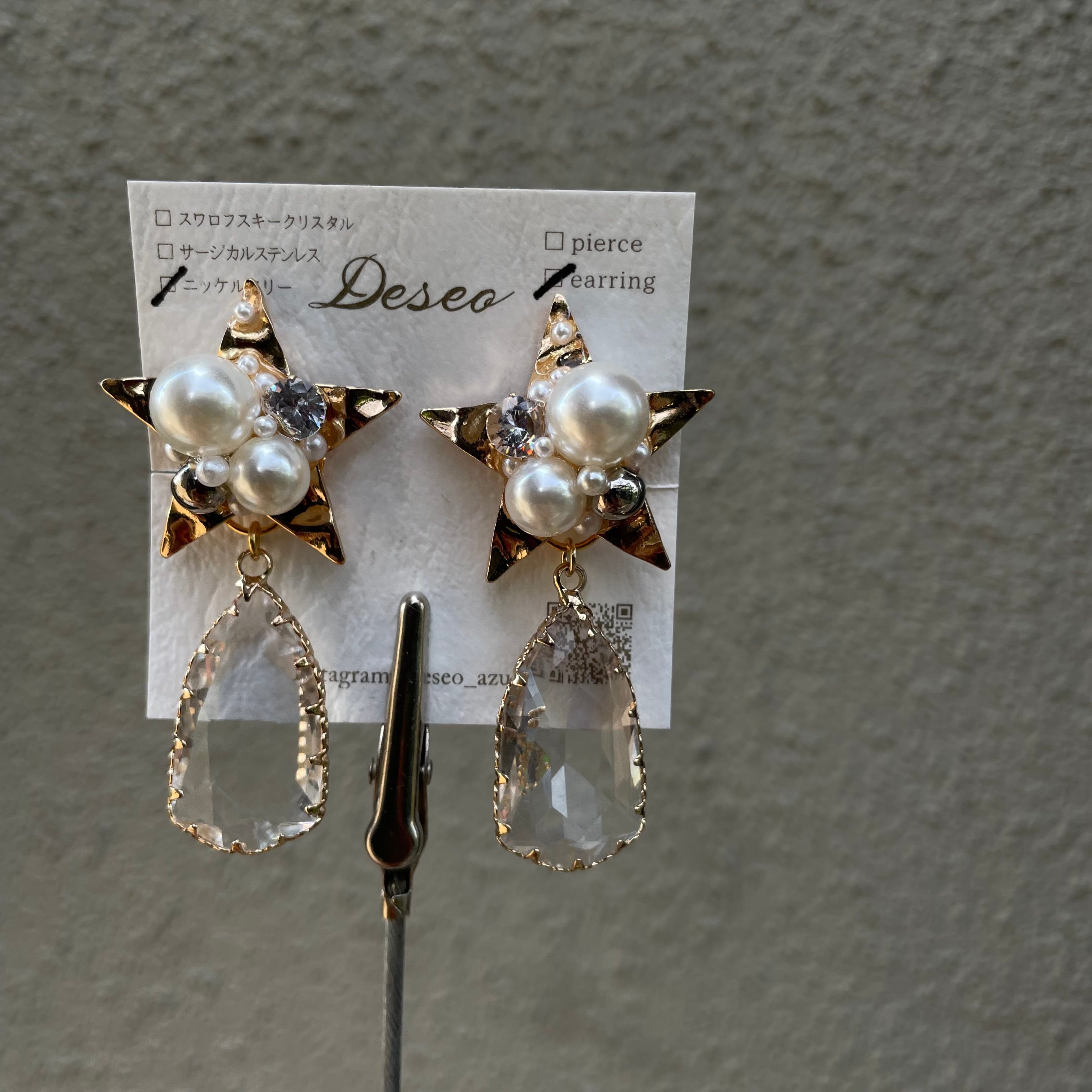 クリアドロップ✨スタービジューピアス♡スタービジューイヤリング♡星ピアス☆星イヤリング☆NO.51