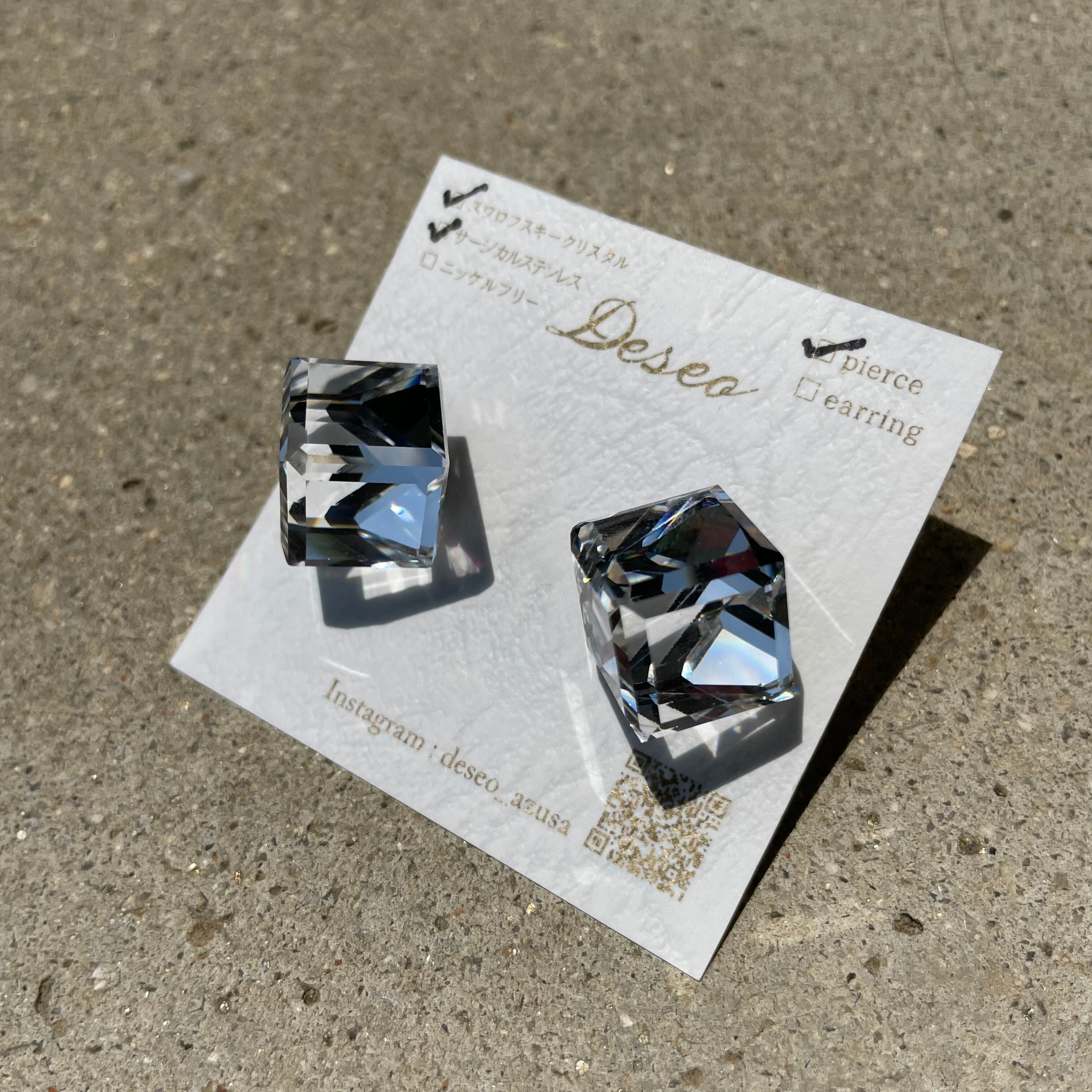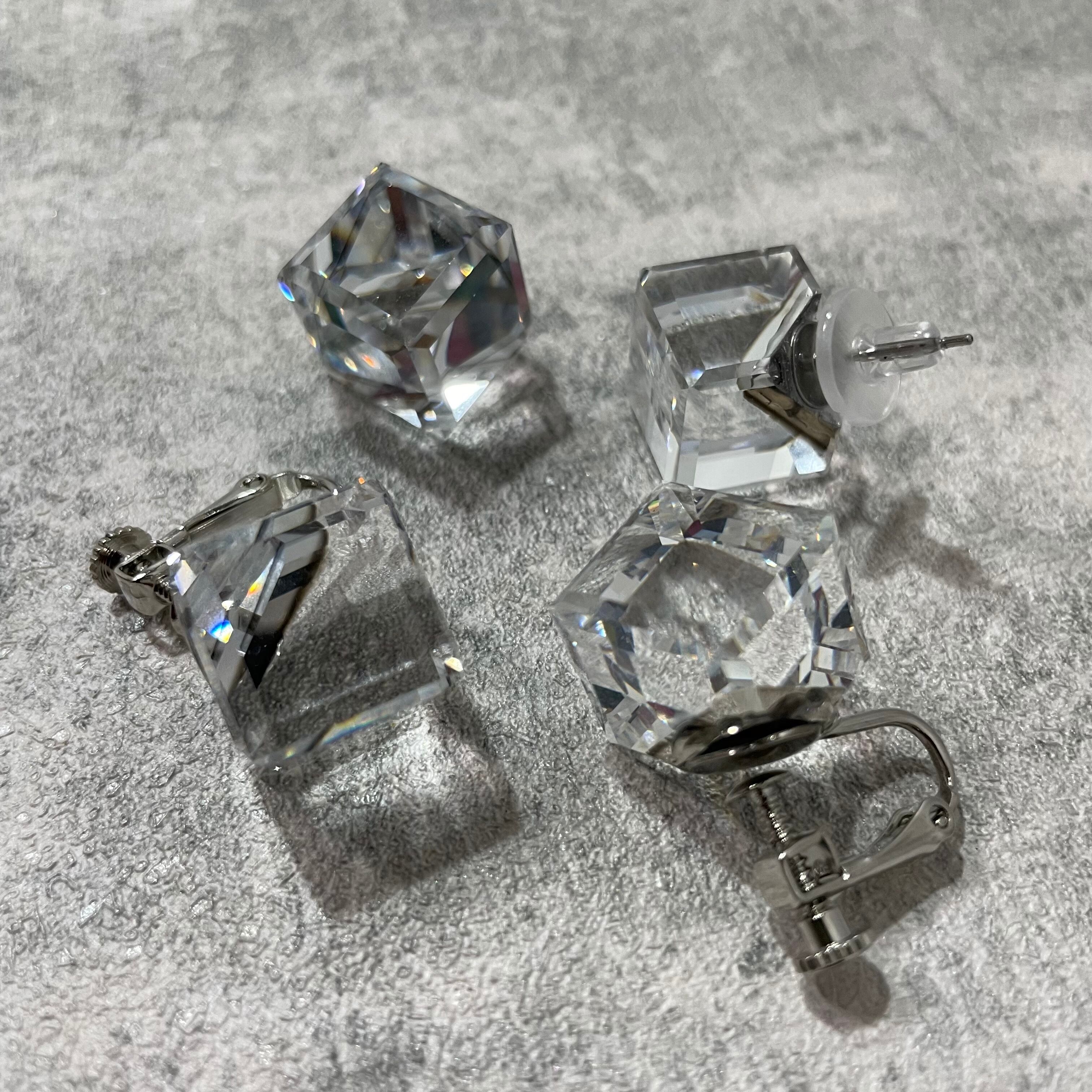 ヴィンテージスワロフスキー大粒キューブ✨輝く大粒❤️キューブピアス.キューブイヤリング♡スワロフスキーピアス.スワロフスキーイヤリング✨NO.54
