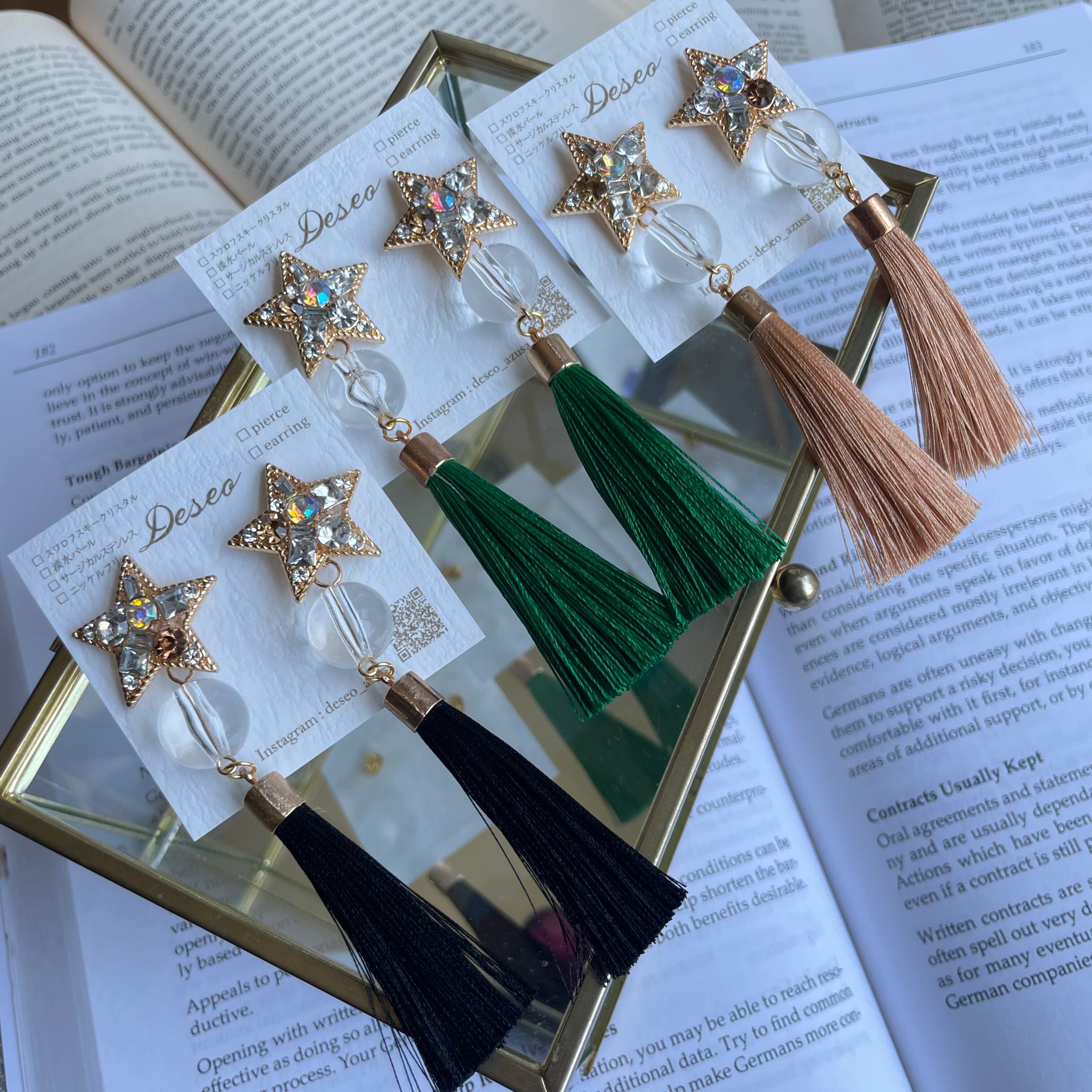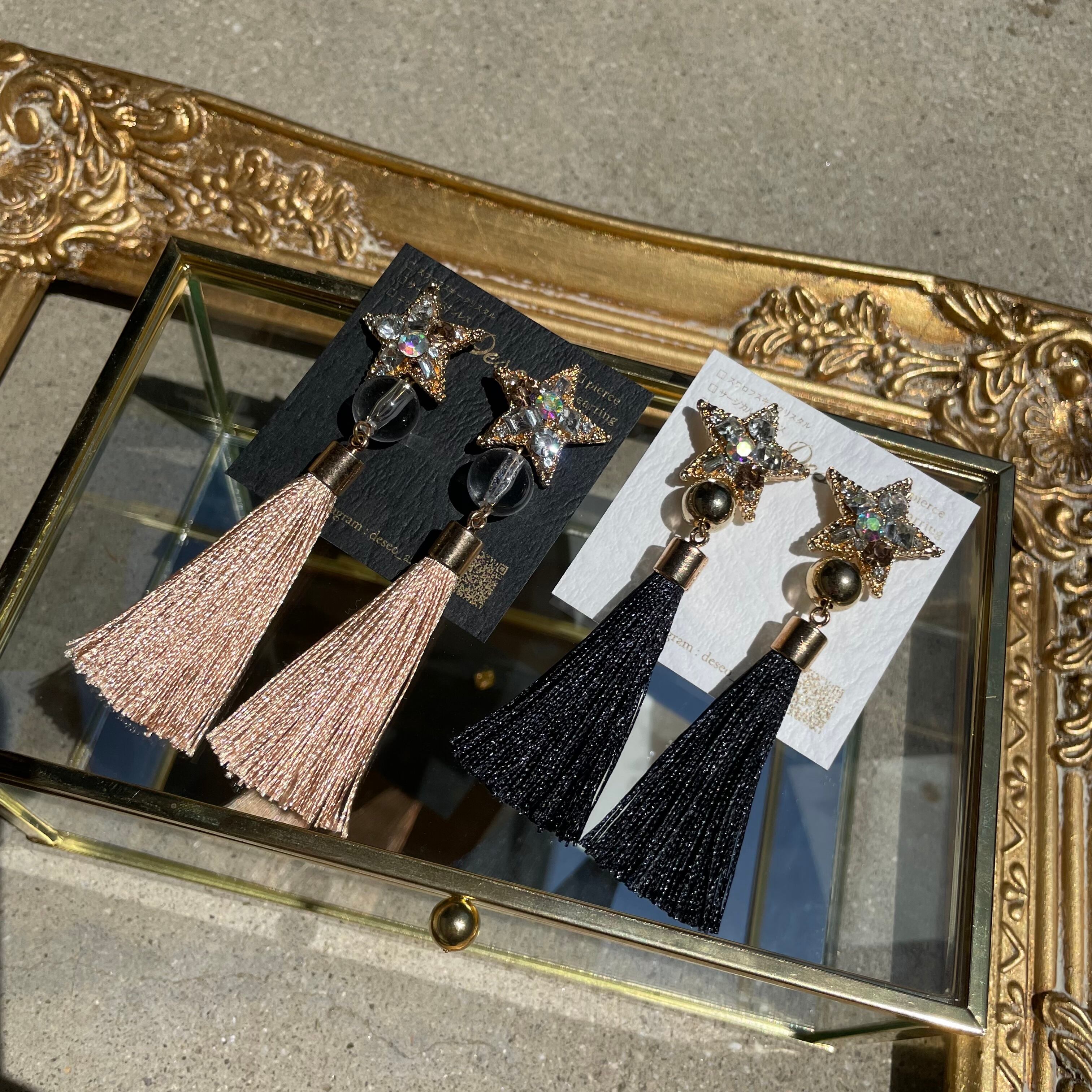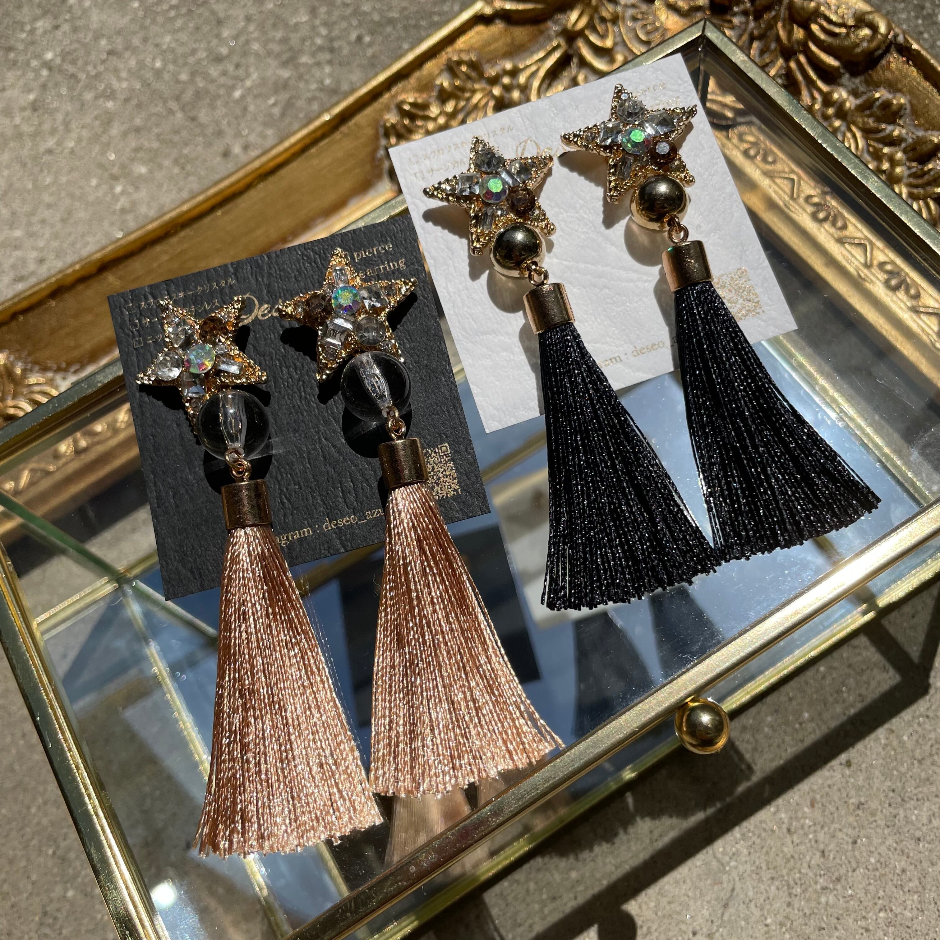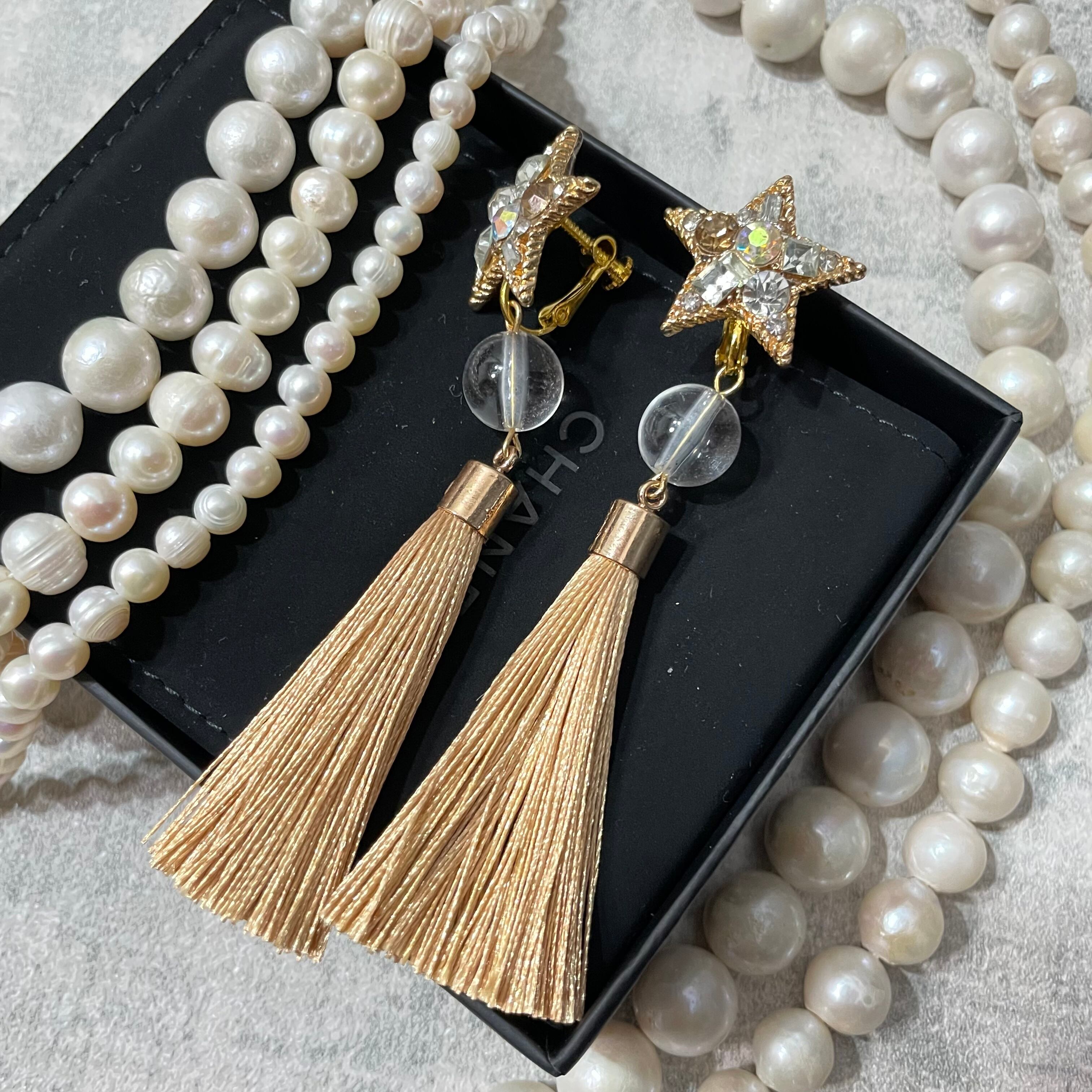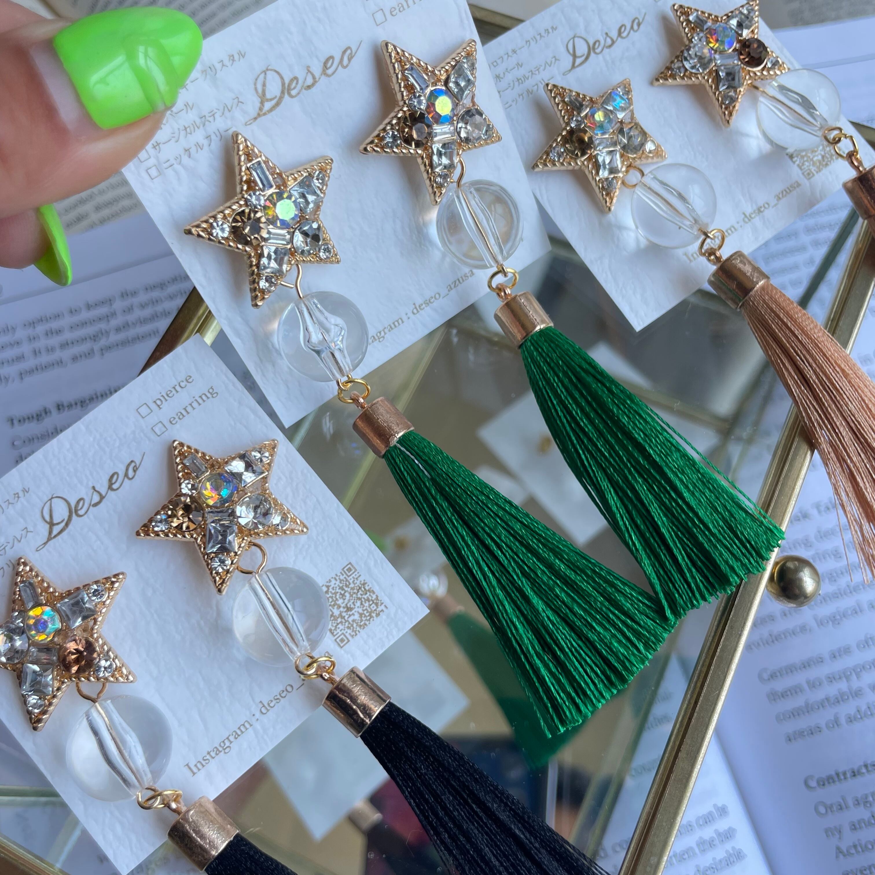 GOLDタッセル×スタービジュー✨タッセルピアス♡タッセルイヤリング♡星ピアス♡星イヤリング♡NO.66