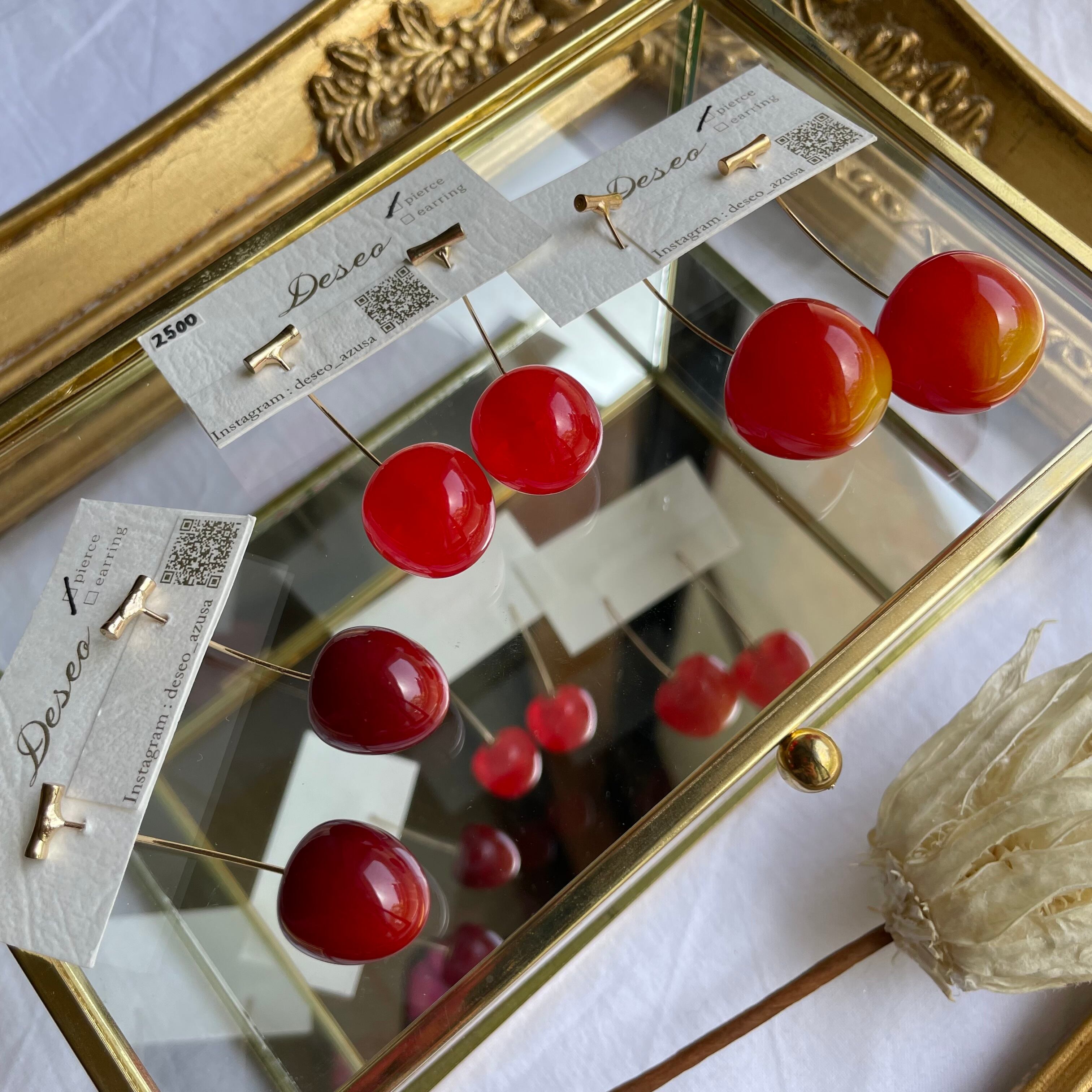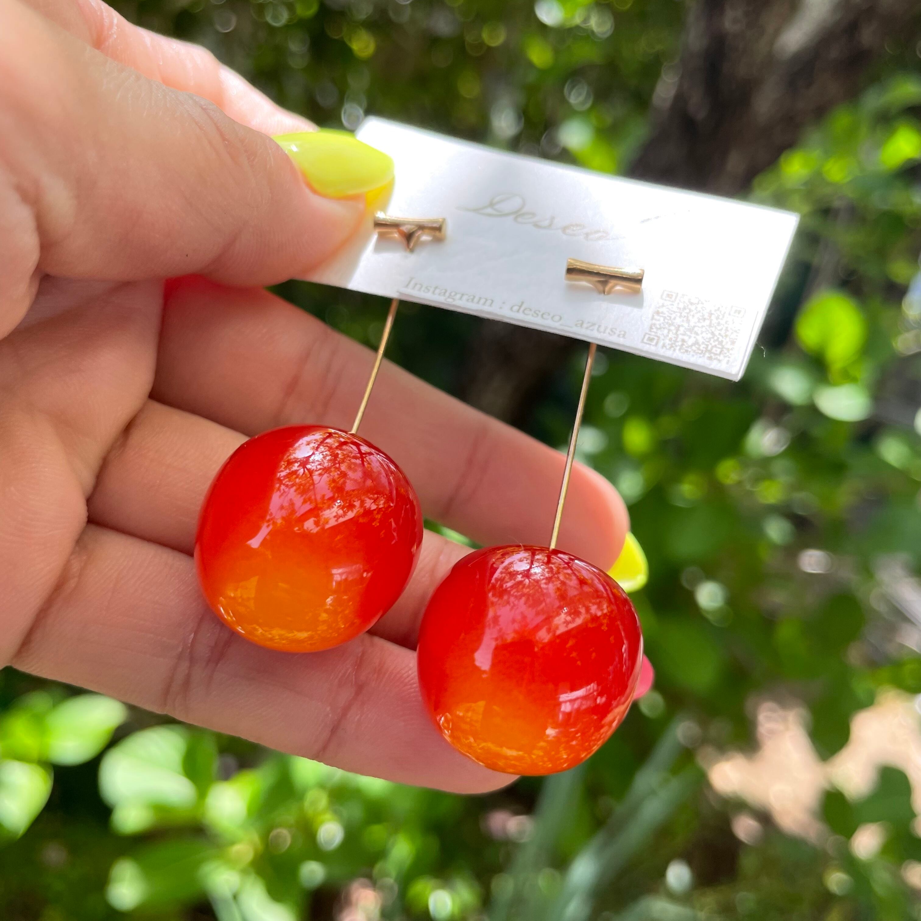 佐藤錦 チェリーピアス❤️通常サイズチェリー✨さくらんぼピアス♡NO.94