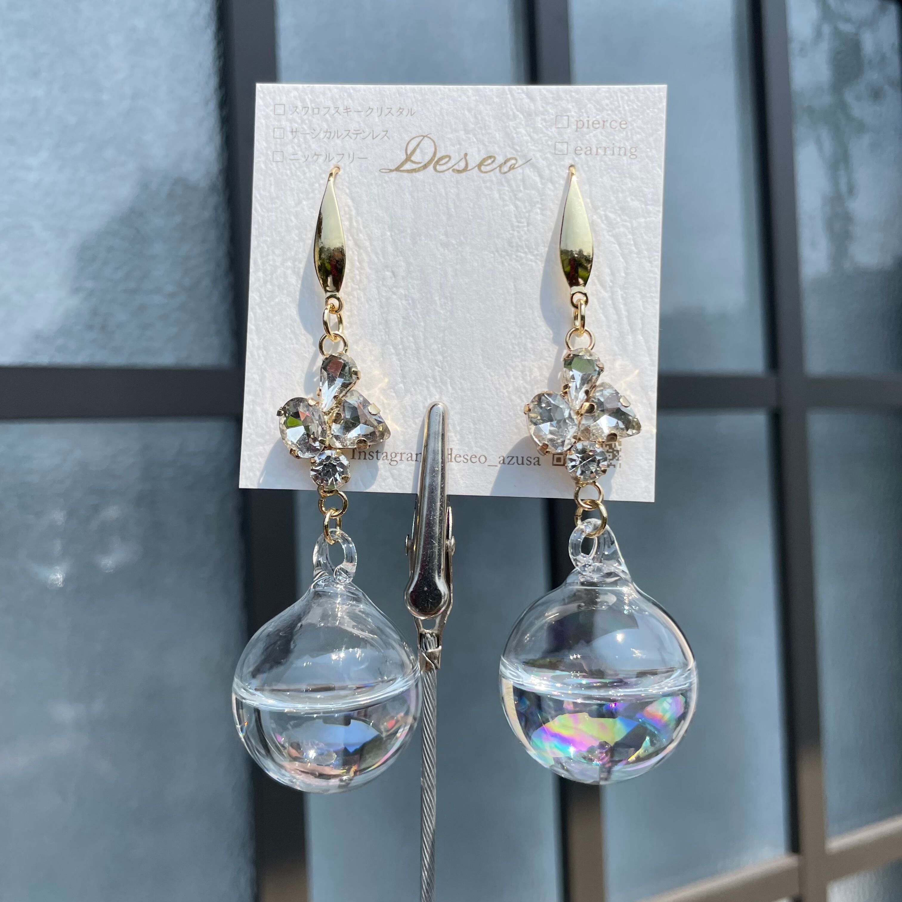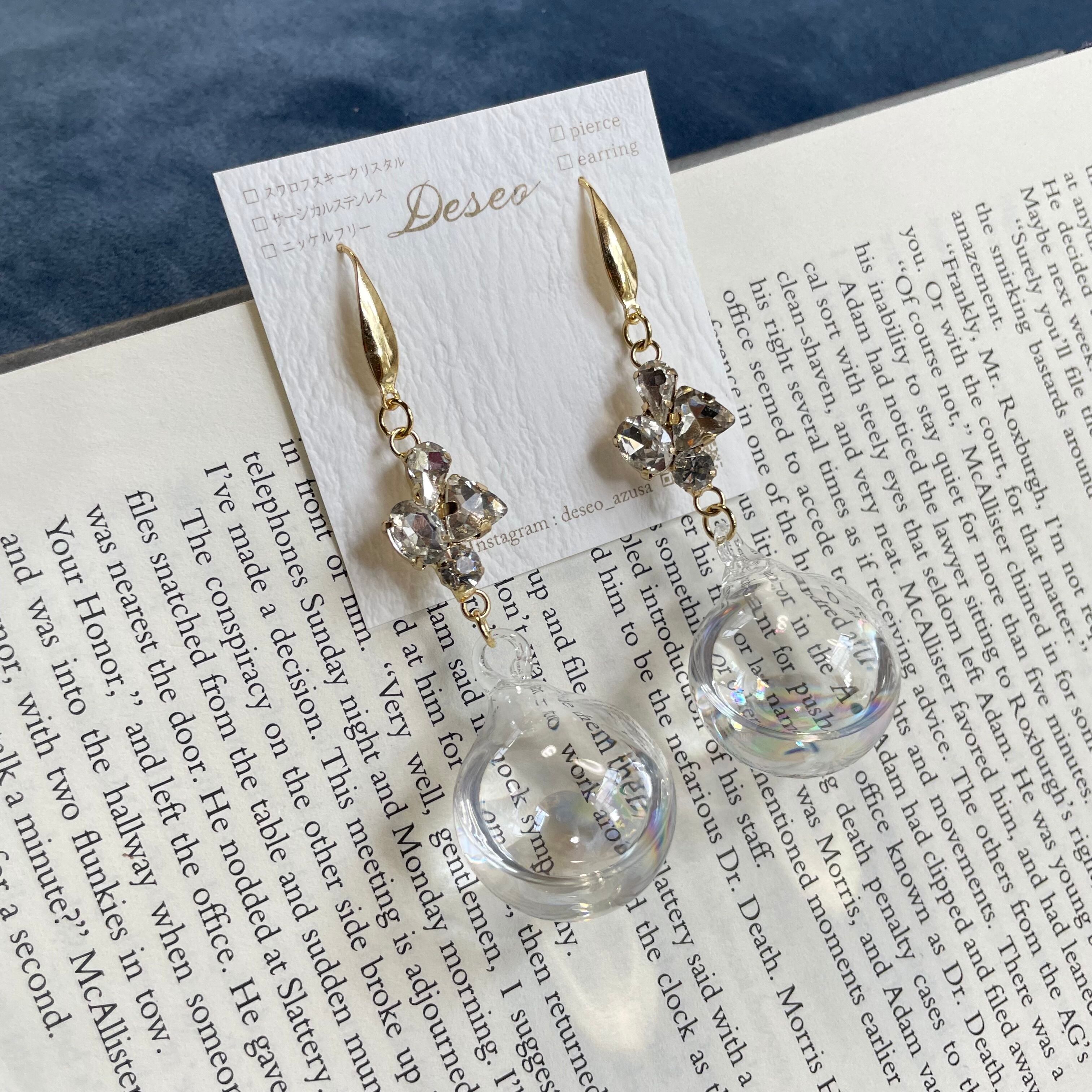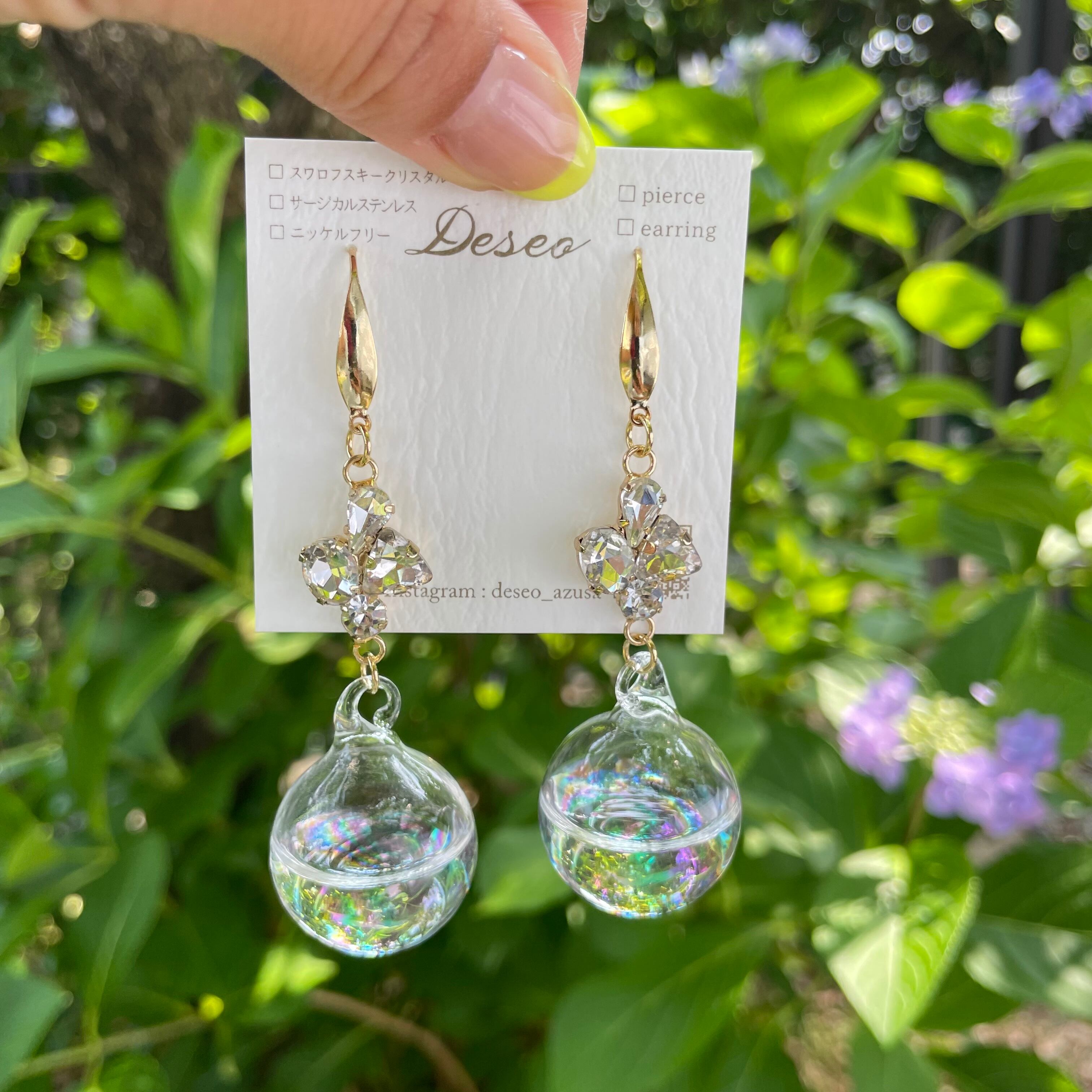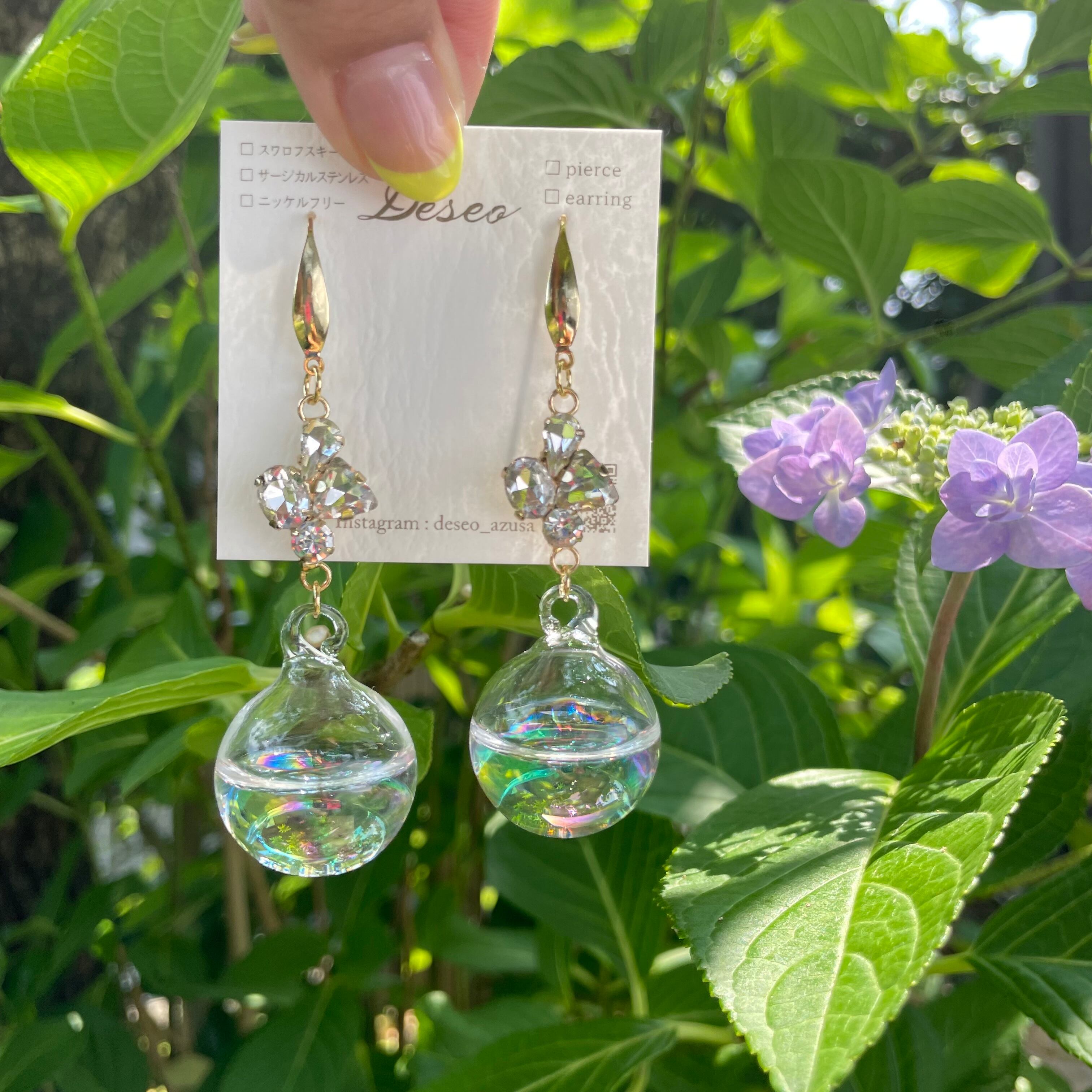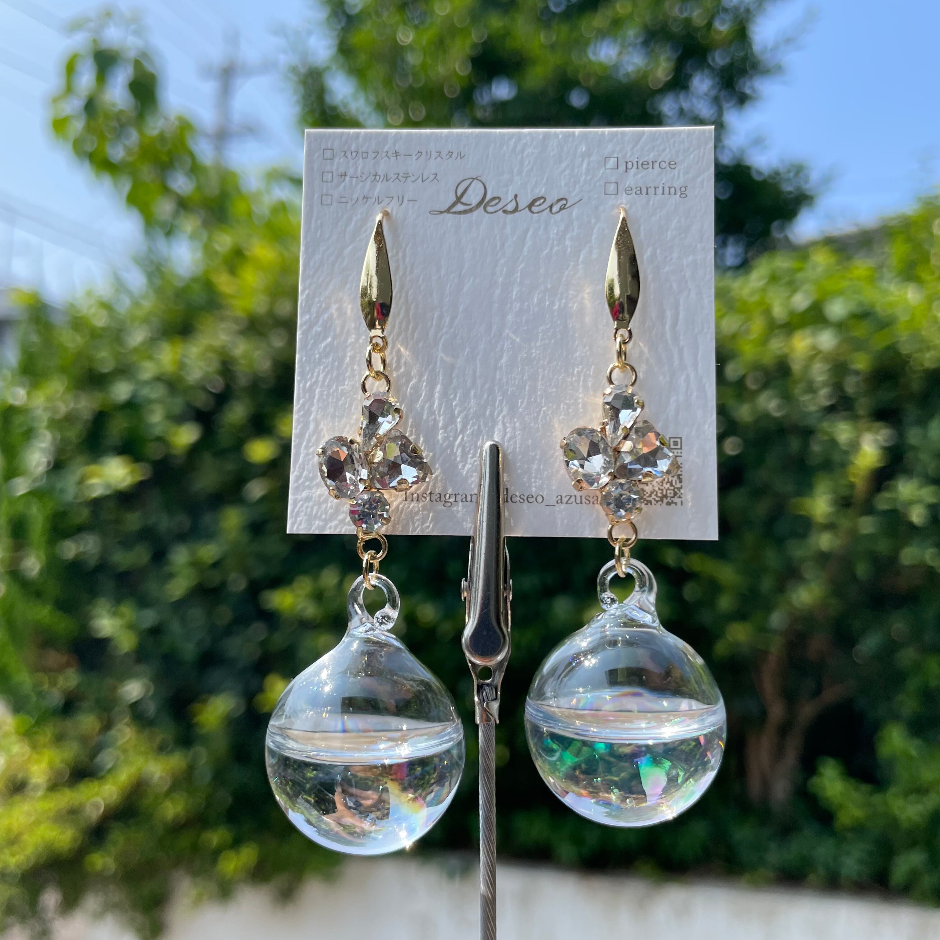 ガラスボールを楽しむフックタイプピアス❤️揺れるピアス✨NO.97