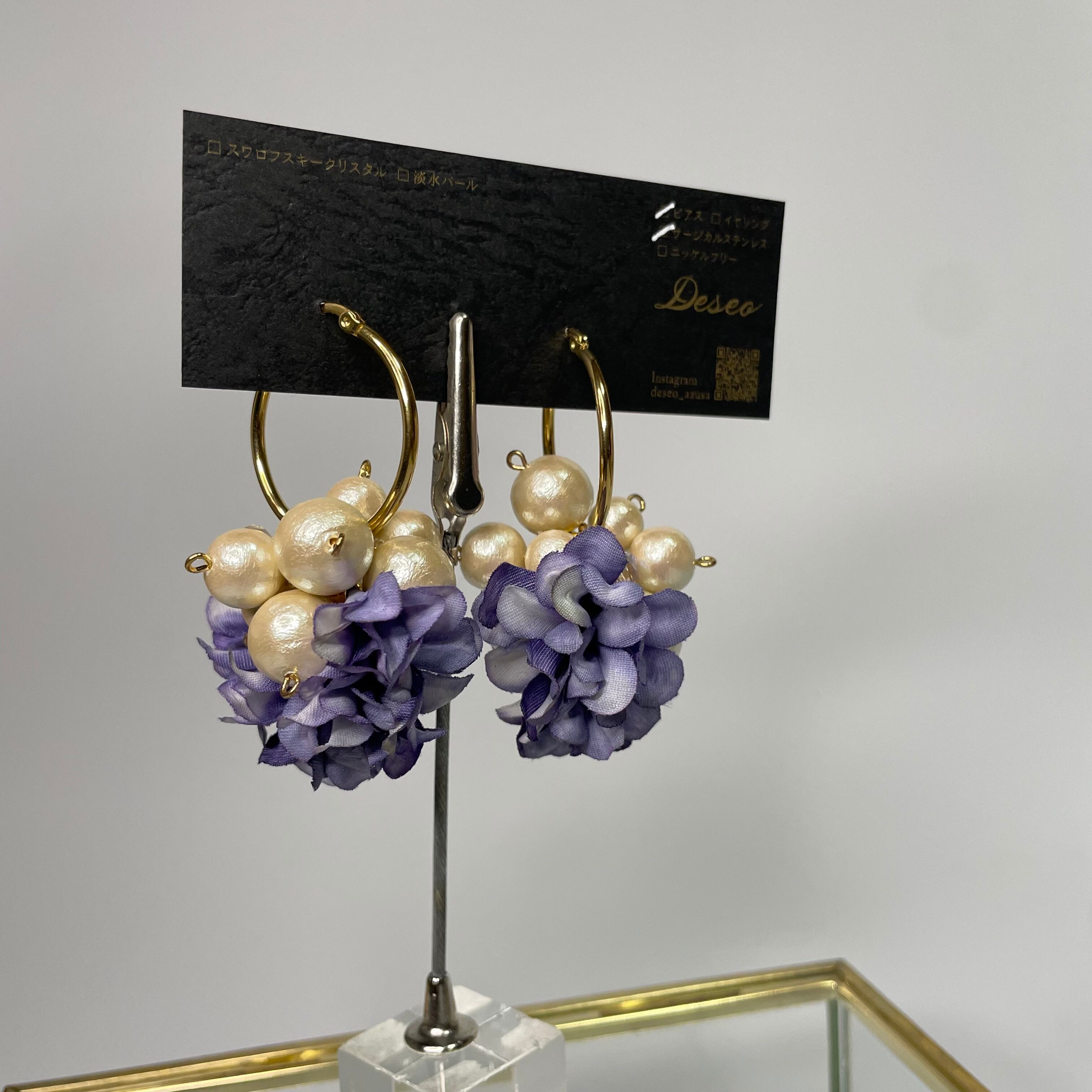 アジサイ❤️ボリュームパールフラワー✨アジサイピアス.アジサイイヤリング✨お花ピアス.お花イヤリング NO.99