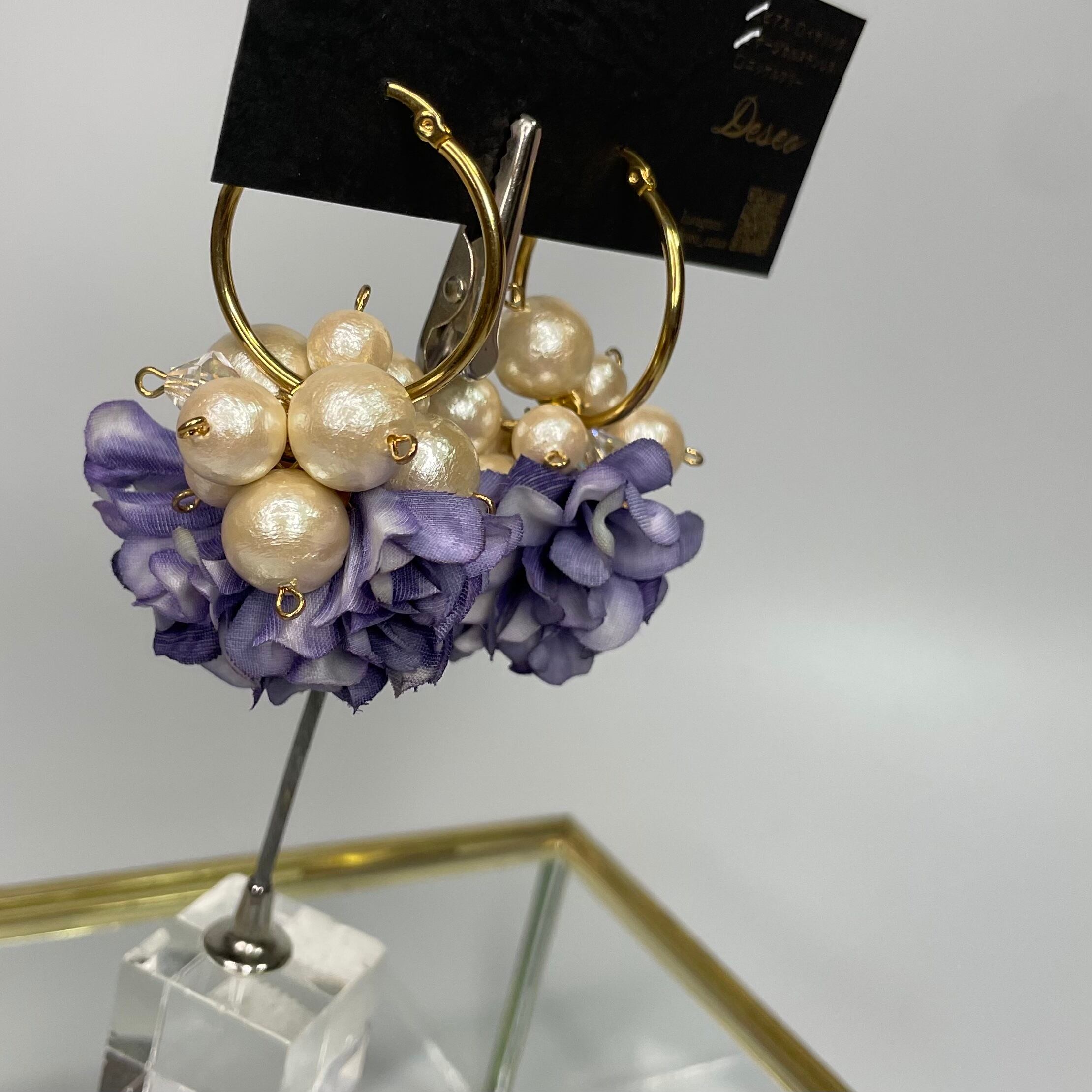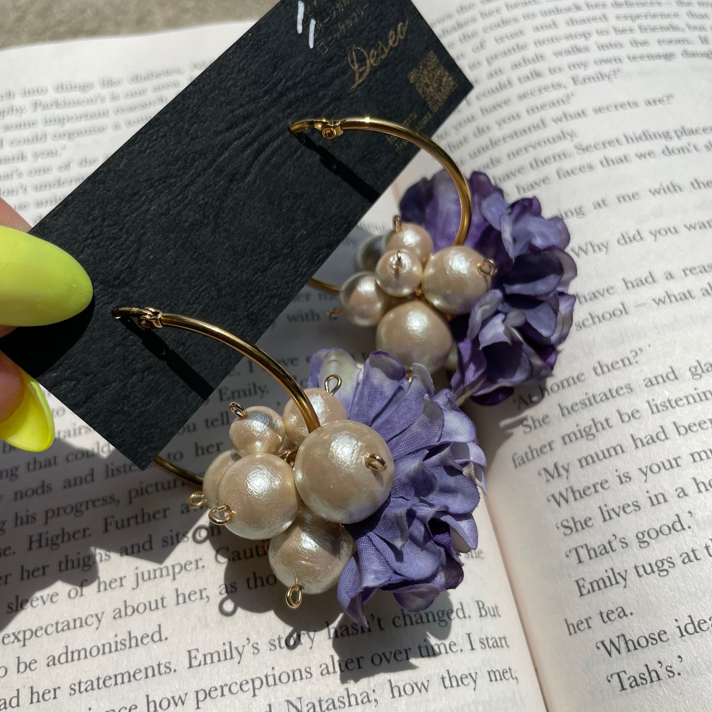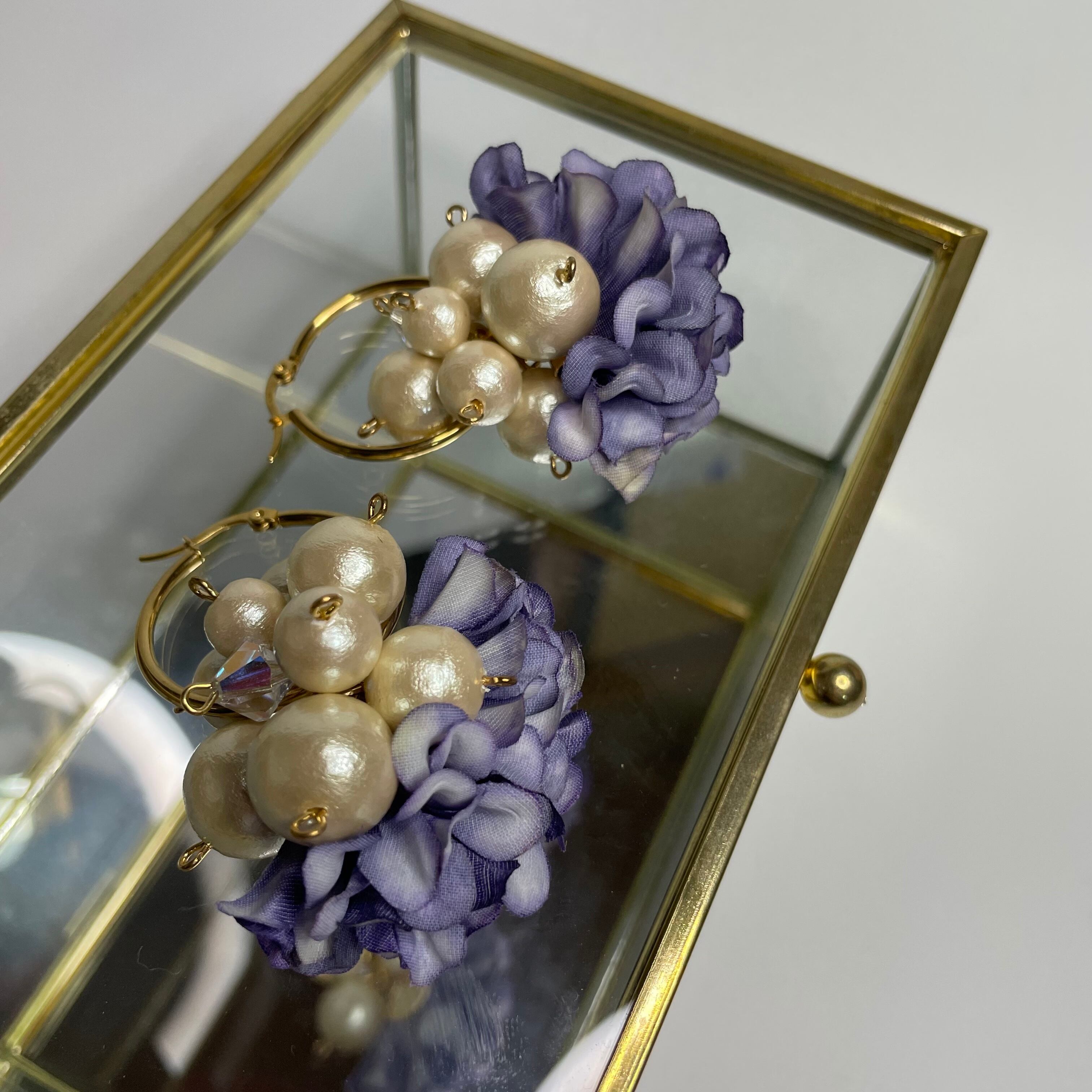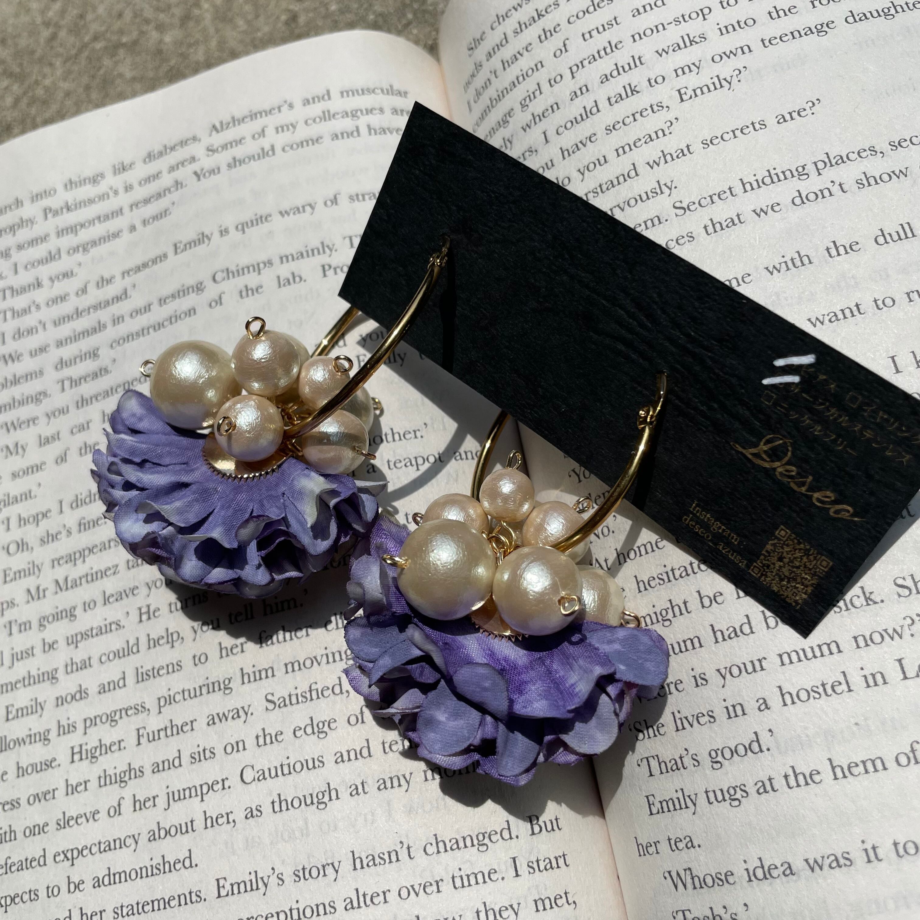 庭の紫のアジサイをイメージして製作した耳アクセ