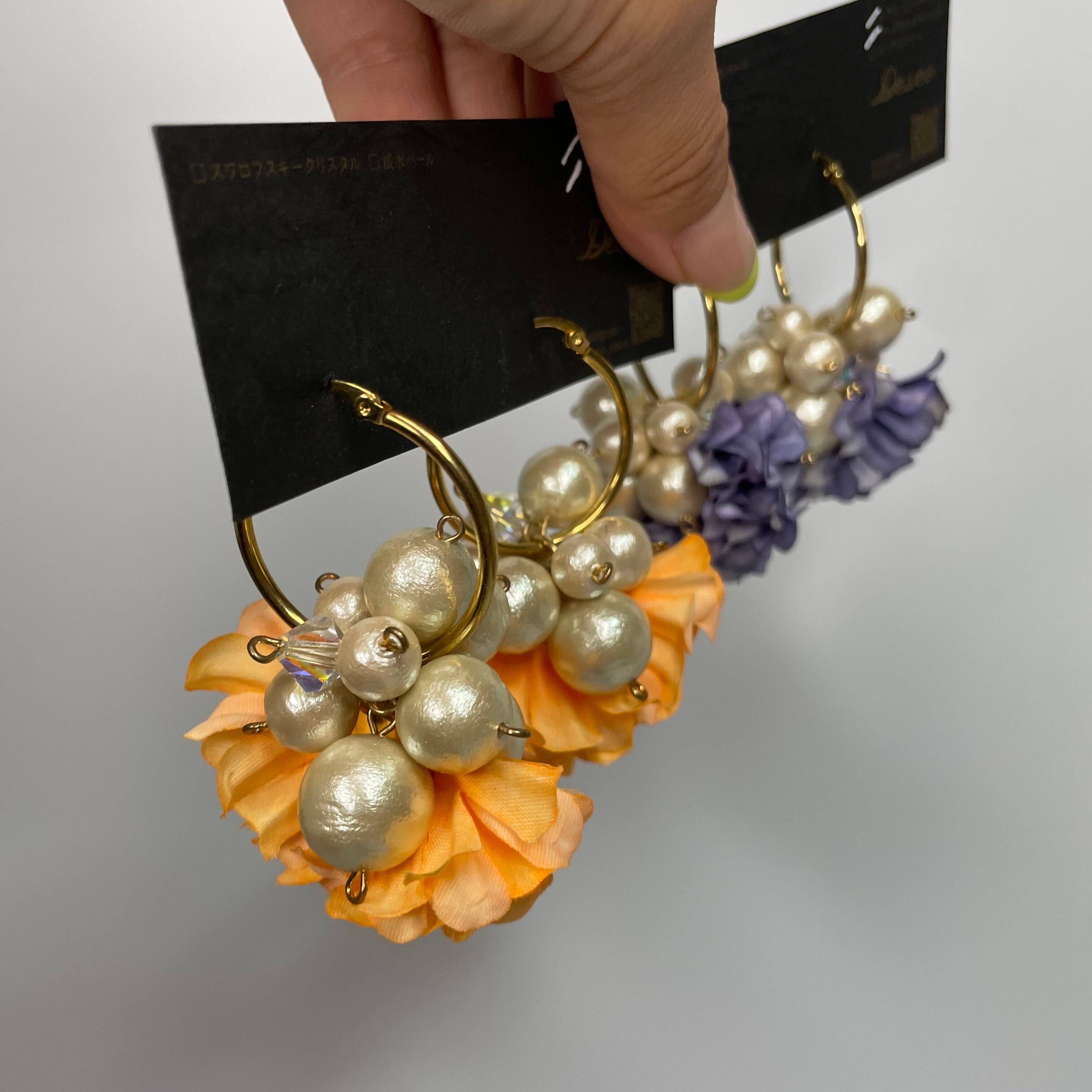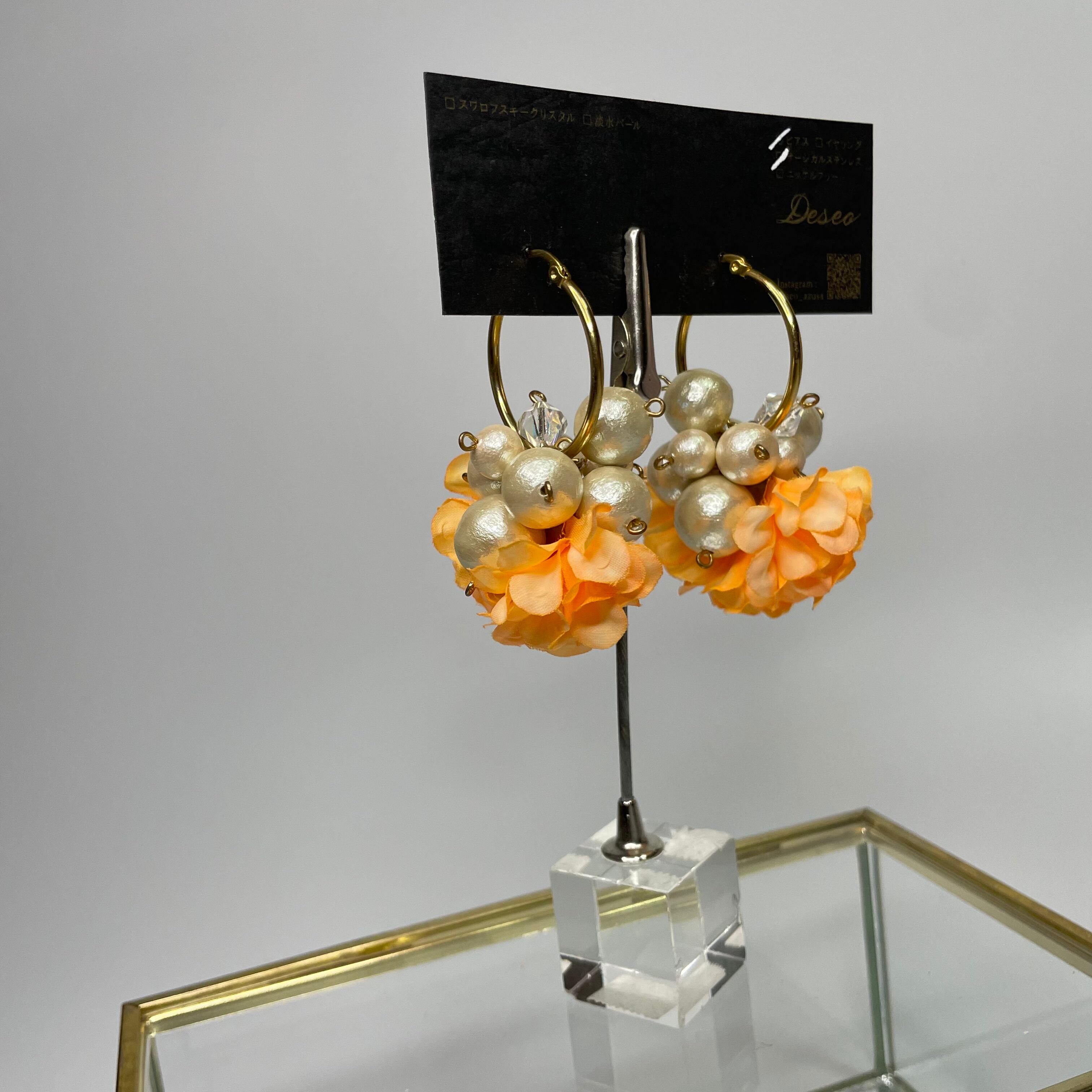マリーゴールド❤️ボリュームパールフラワー✨お花ピアス.お花イヤリング NO.100
