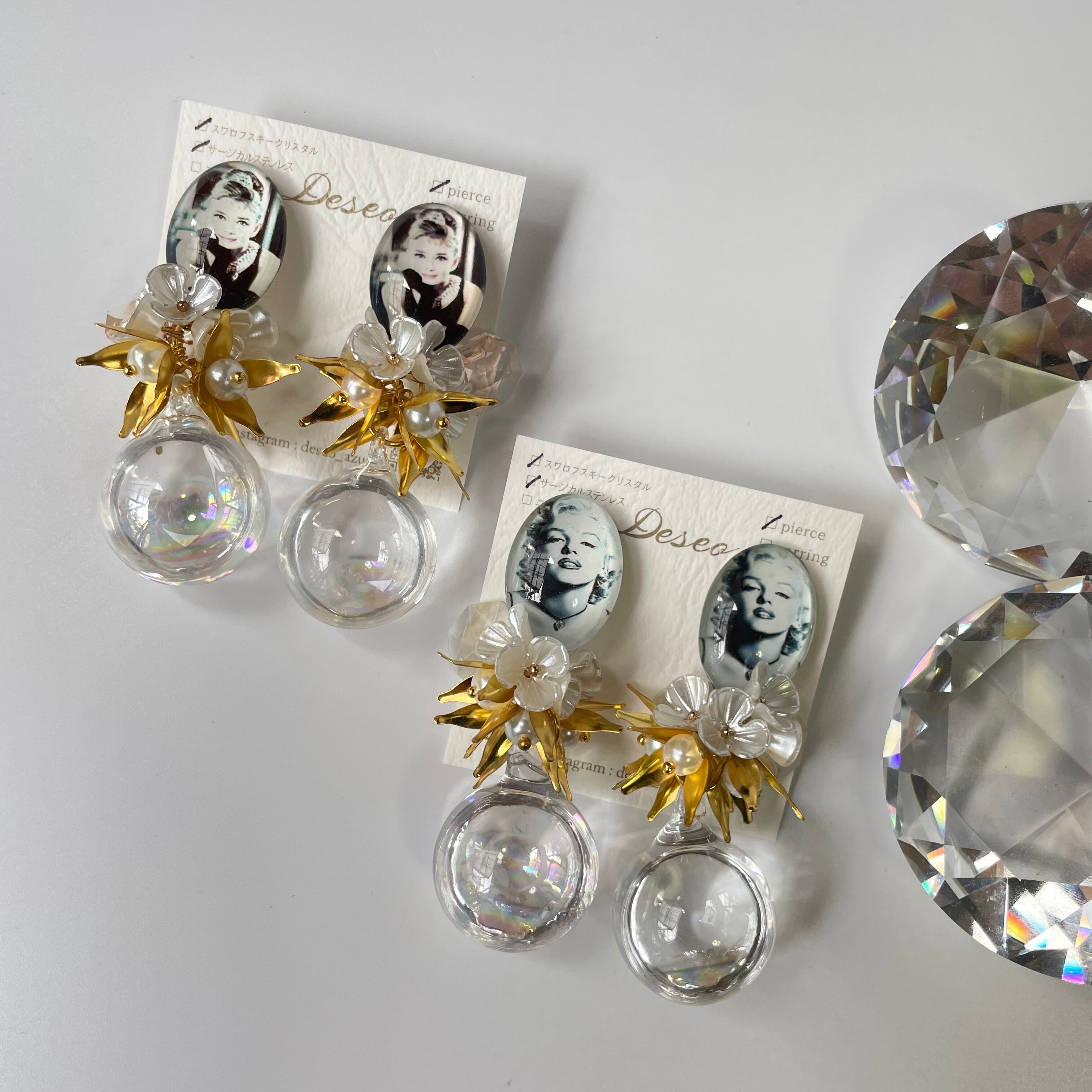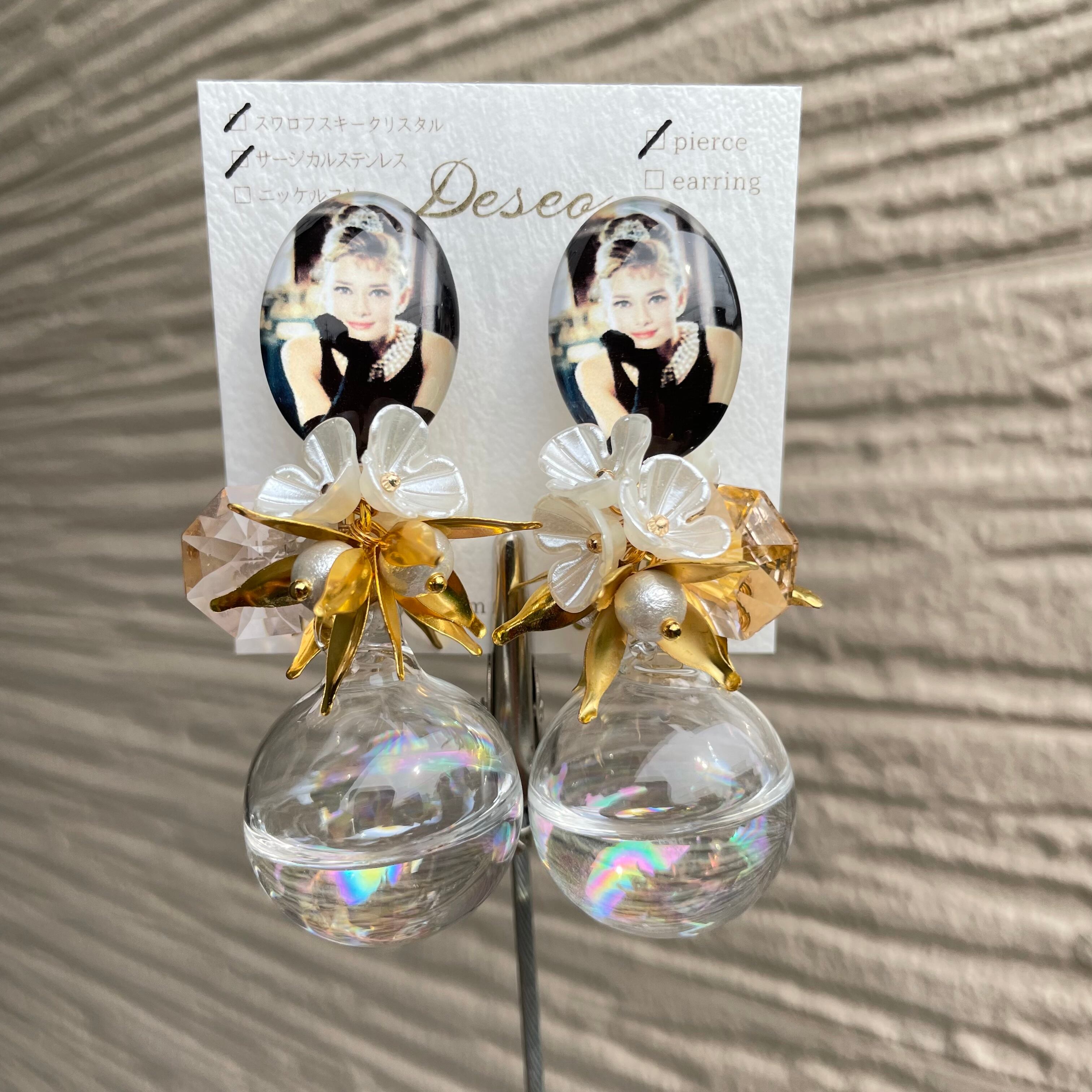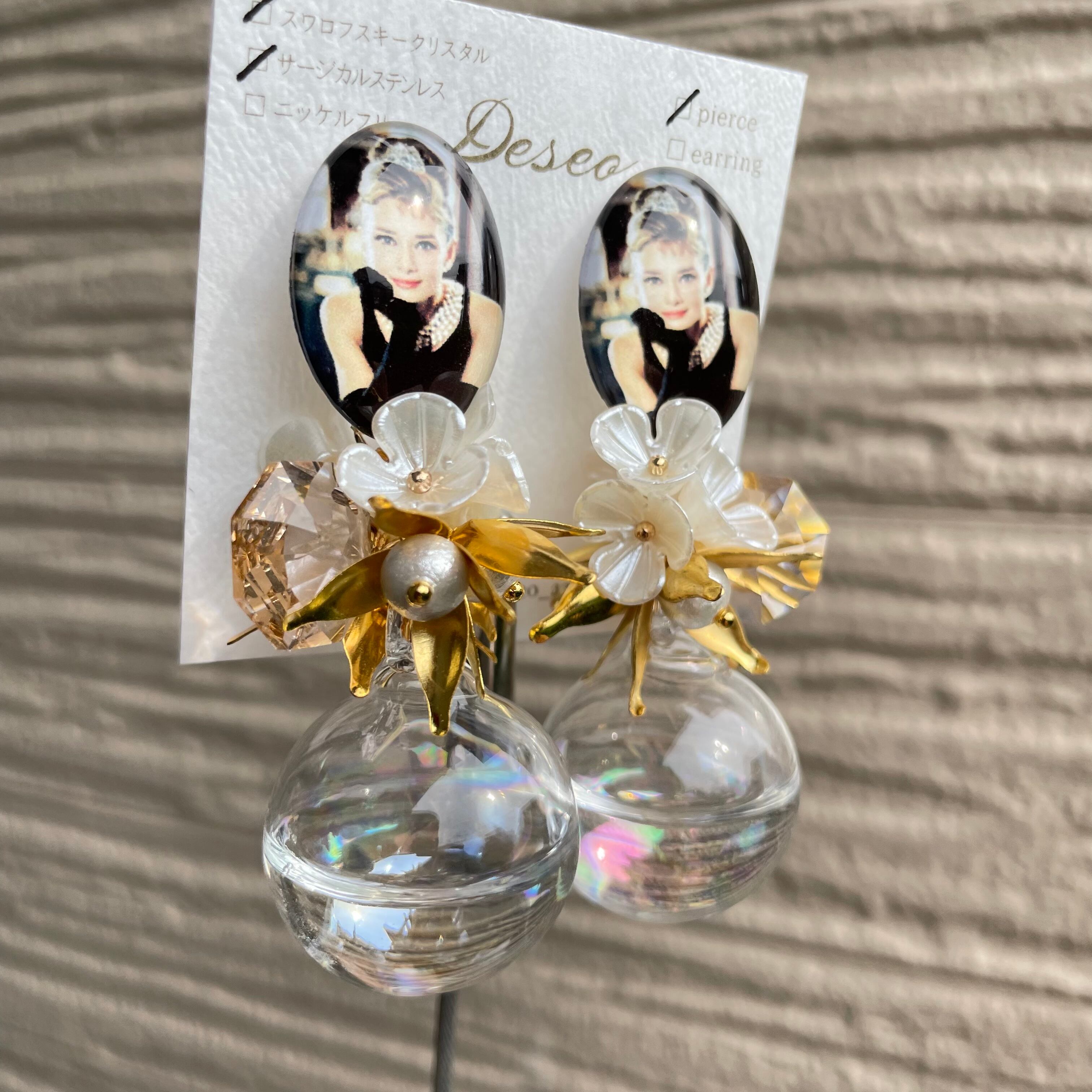 ティファニーで朝食を❤️オードリーピアス✨オードリーヘップバーン.ガラスボールピアス NO.103
