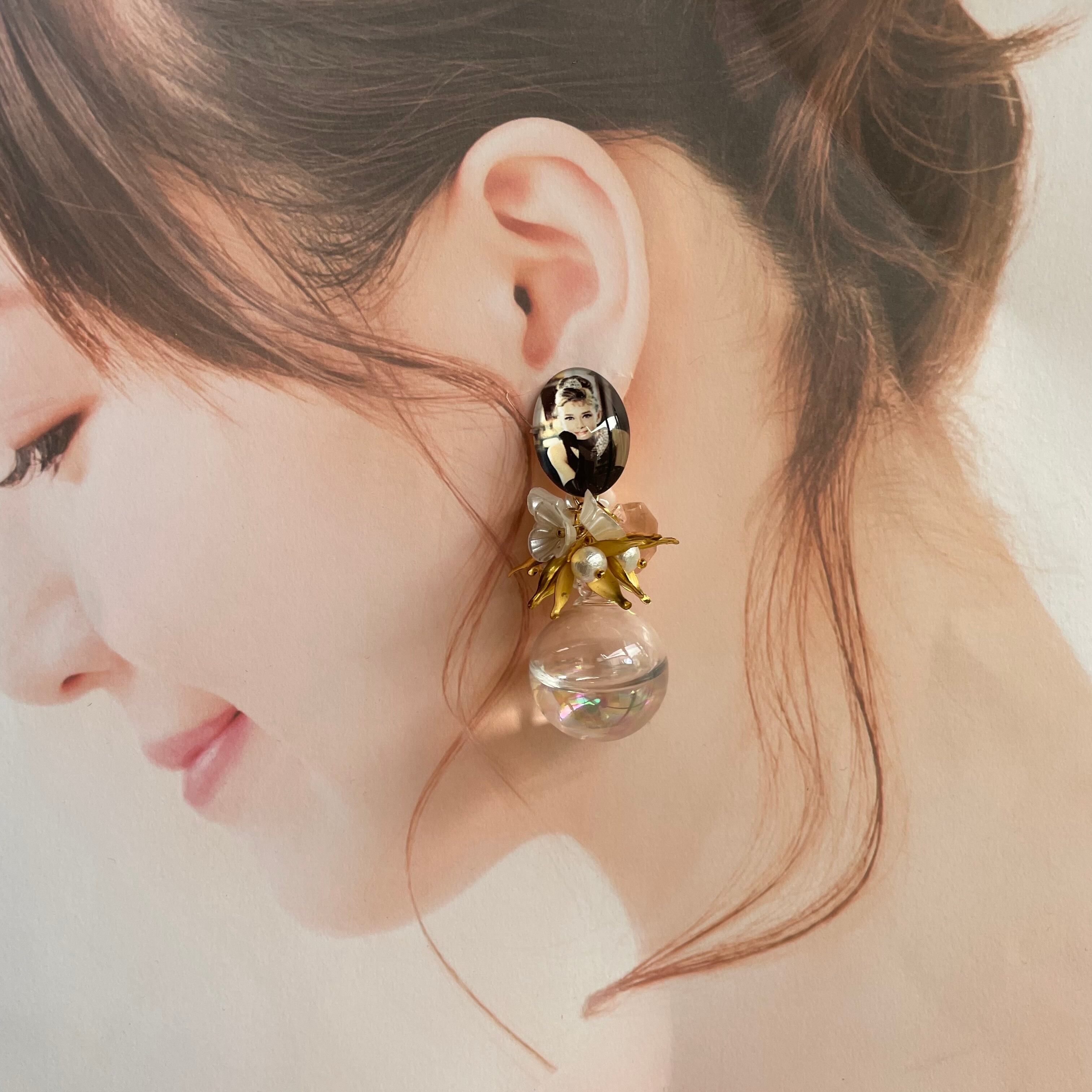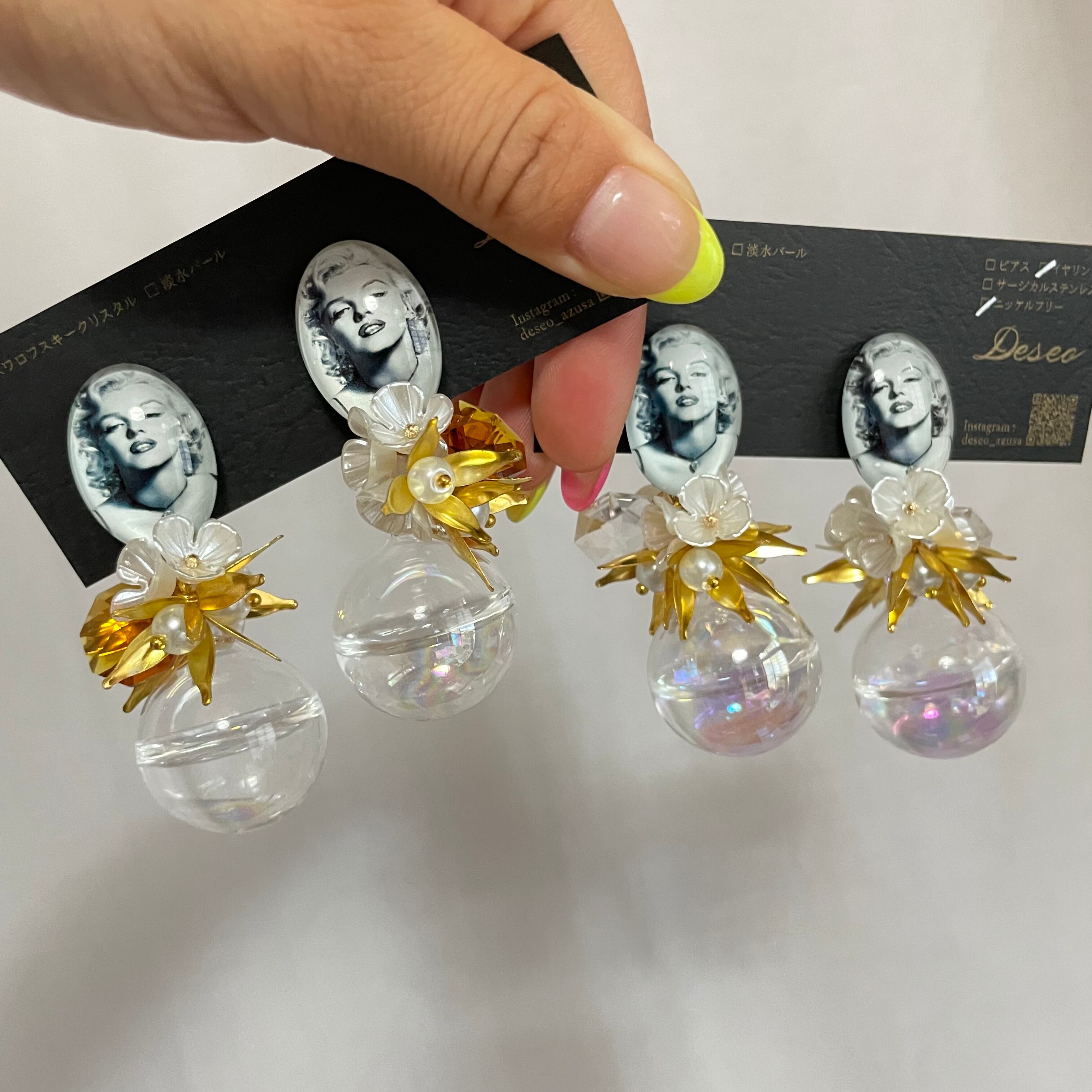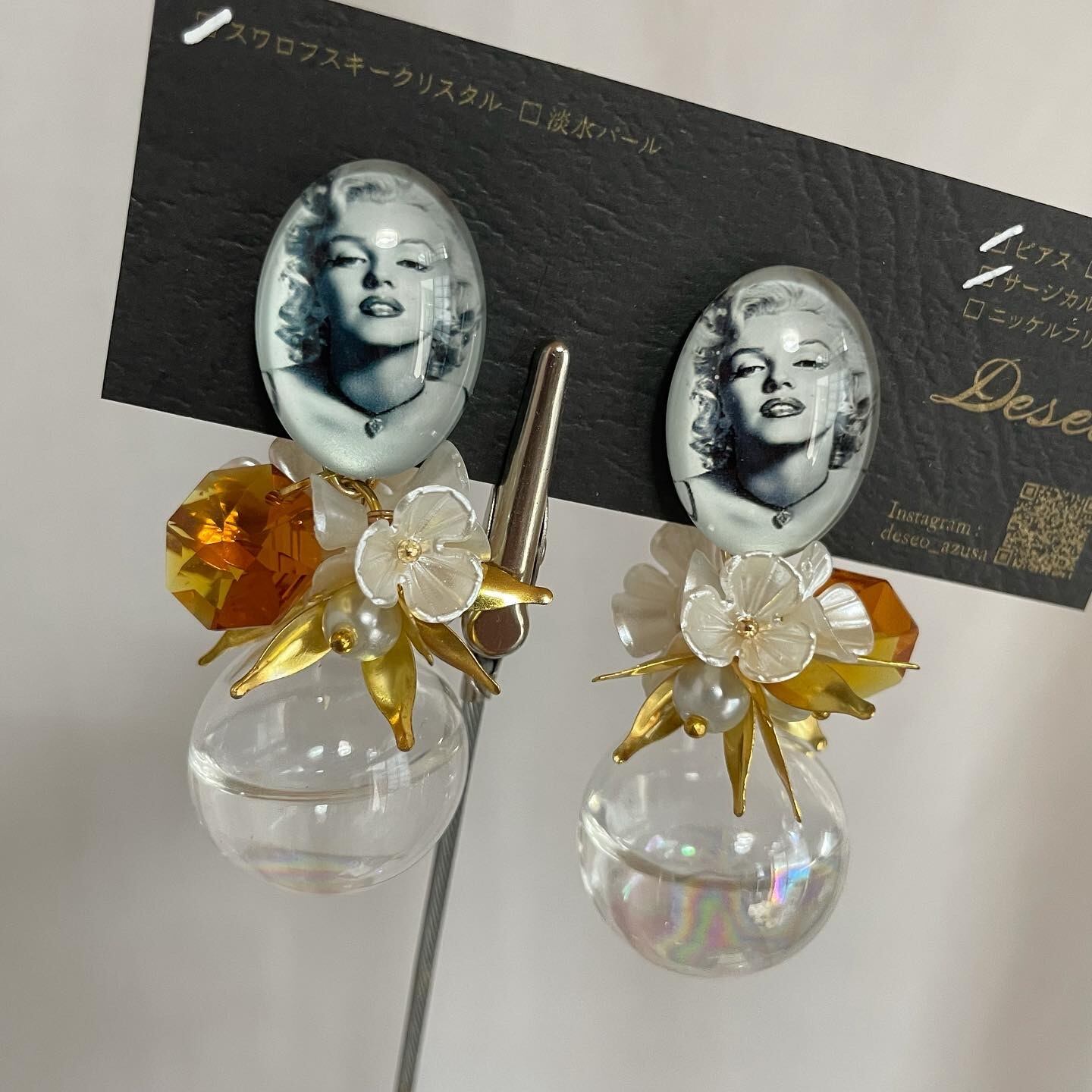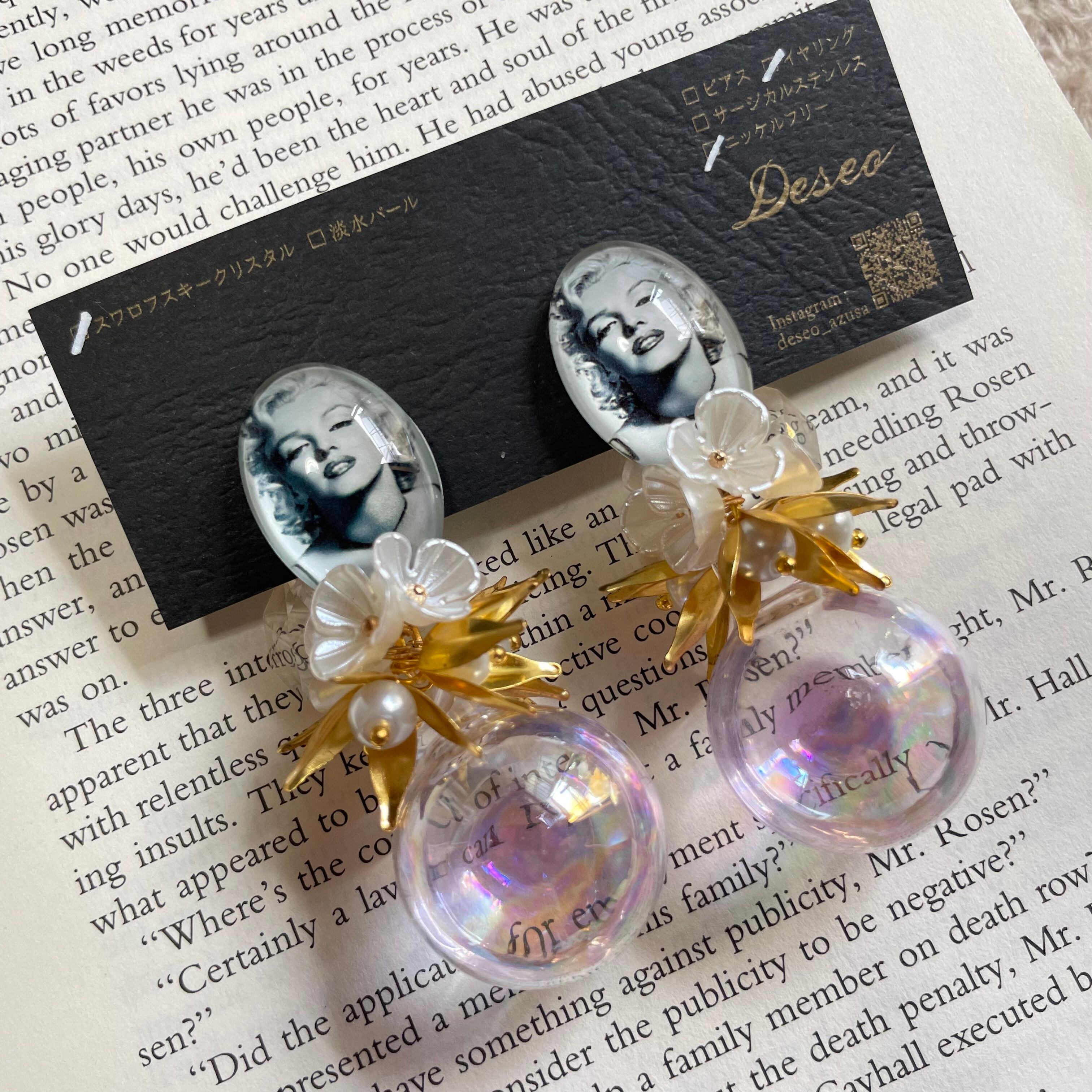 マリリンモンロー❤️Flower × ガラスボール × スワロフスキー✨マリリンピアス.マリリンイヤリング♡ガラスボールピアス.ガラスボールイヤリング NO.104