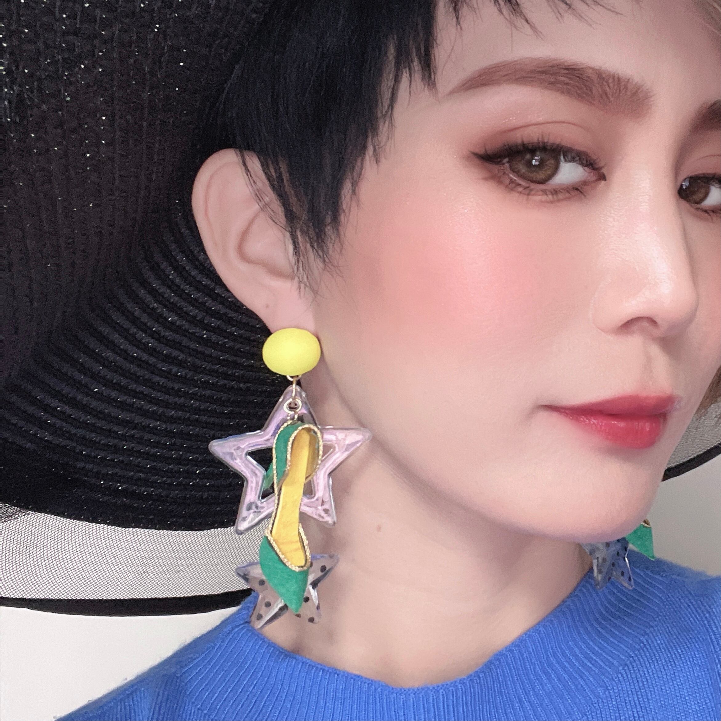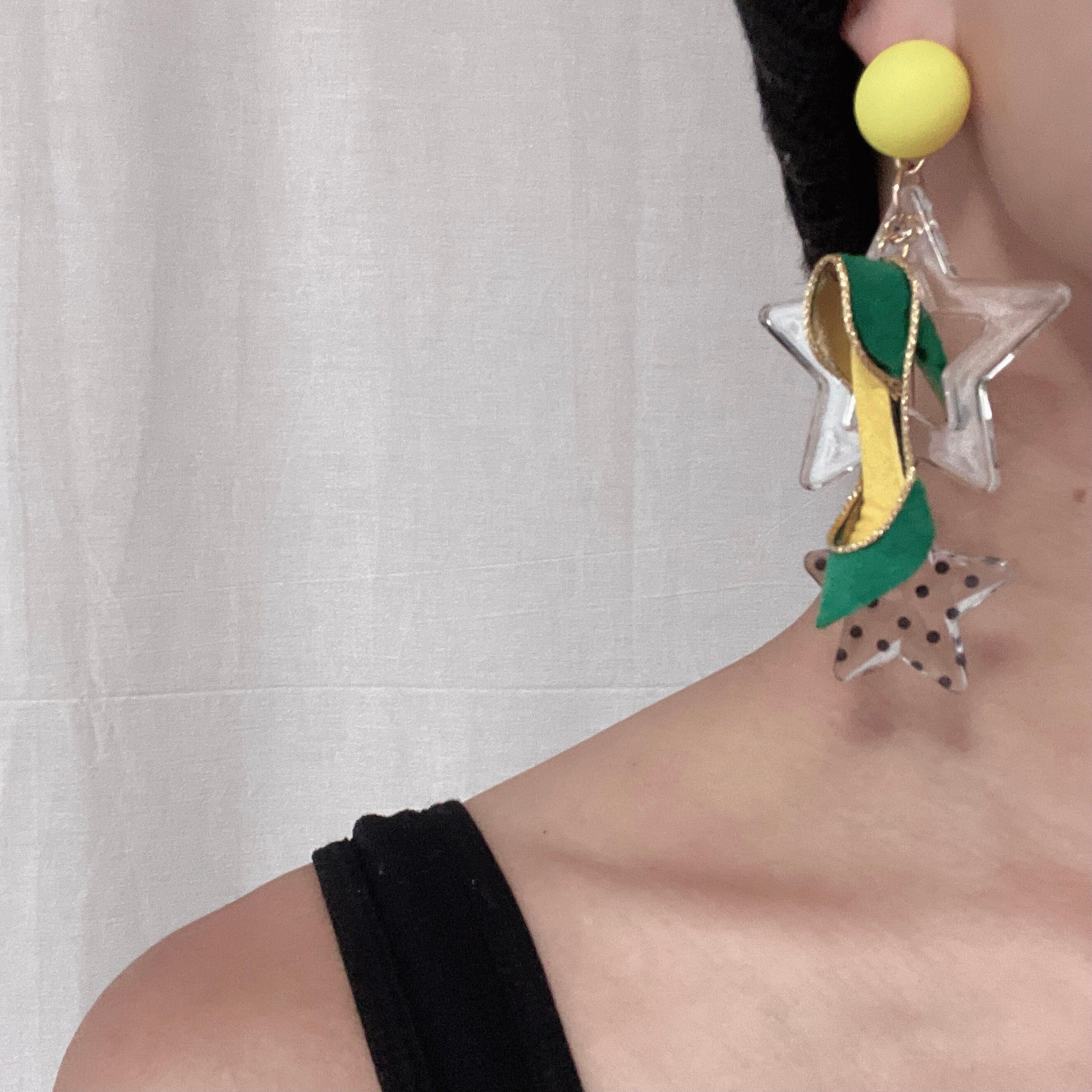 こちら革職人様が製作した本革ハイヒールに、変色しない、汗に強い、アクリルの大ぶりの星を合わせました