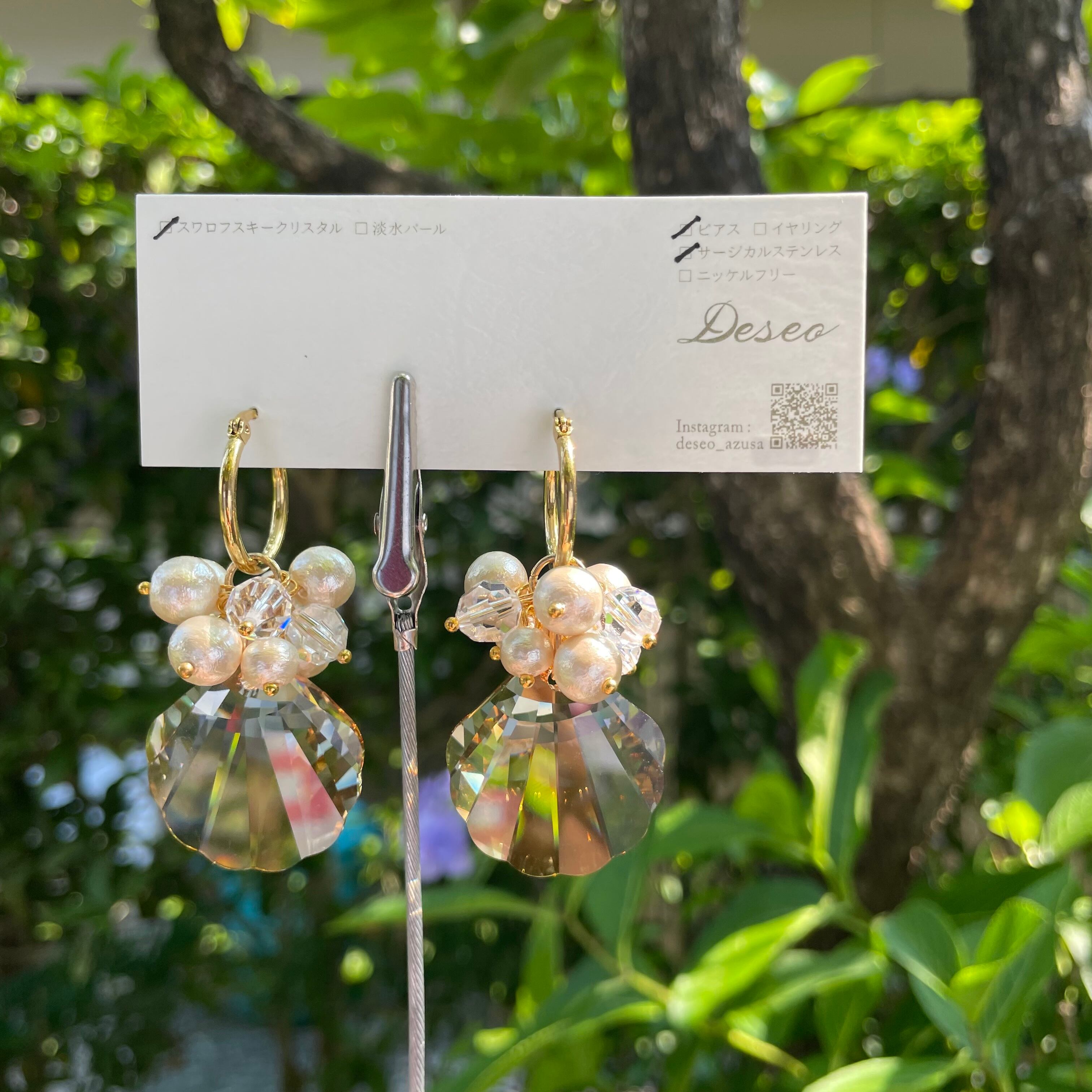 シェル希少スワロフスキー❤️スワロフスキーピアス.スワロフスキーイヤリング NO.132