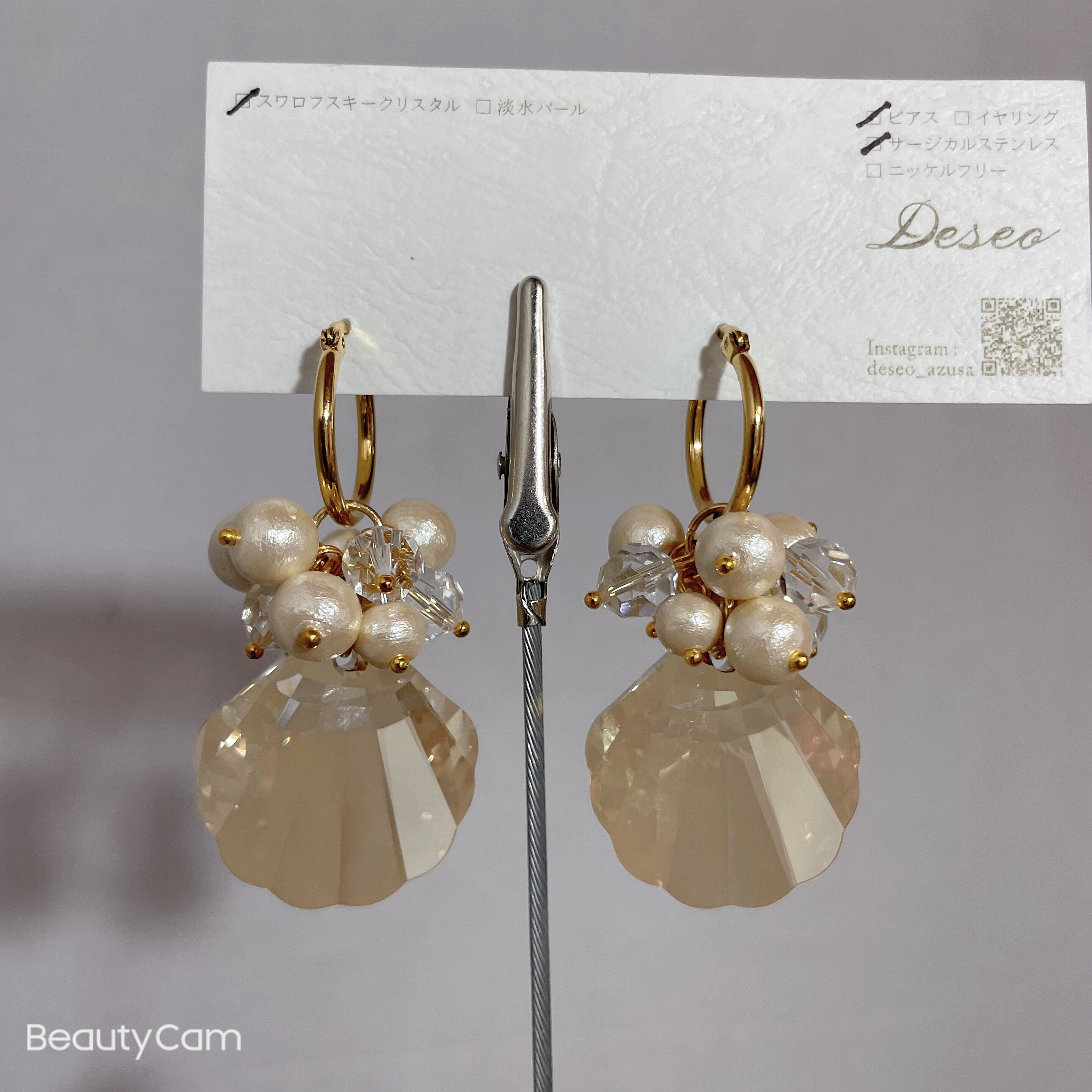 スワロフスキー大きめですので少し重みもあります。こちらは同じcolorの同じシェルスワロフスキーの少し大きめのペンダントもご用意あります♡