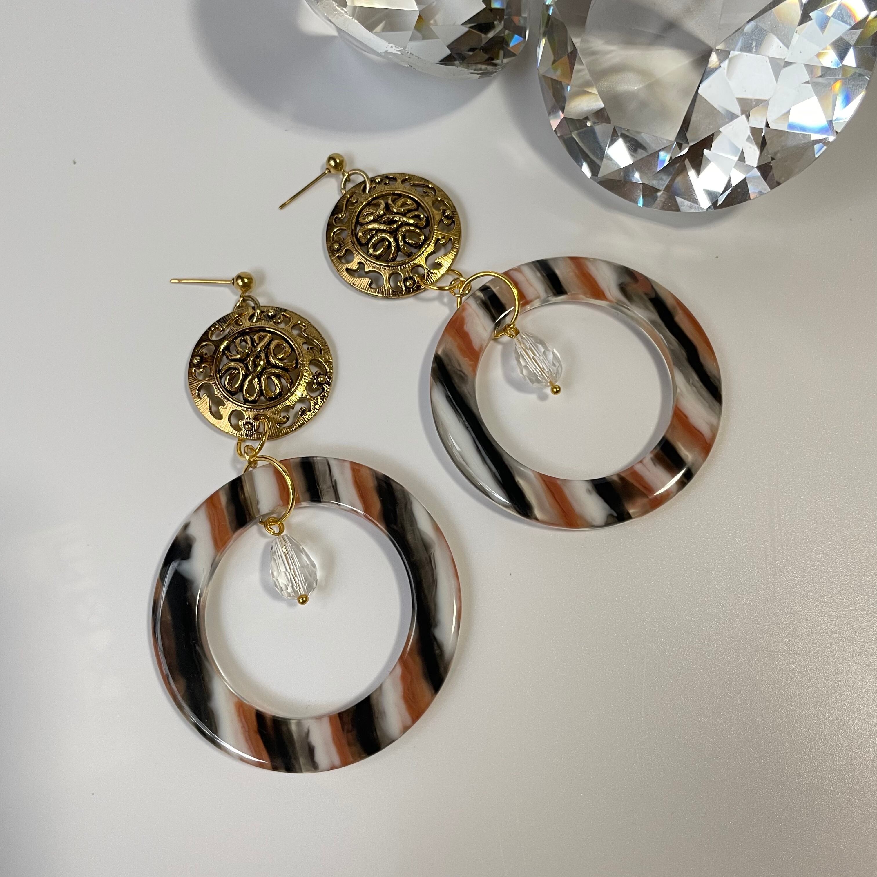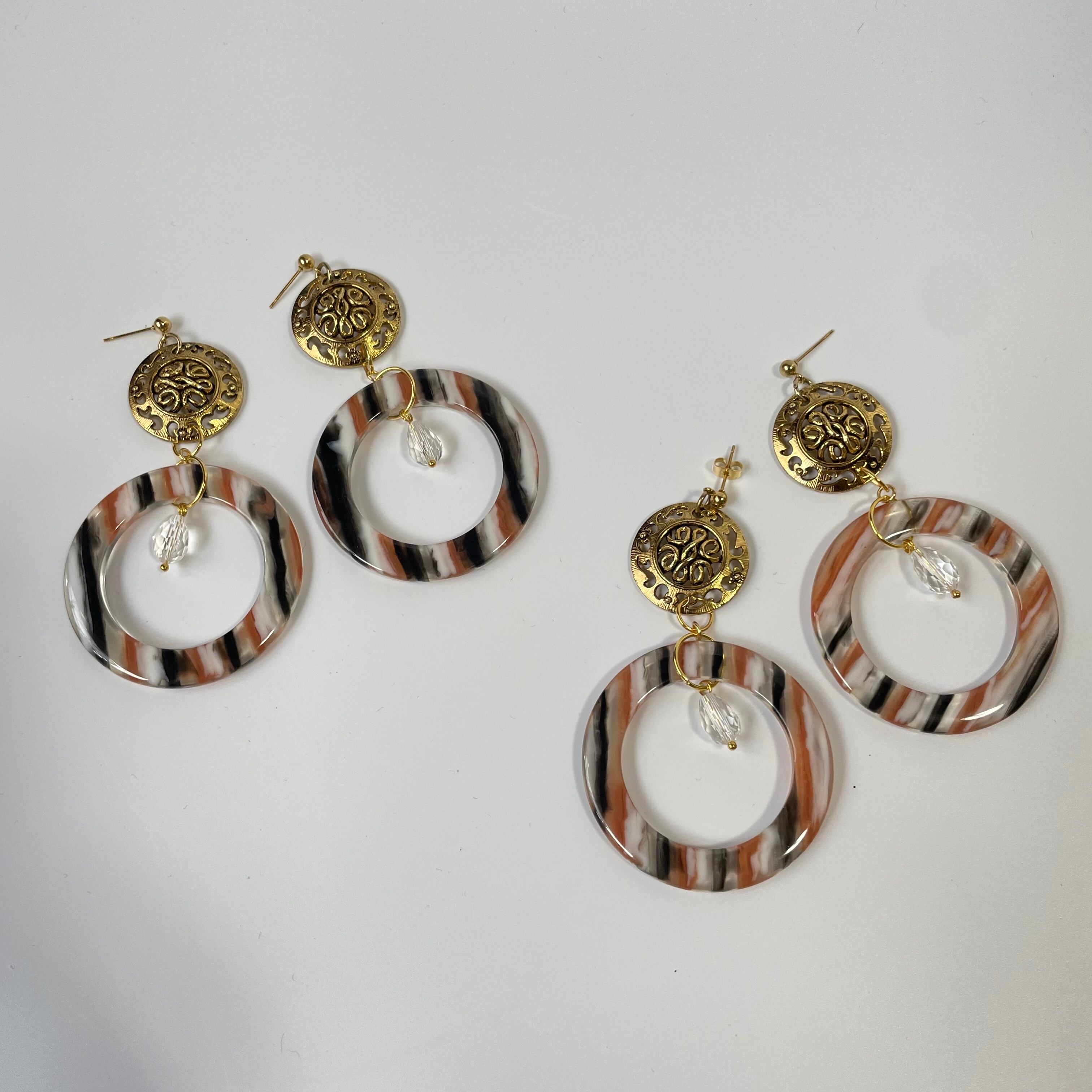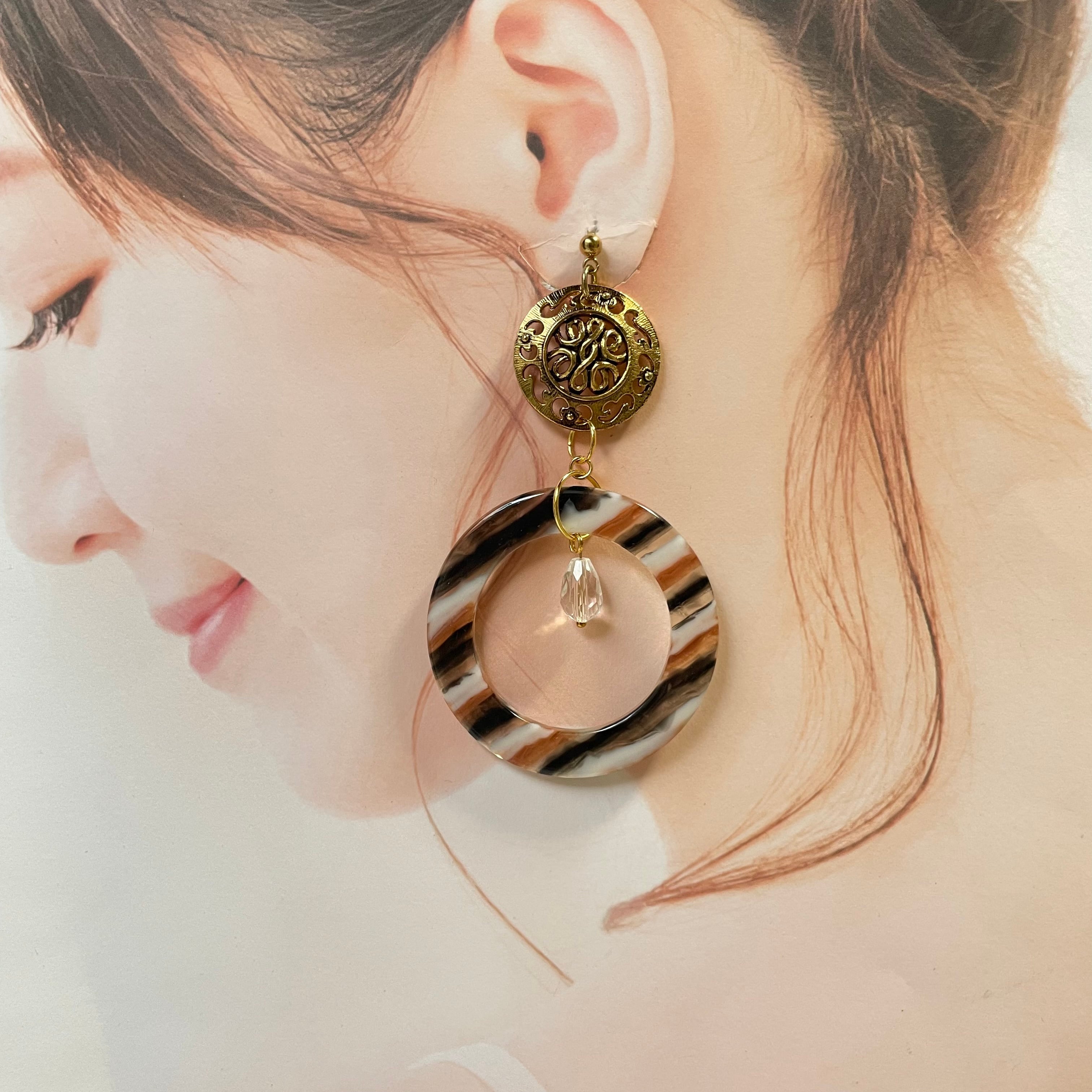 ヴィンテージボタン 秋色フープ❤️ボタンピアス.ボタンイヤリング.フープピアス.フープイヤリング NO.137