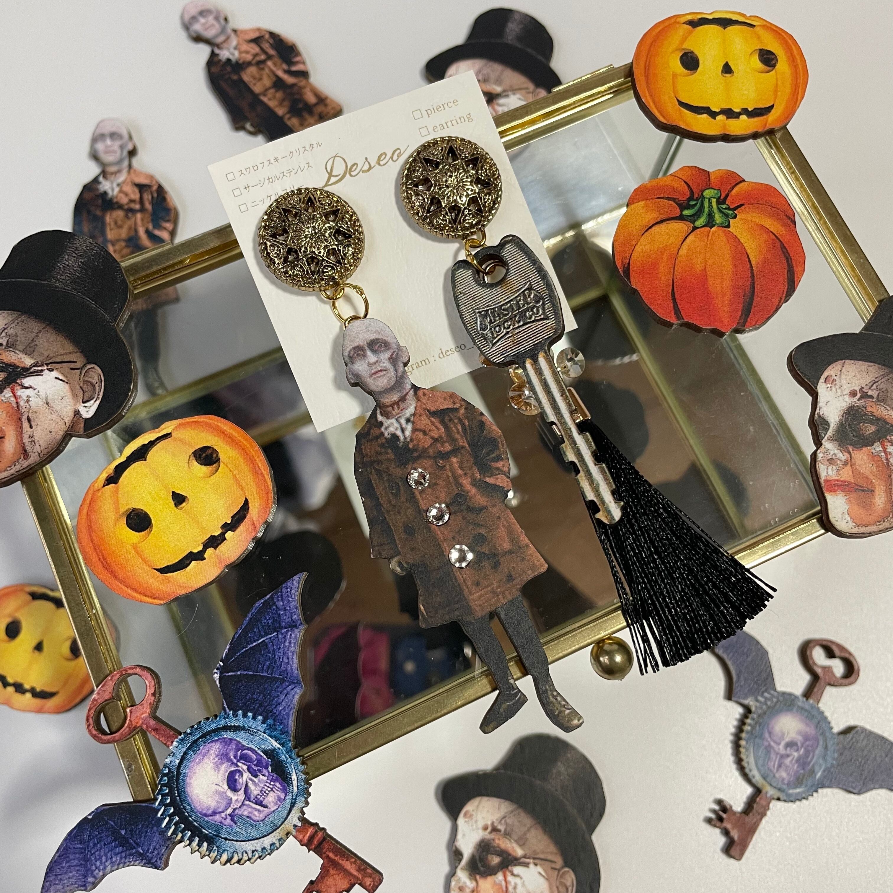 【Halloween】ZONBI★ハロウィン耳アクセサリー タッセル取外し可能★ハロウィンピアス.ハロウィンイヤリング NO.145