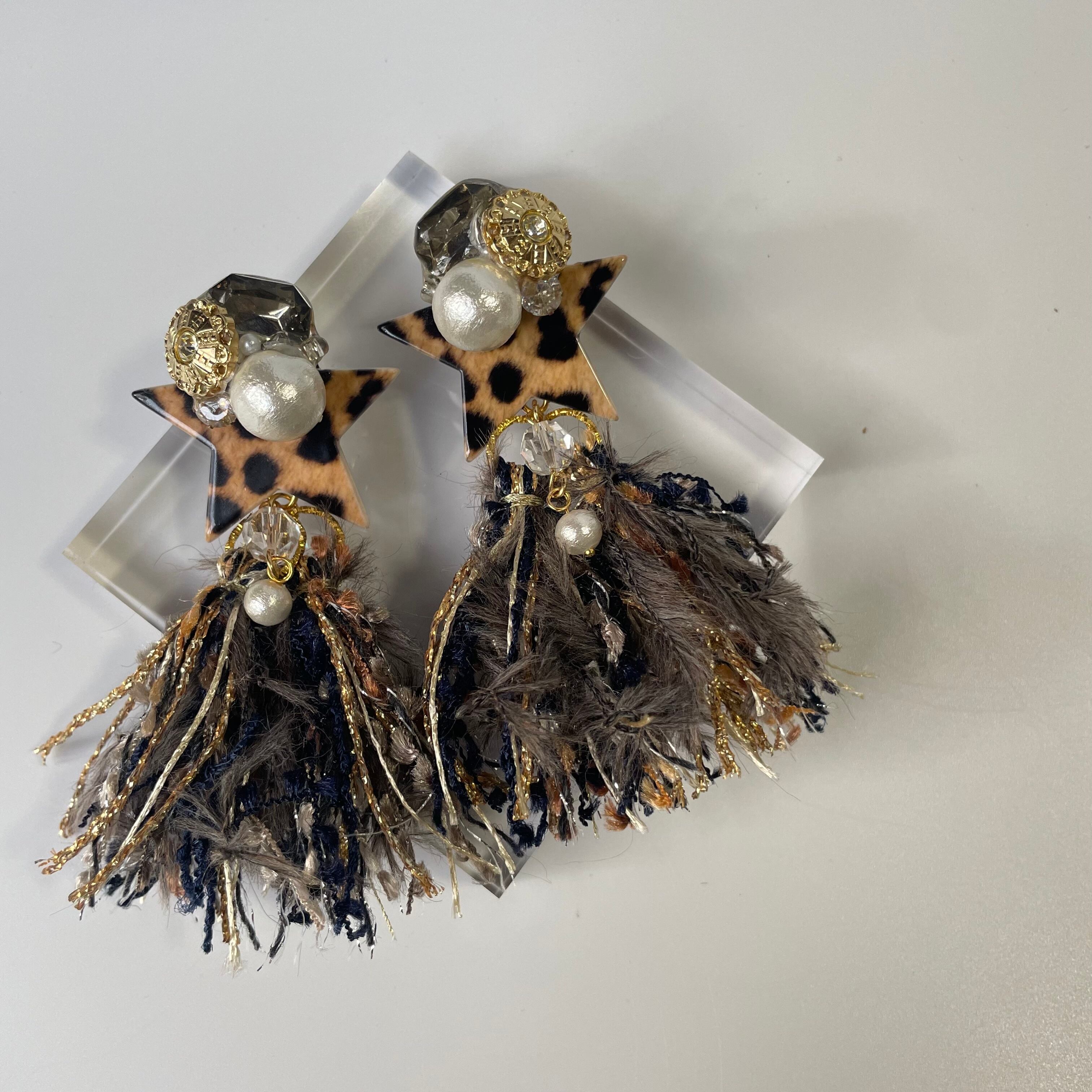Hoshi Moja❤️レオパビジュー★星ピアス ヒョウ柄ピアス タッセルピアス NO.156