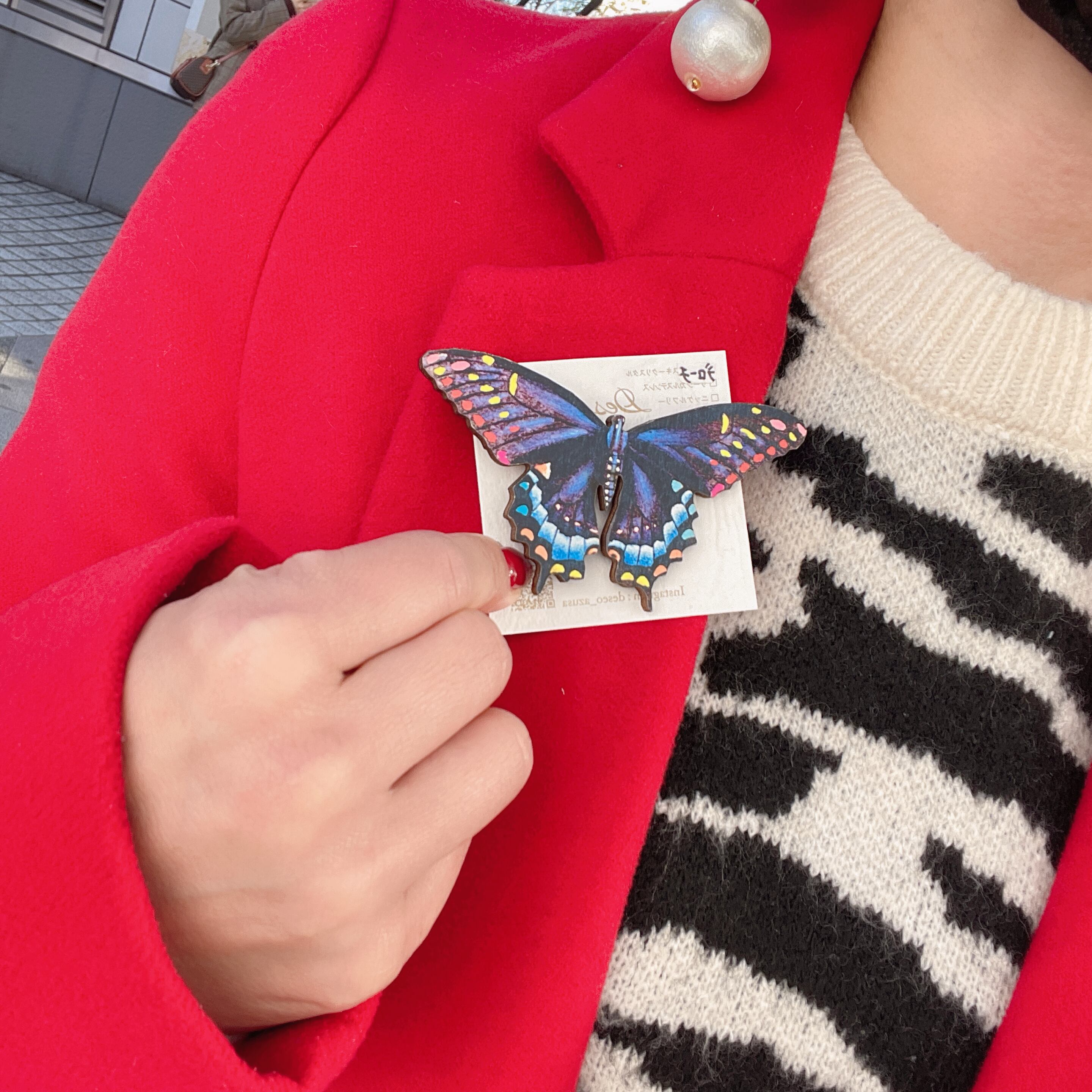 アメリカ製ウッドバタフライ❤️蝶ブローチ 蝶々 NO.194