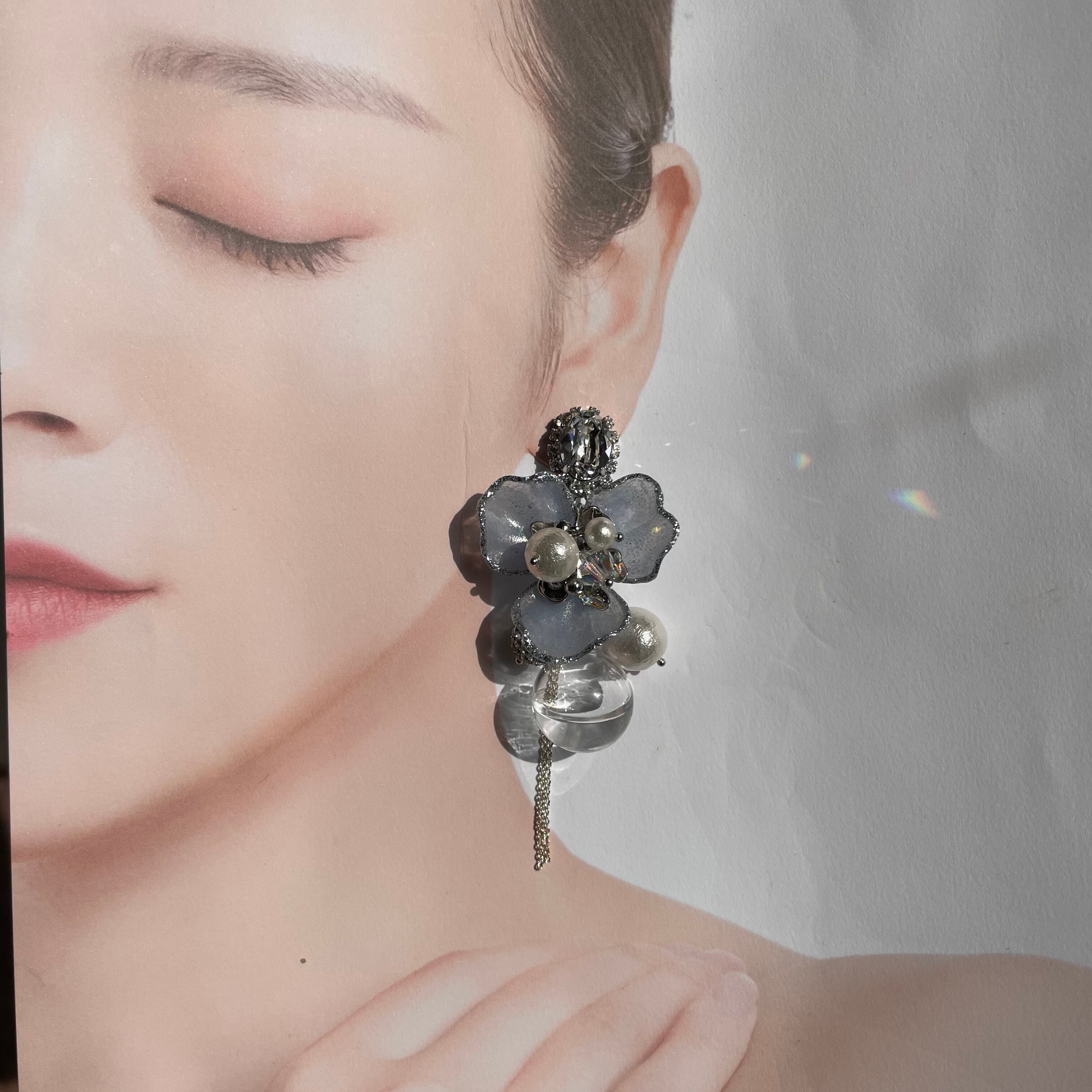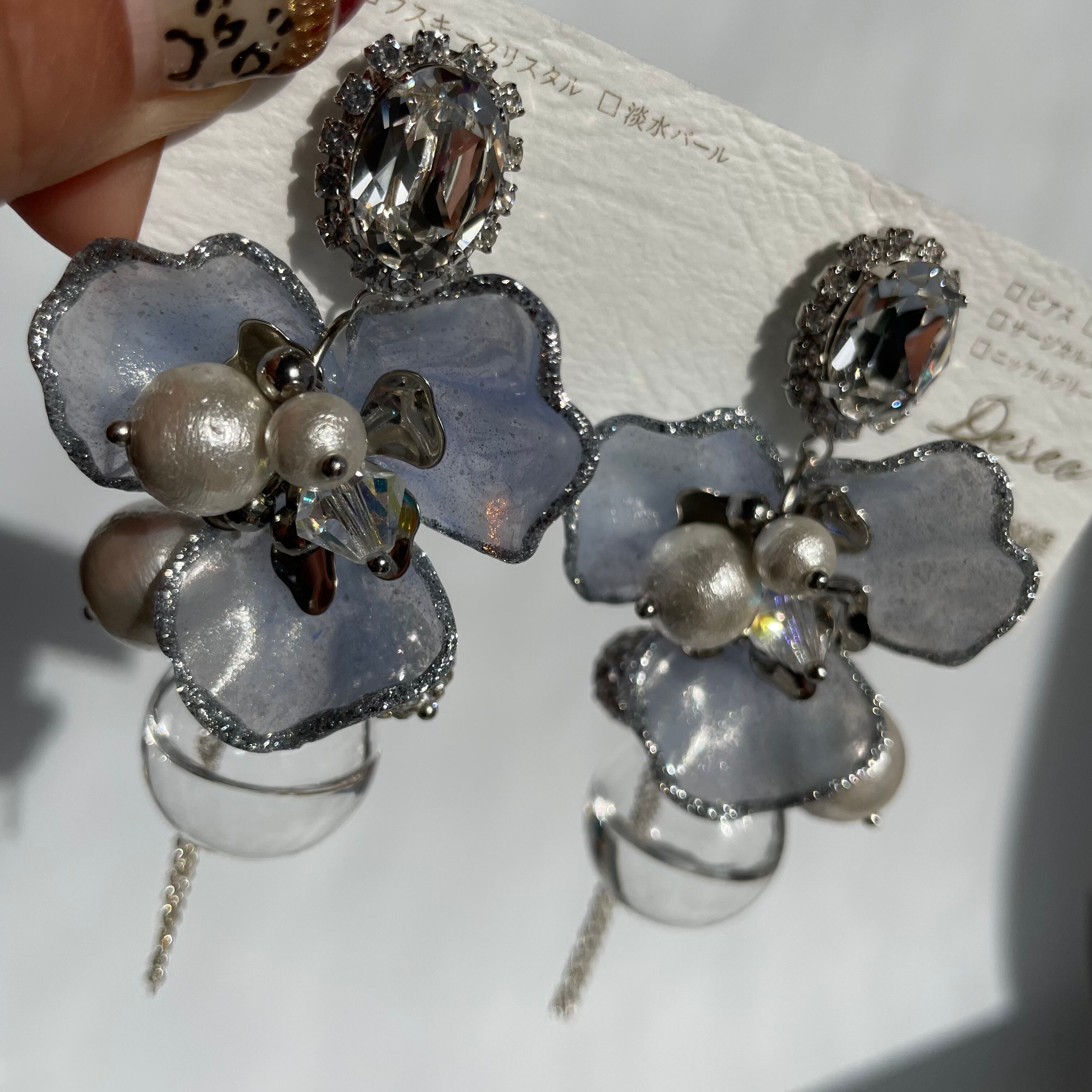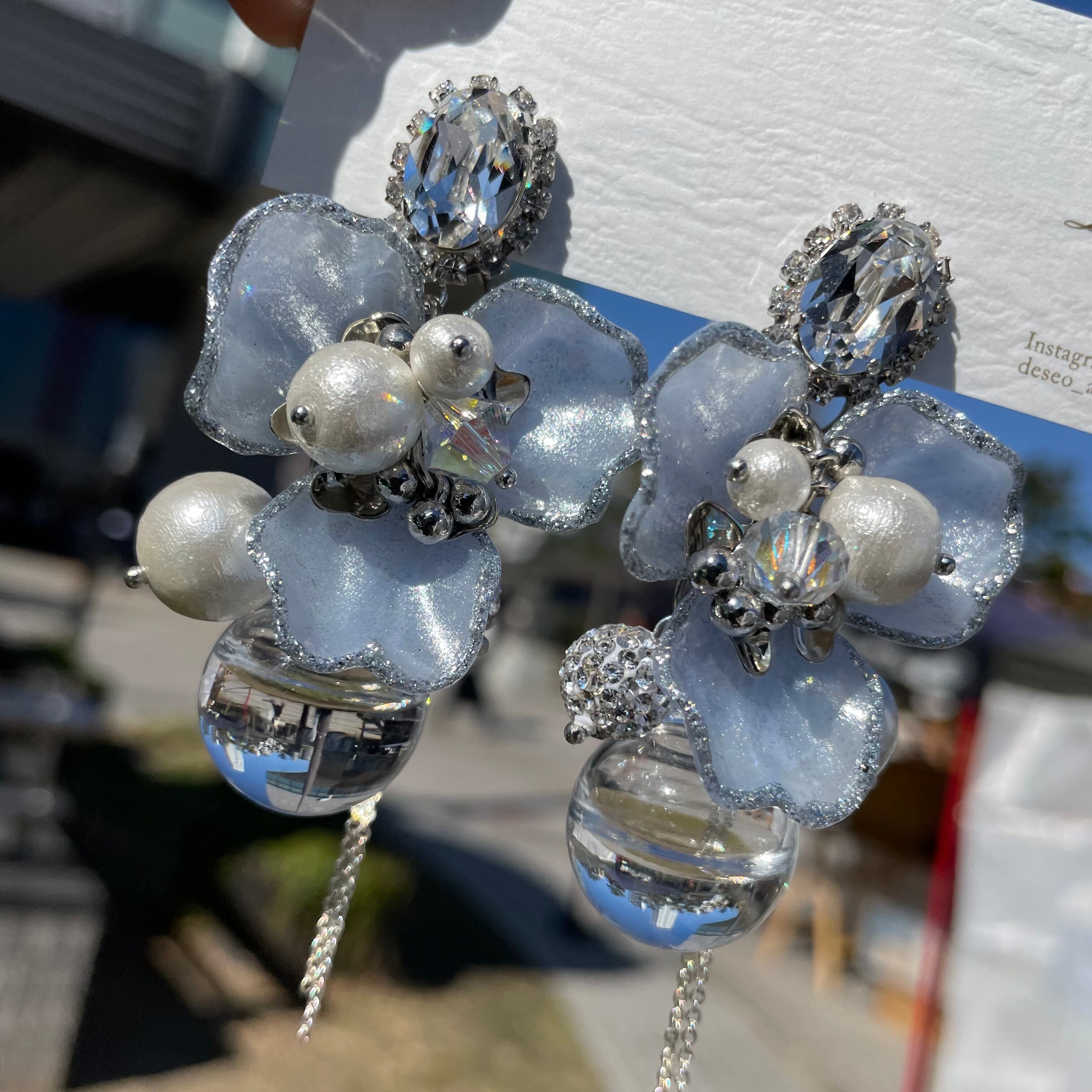 Daisy❤️大粒クリアスワロフスキー お花ピアス お花イヤリング ガラスボール NO.223