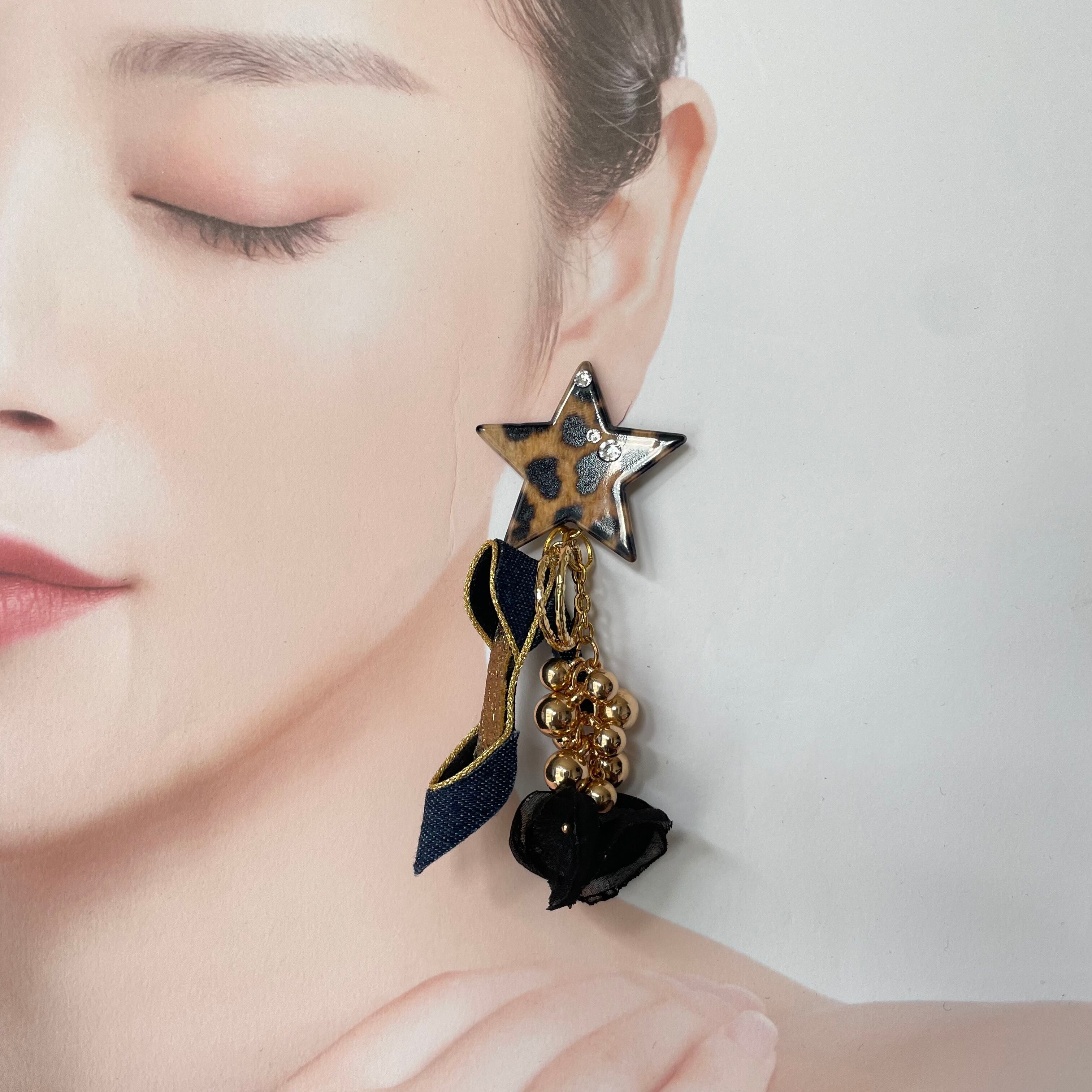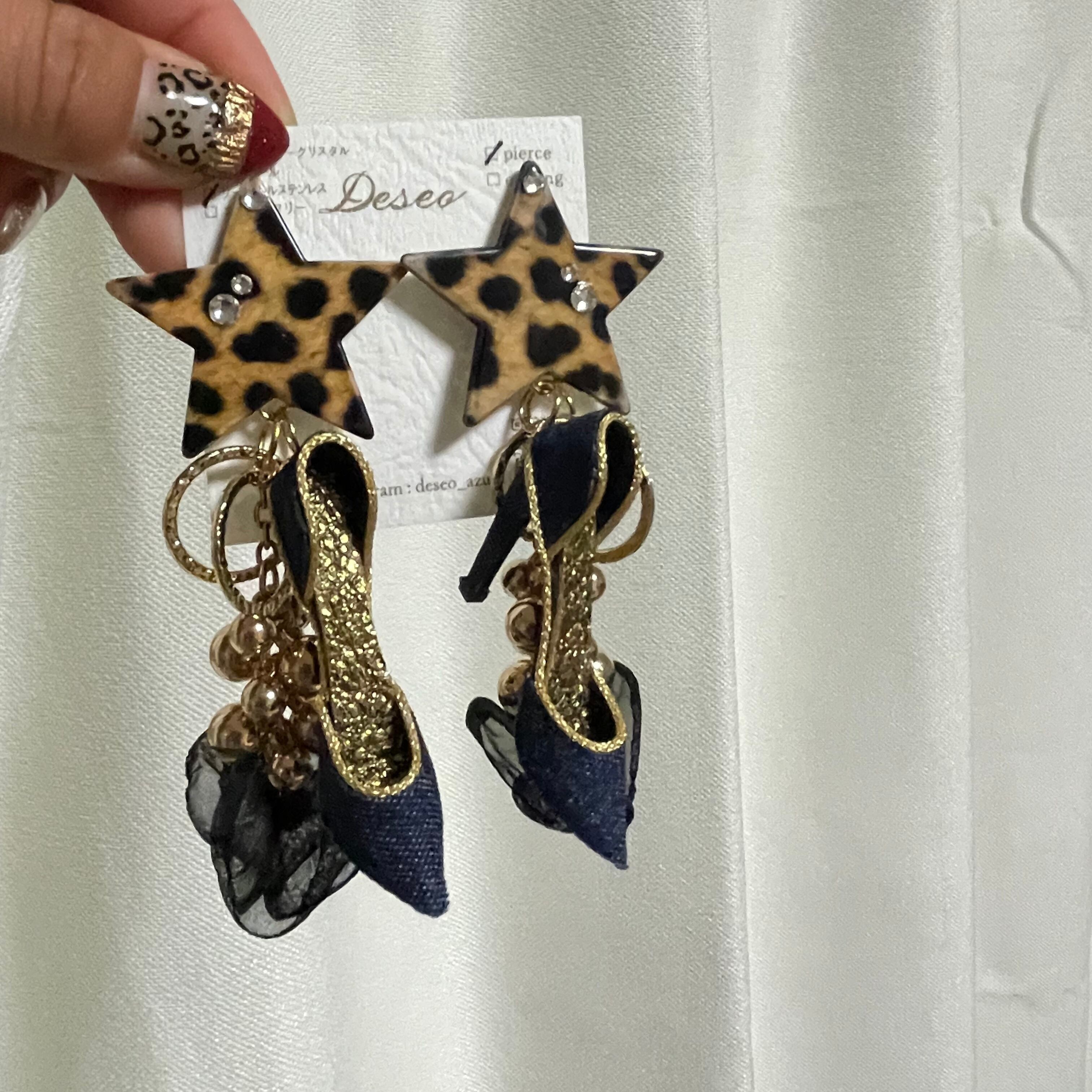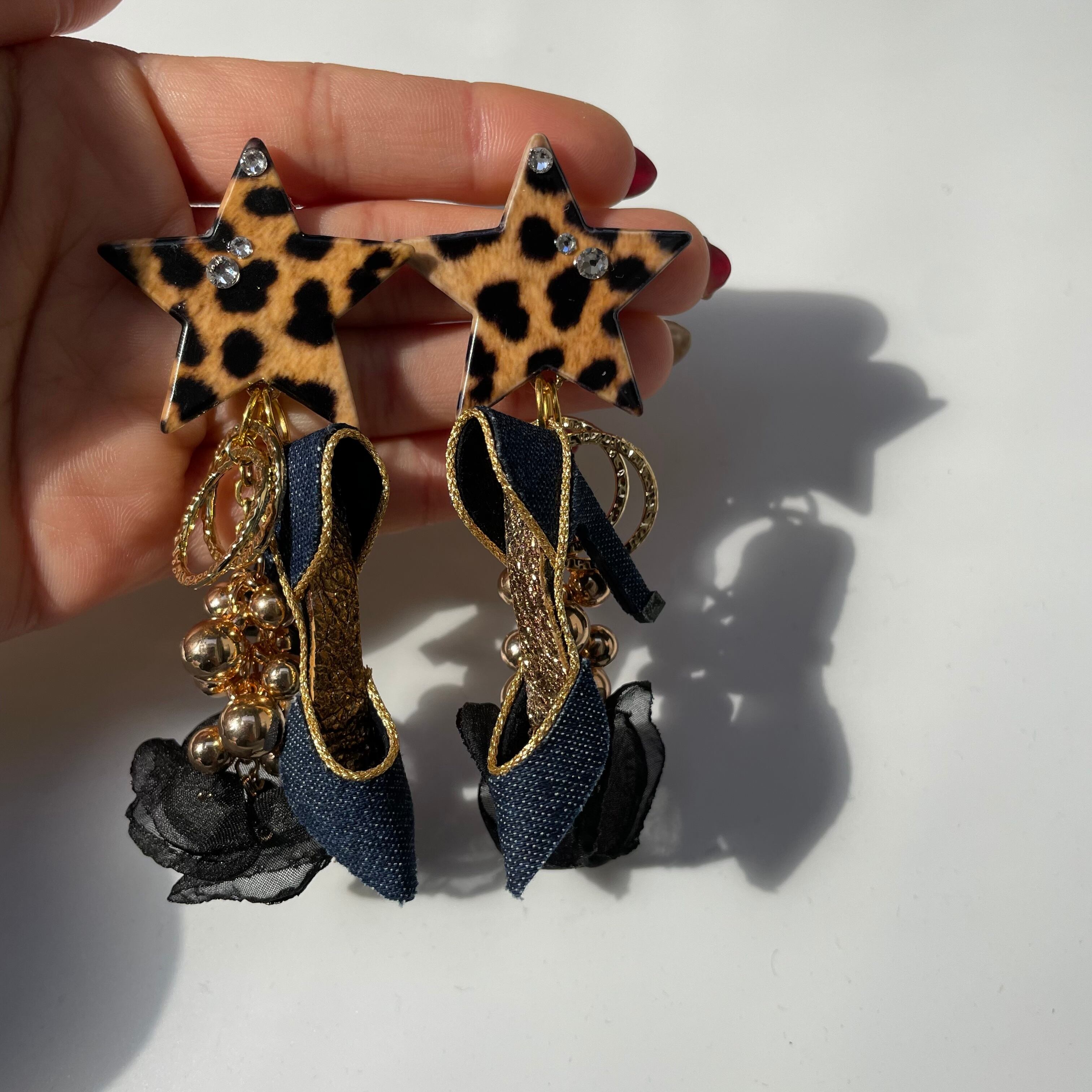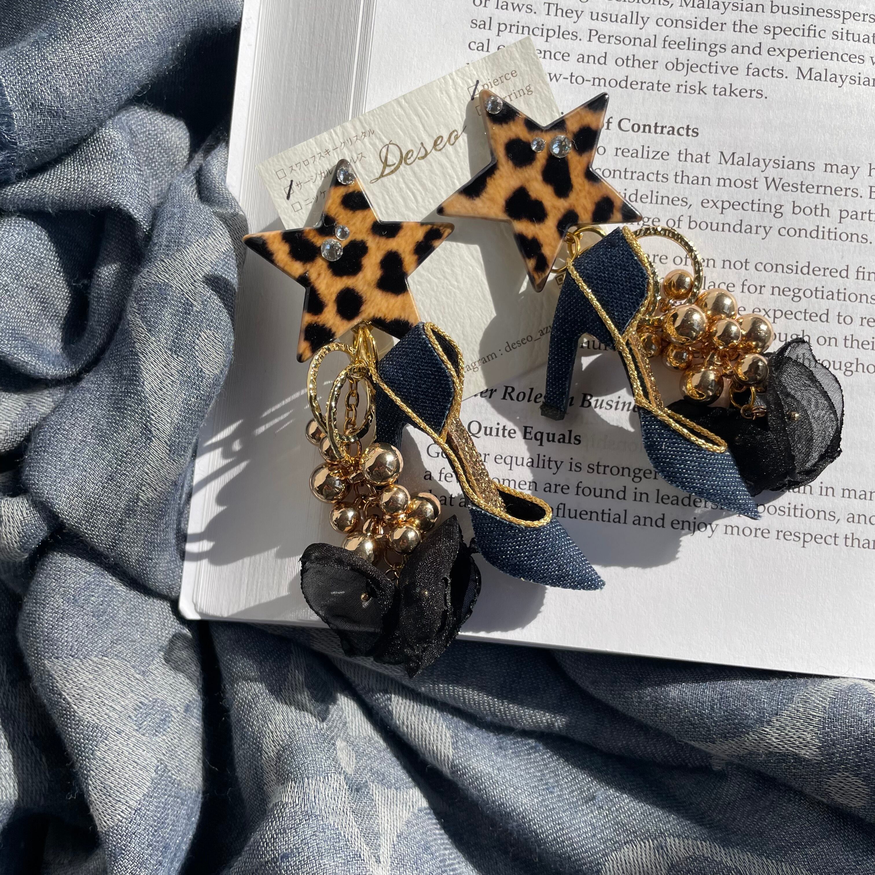 デニムハイヒール❤️星レオパードピアス レオパードイヤリング ハイヒールピアス ハイヒールイヤリング ヒョウ柄ピアス ヒョウ柄イヤリング NO.225