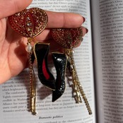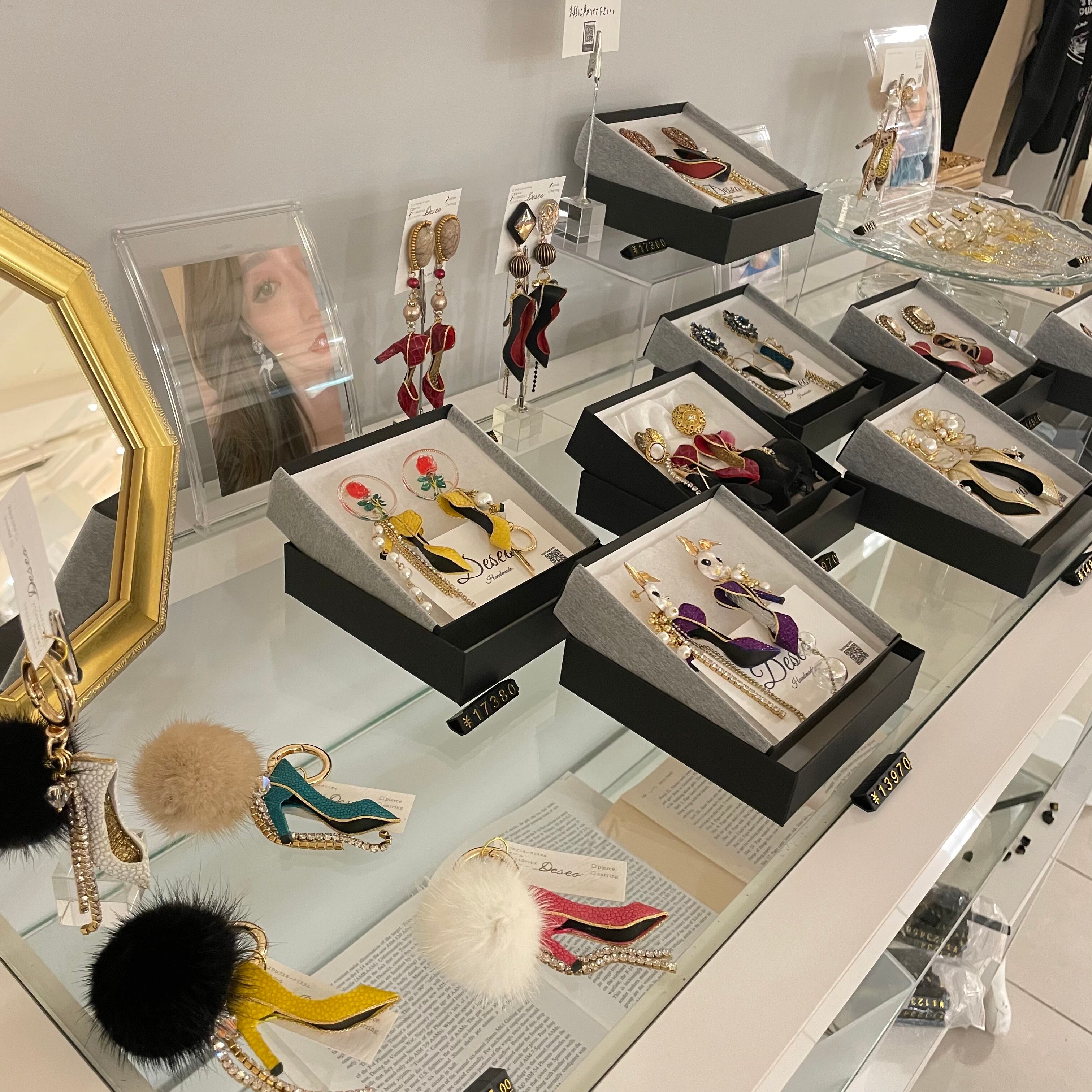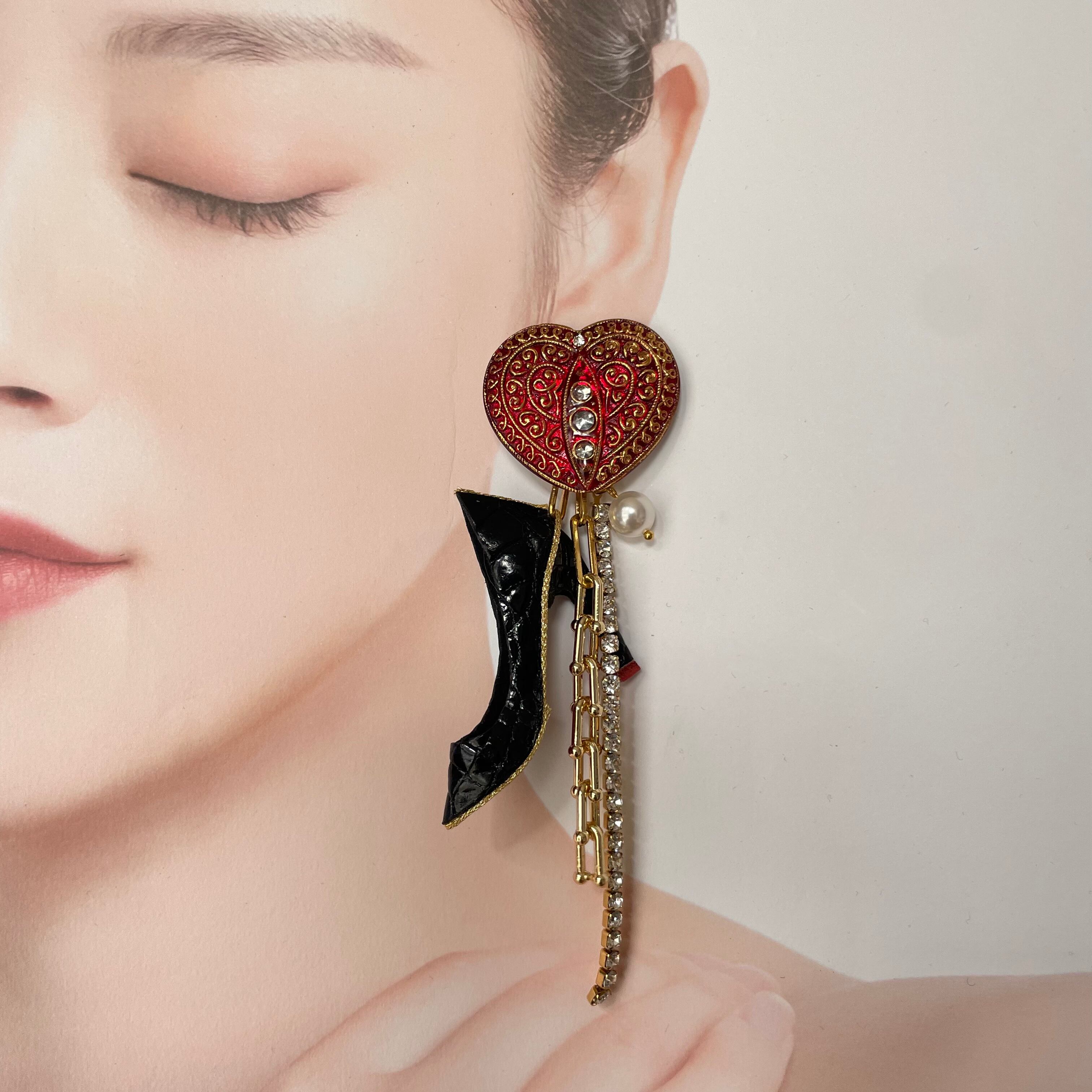 ワニ革 クロコブラックハイヒール❤️希少チェコガラスハートボタン×ルブタンcolorハイヒール✨ハイヒールピアス チェコガラスボタンピアス NO.226