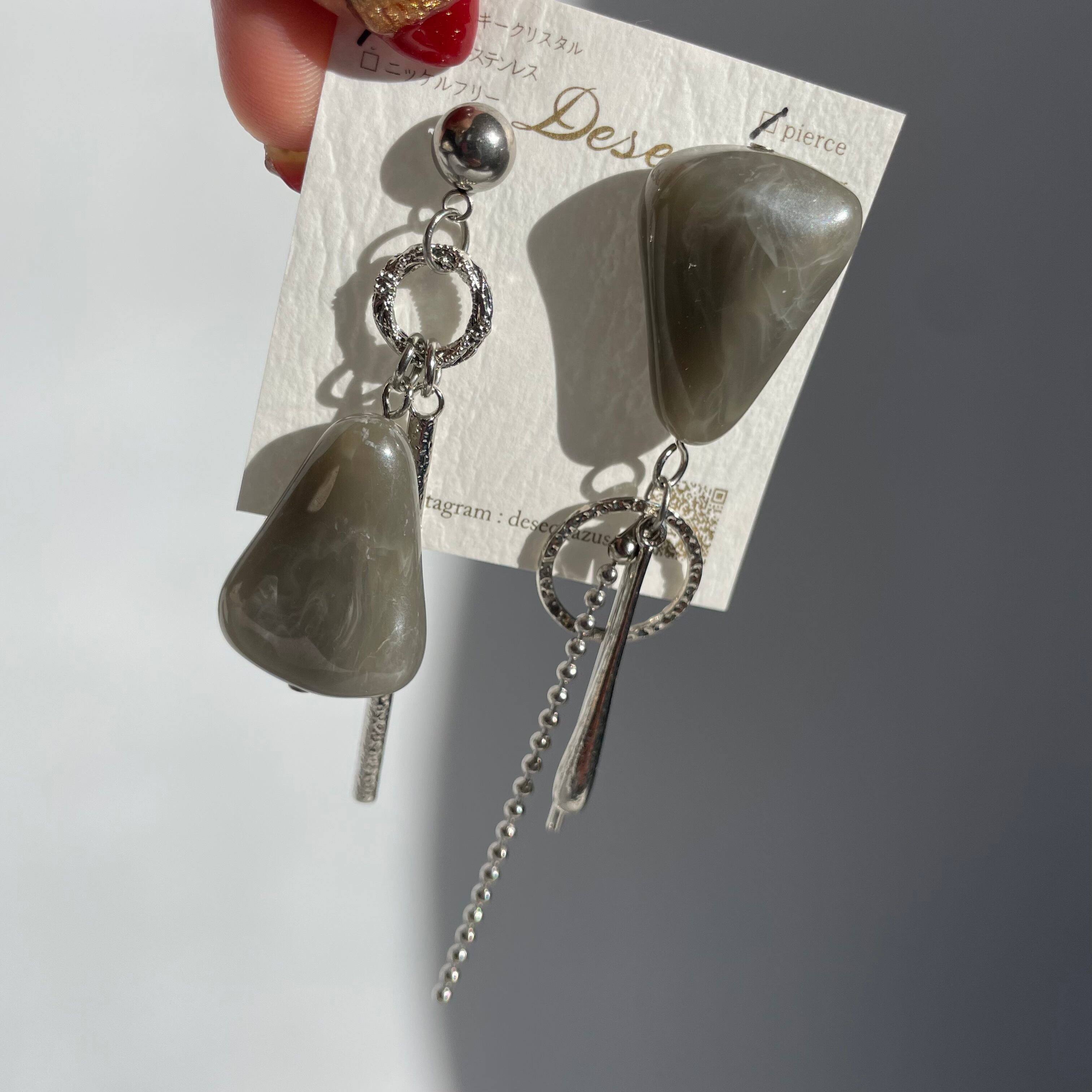 シルバーアシンメトリー★グレー×シルバー アシメピアス アシメイヤリング NO.227