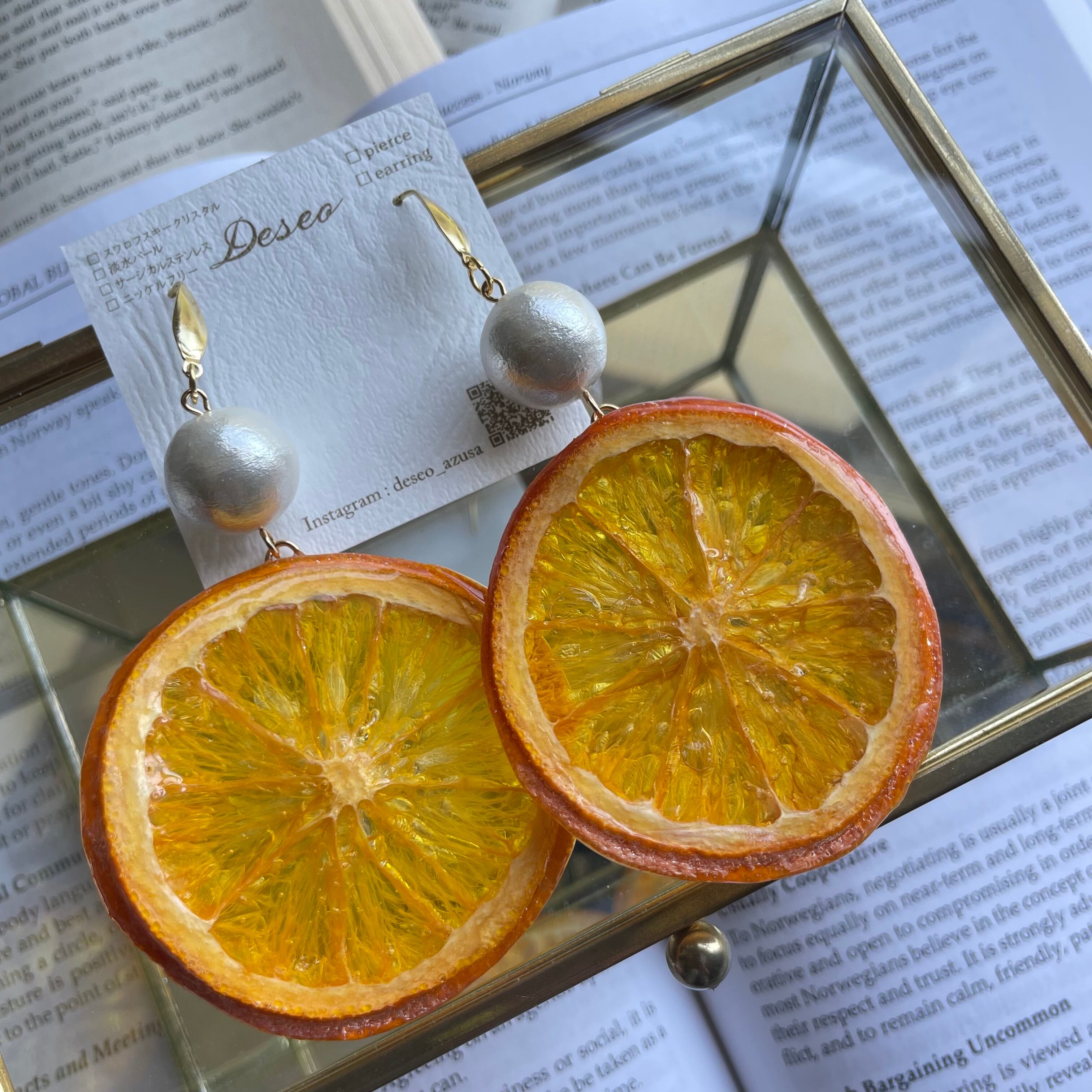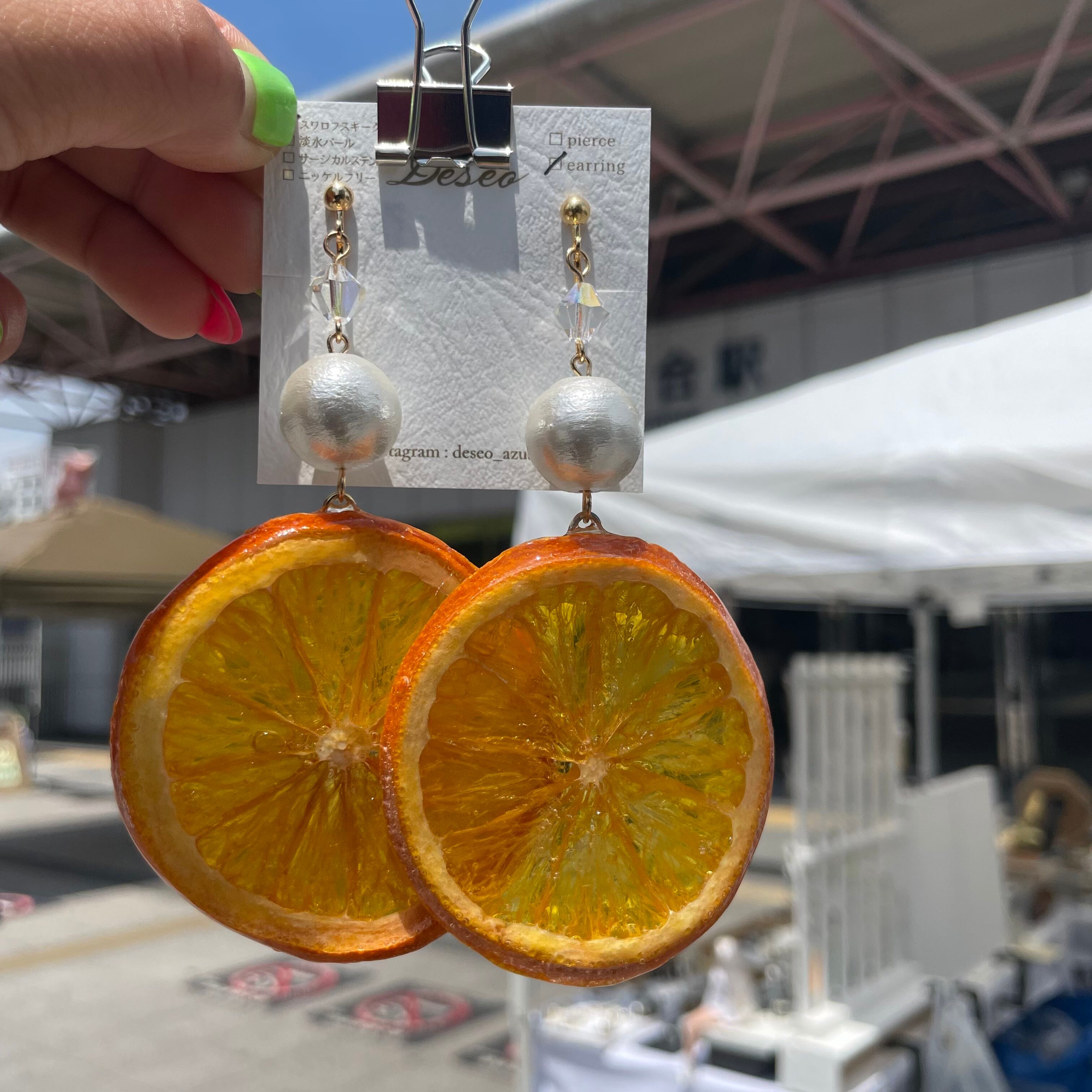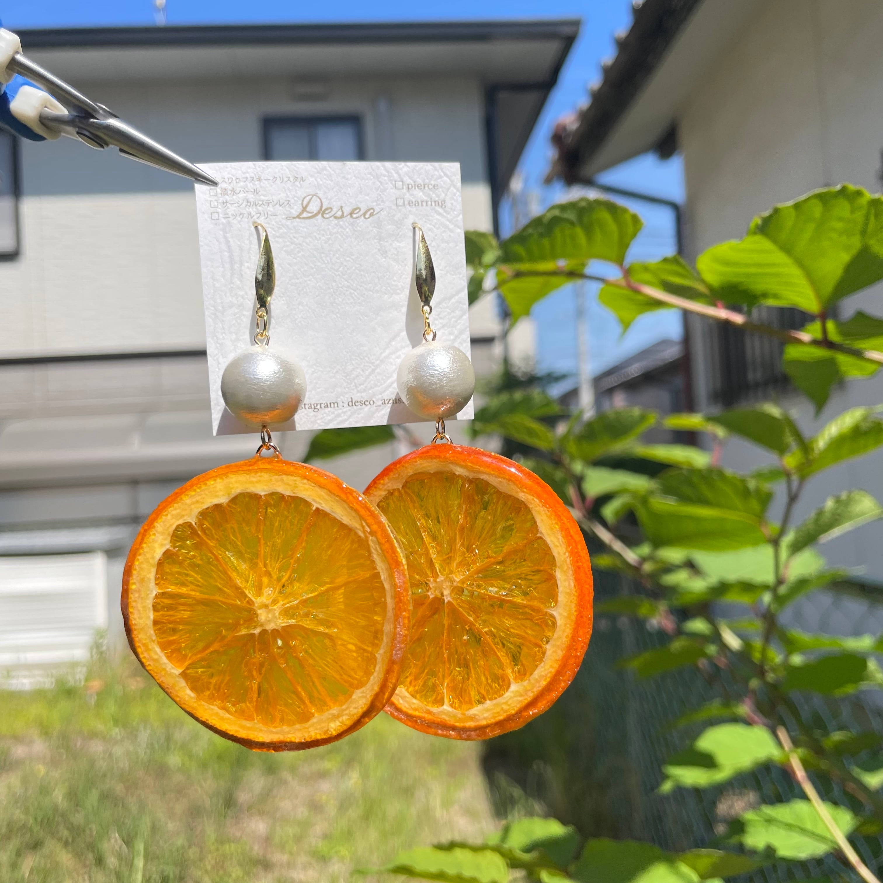 Orange❤️本物のオレンジ☆輪切りオレンジピアス オレンジイヤリング NO.267