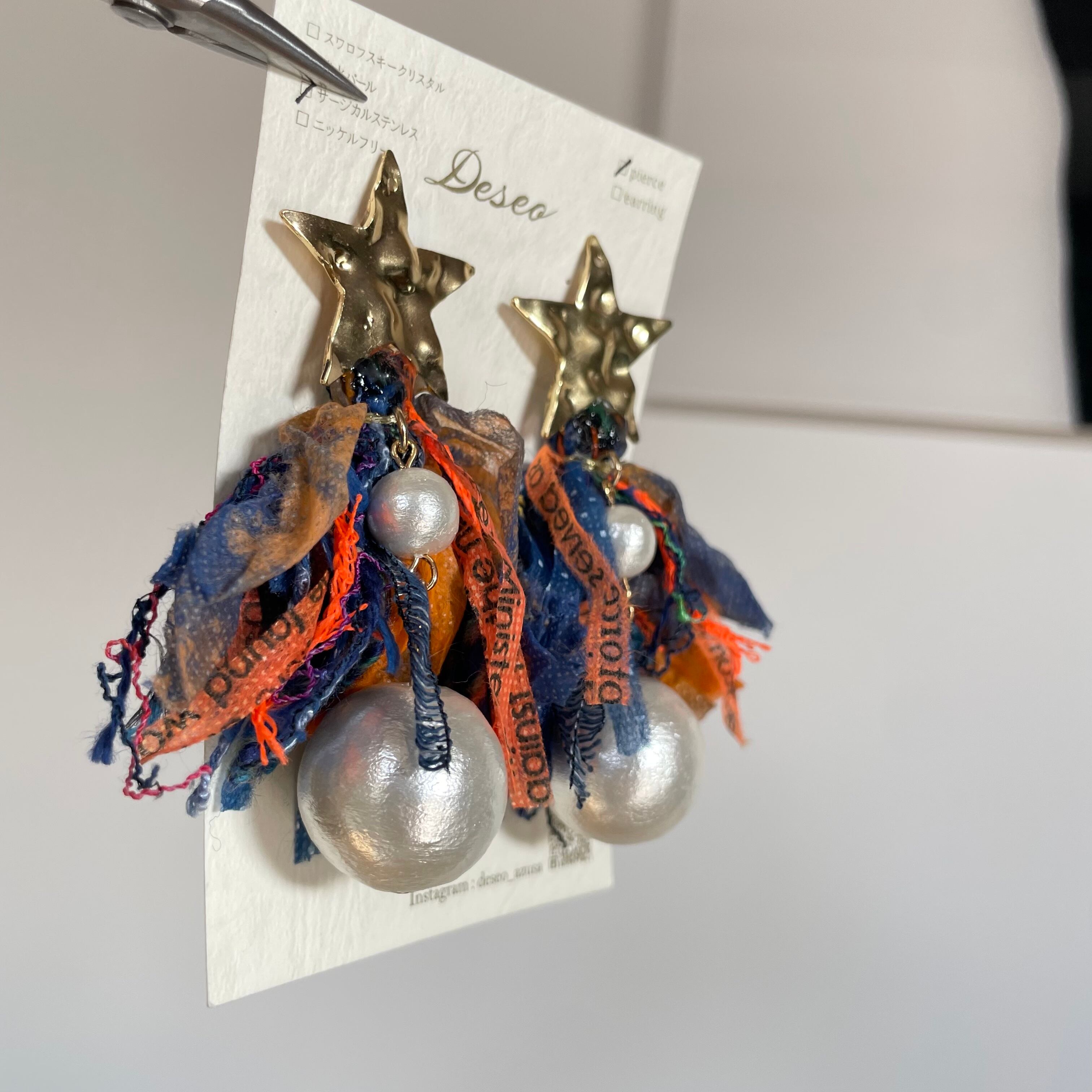 Orange Moja★星ピアス 星イヤリング タッセルピアス タッセルイヤリング NO.273