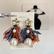 皆様の大好きな星に、ボリューム満点のもじゃもじゃタッセルを合わせたとっても可愛い耳アクセサリー