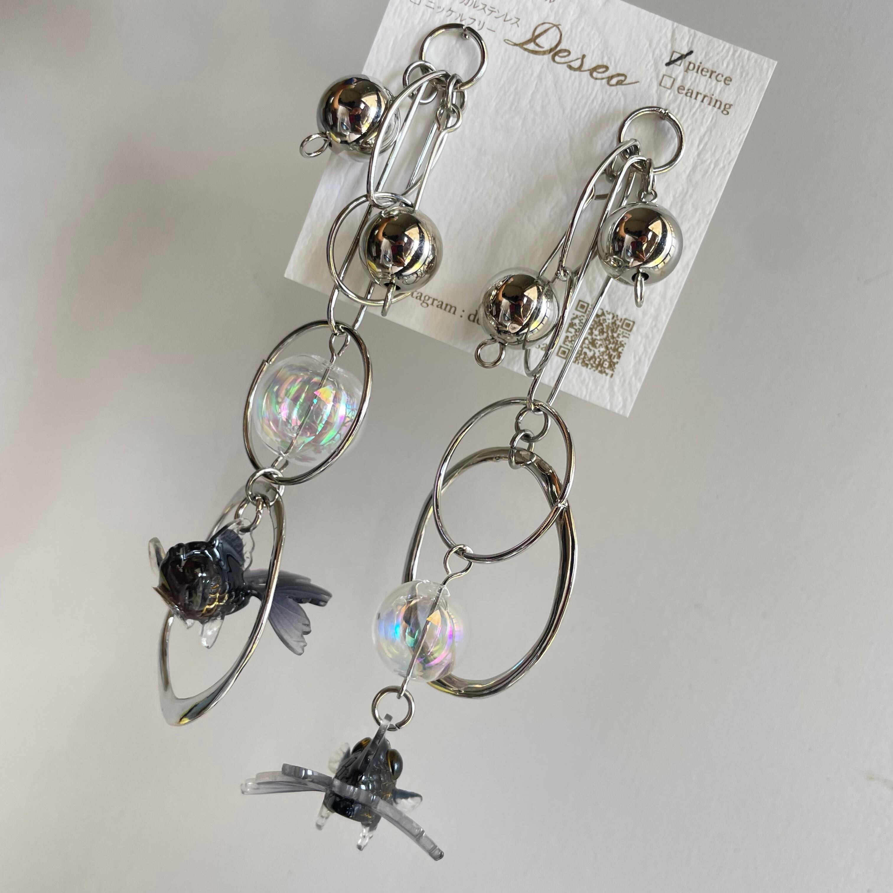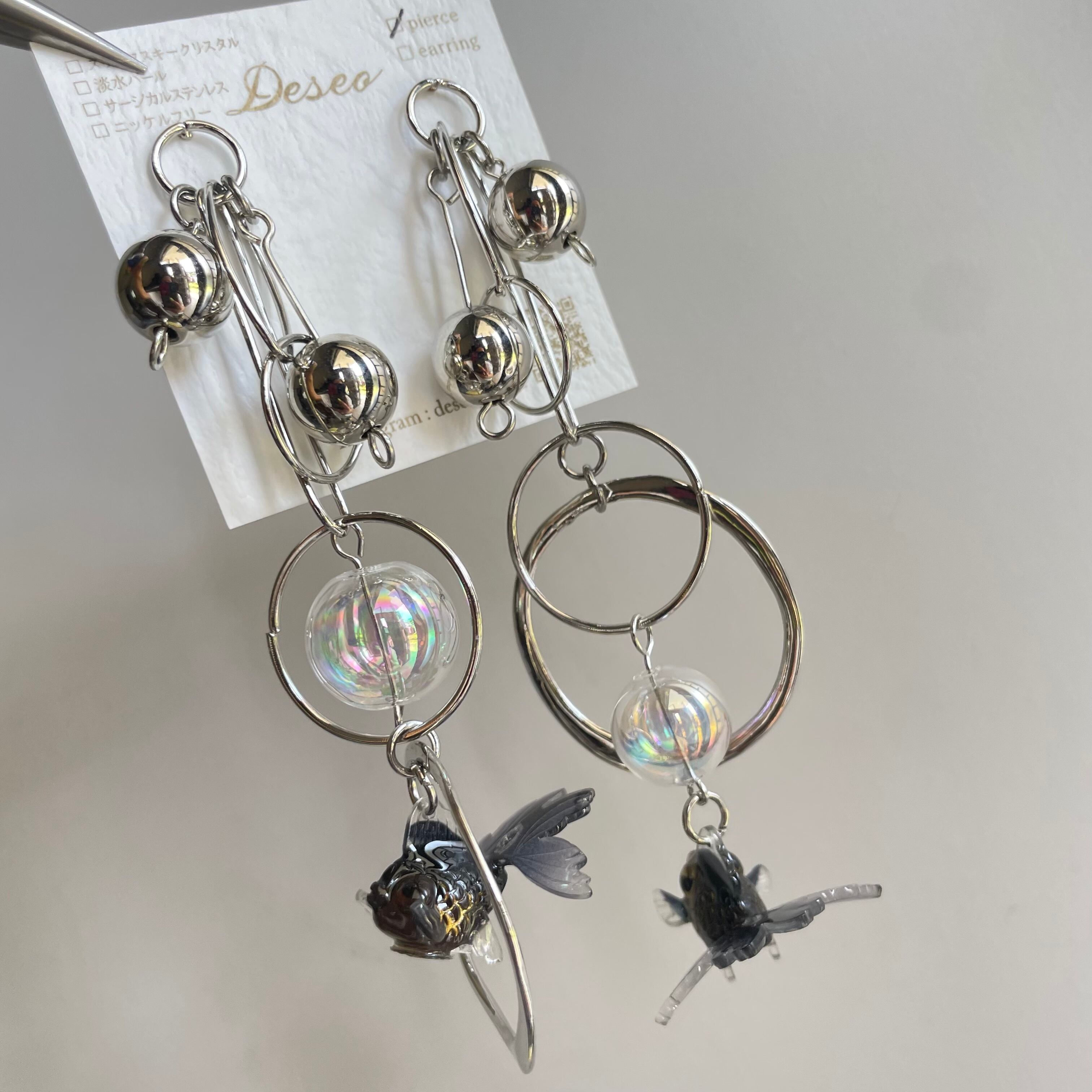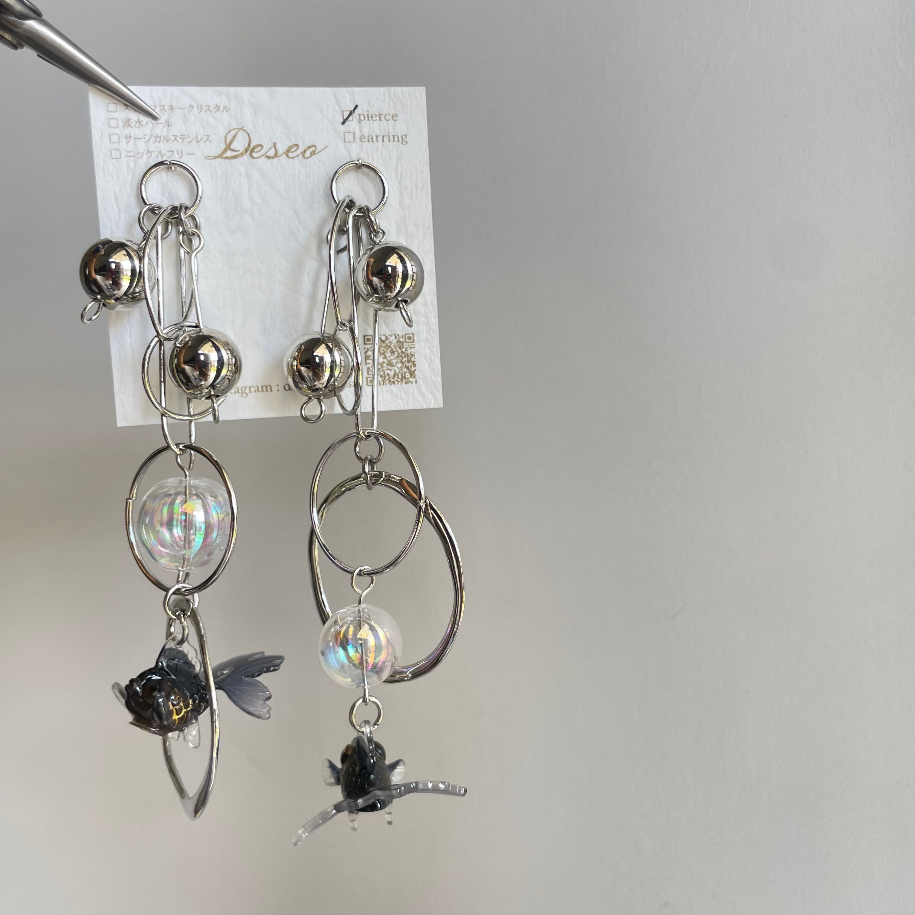 金魚✨シルバー×ブラック金魚★金魚ピアス NO.281