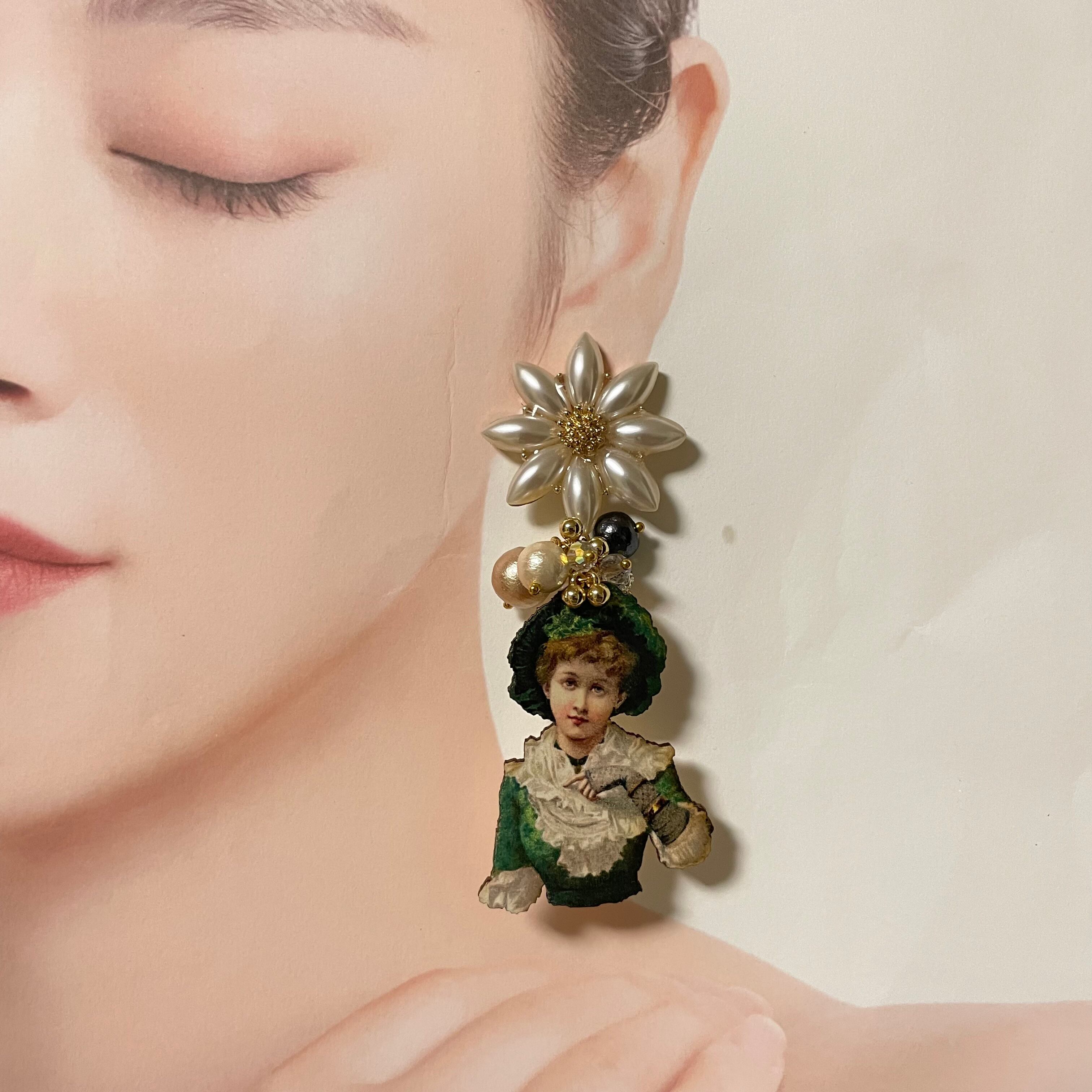 ヴィンテージボタンやスワロフスキービーズを合わせてます✨