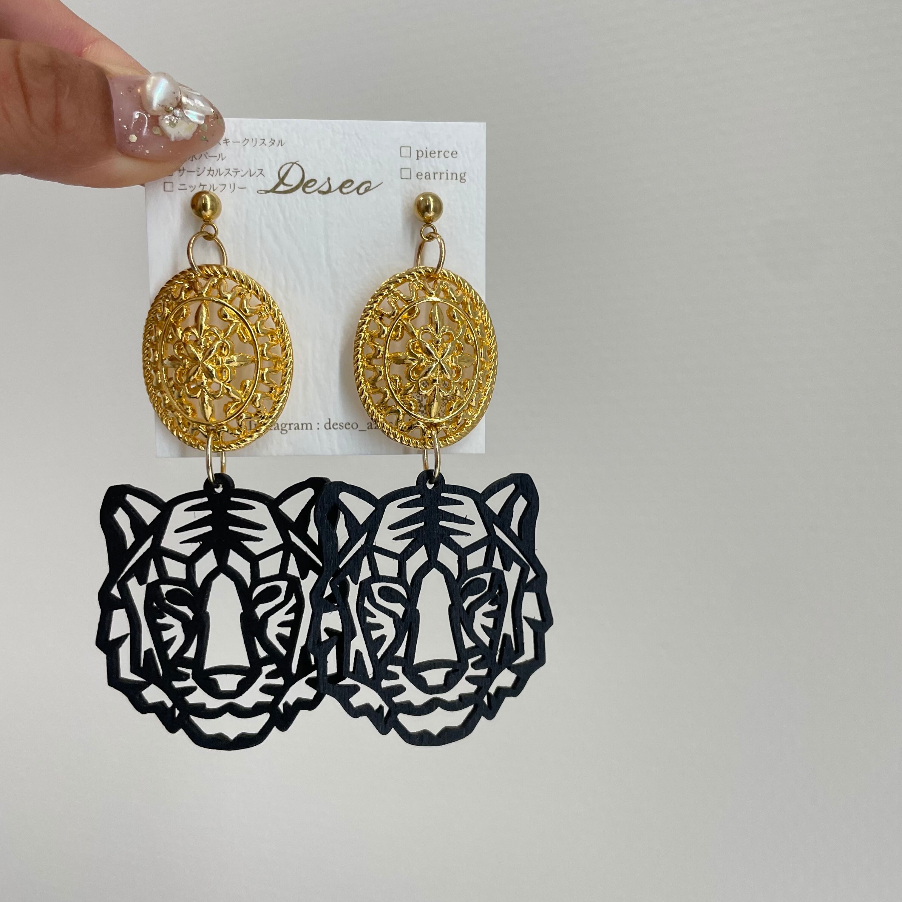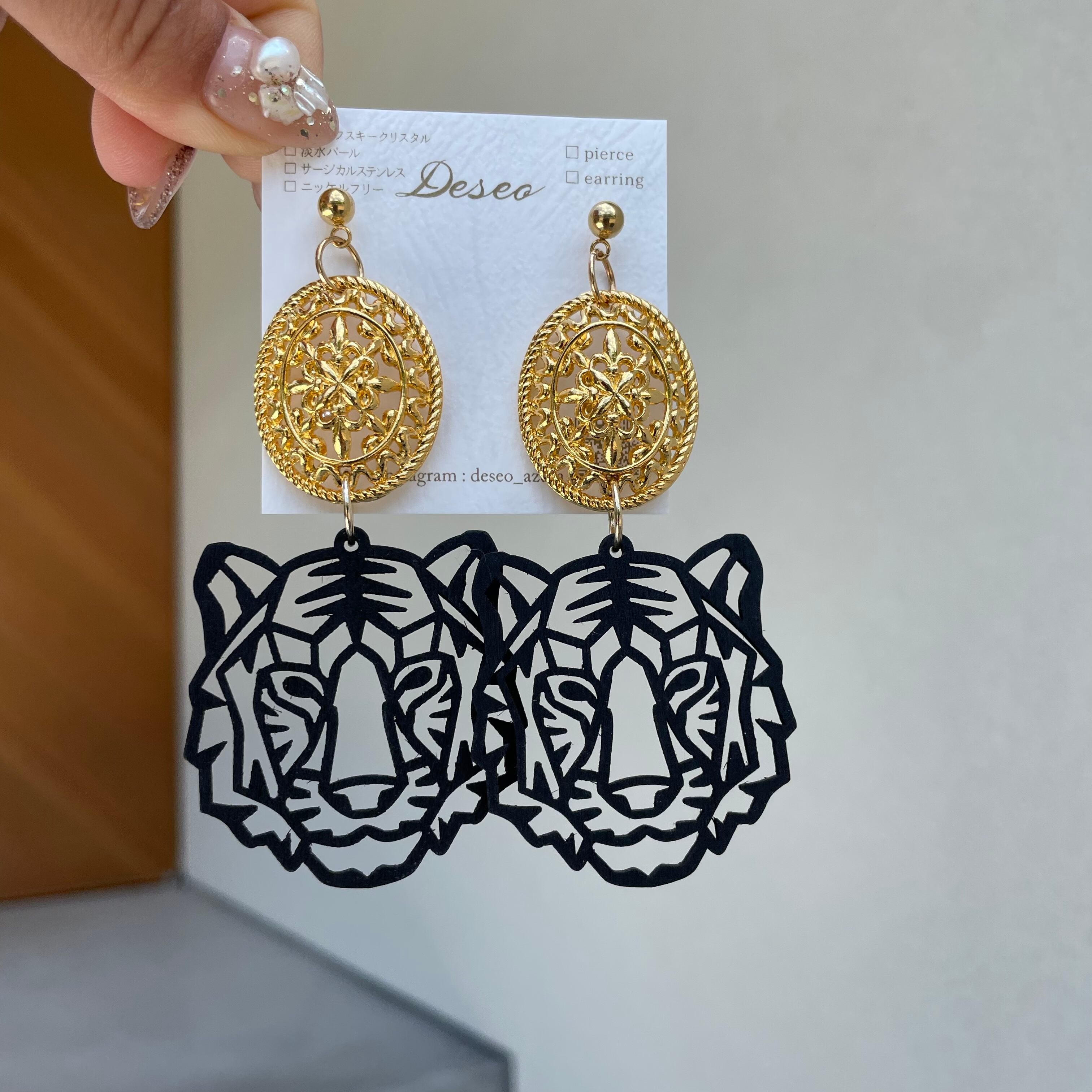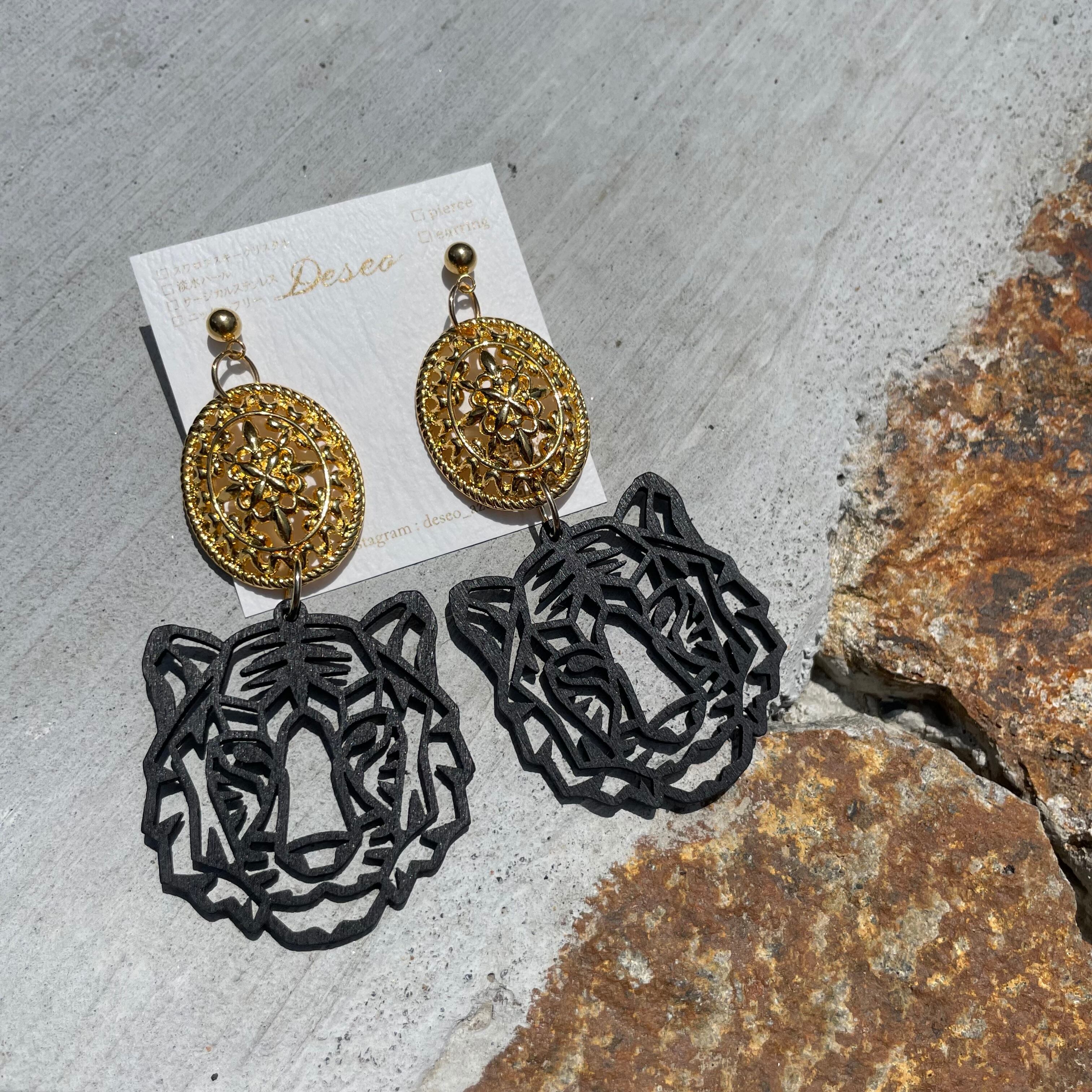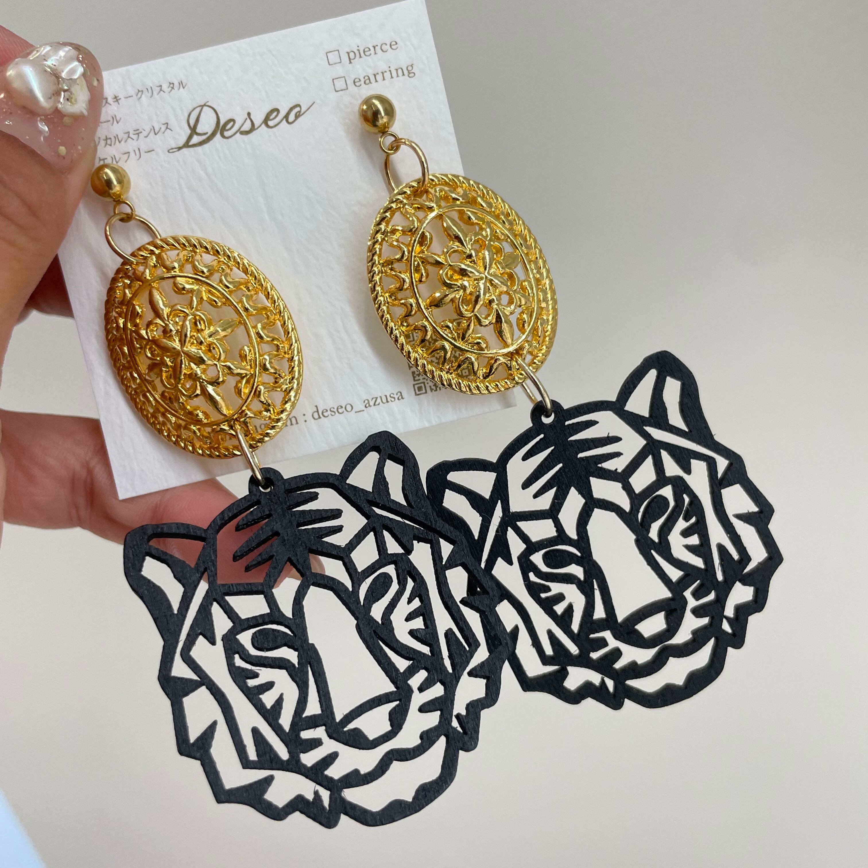 TORA★ヴィンテージボタン×虎✨虎ピアス 虎イヤリング NO.311