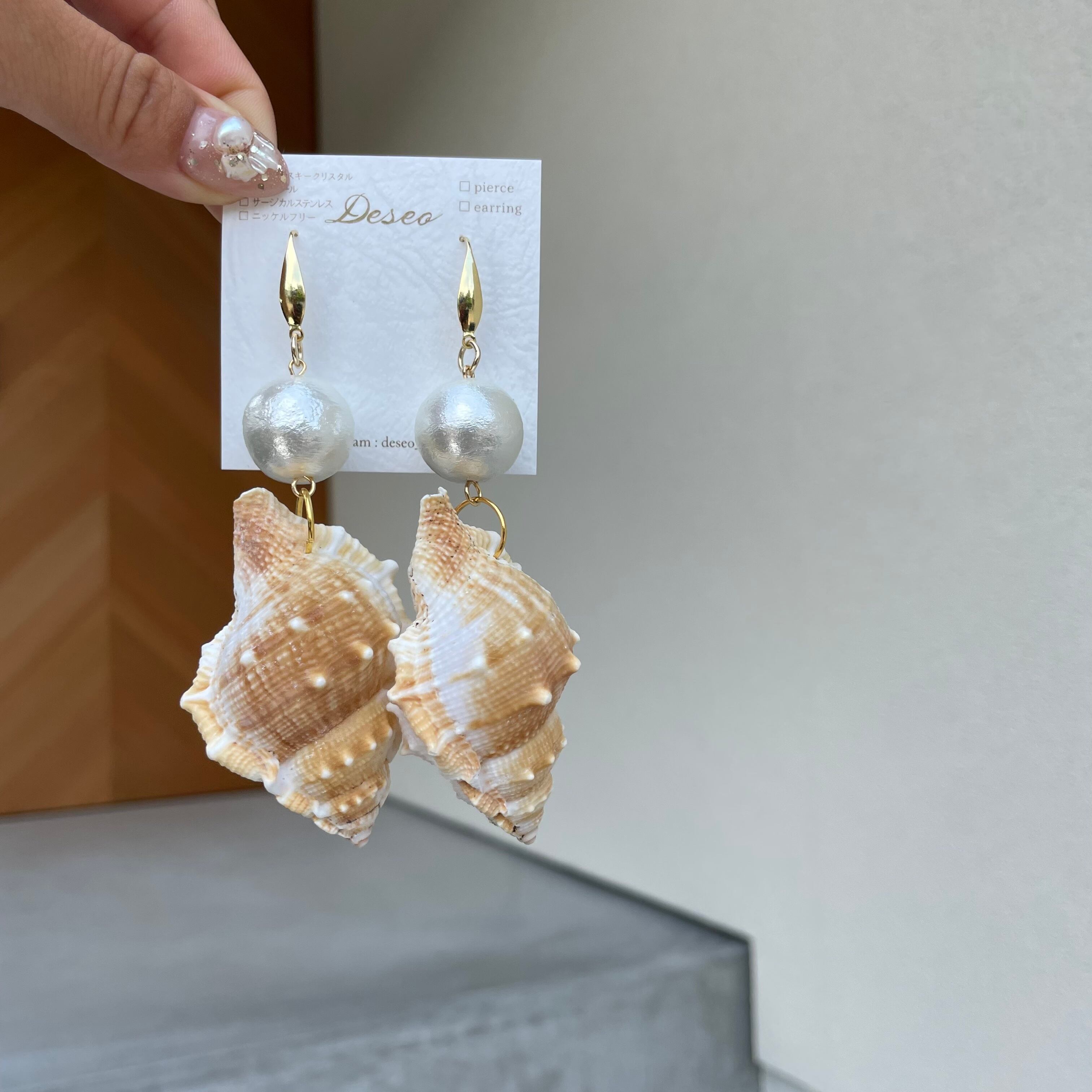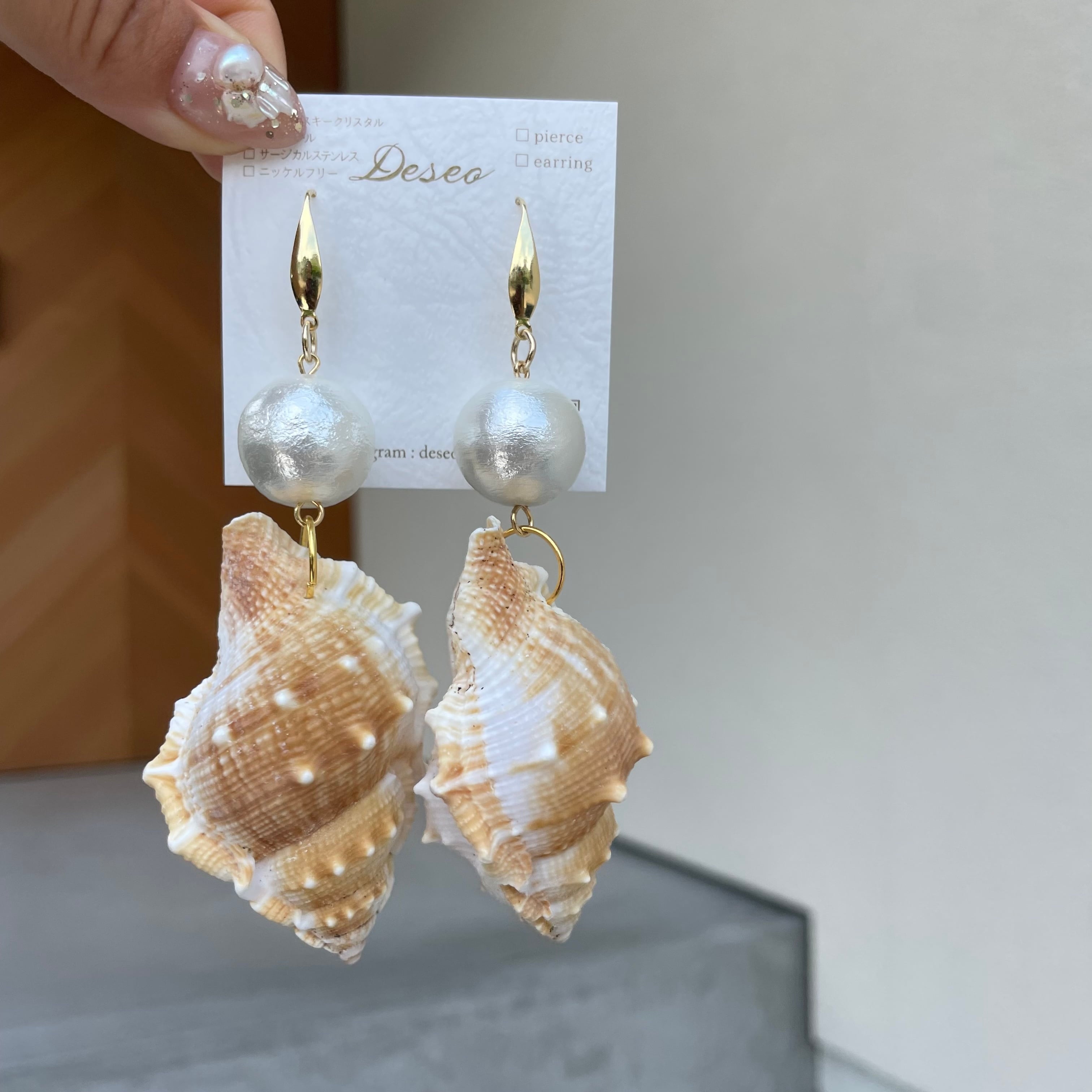 輝く海へ☆ver.②✨本物の貝殻☆貝殻ピアス 貝殻イヤリング シェルピアス シェルイヤリング NO.321