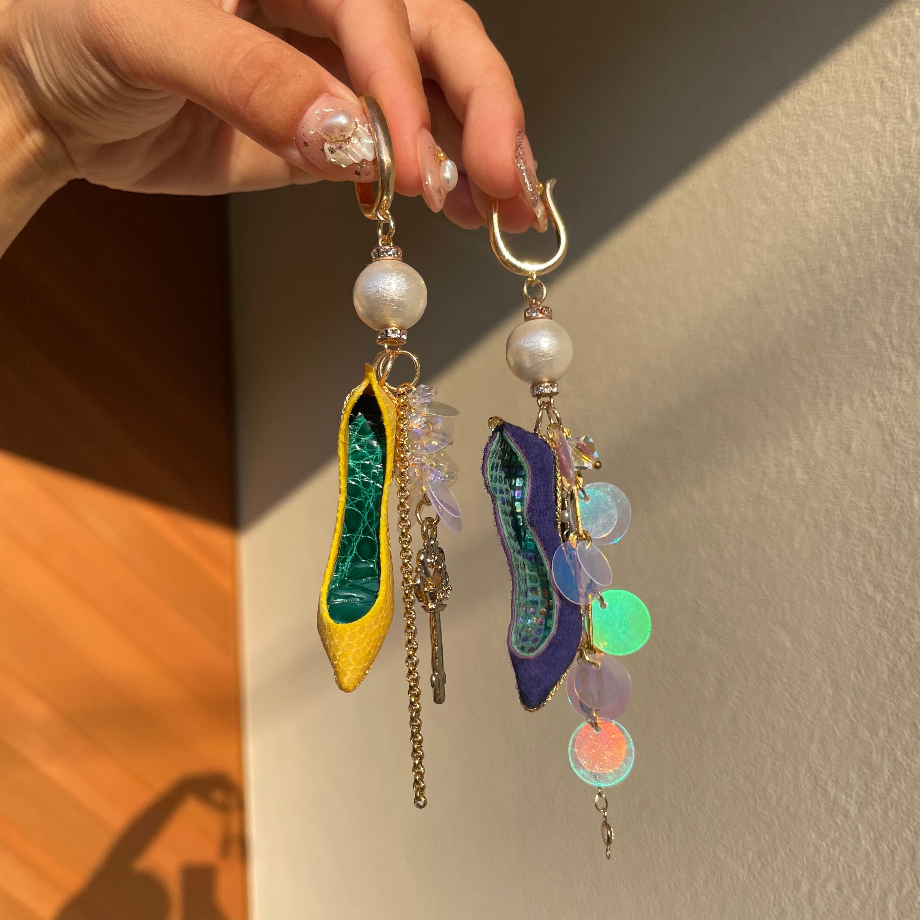 ハイヒールイヤーカフ❤️エイ革イエロー×インソールワニ革クロコ✨NO.323