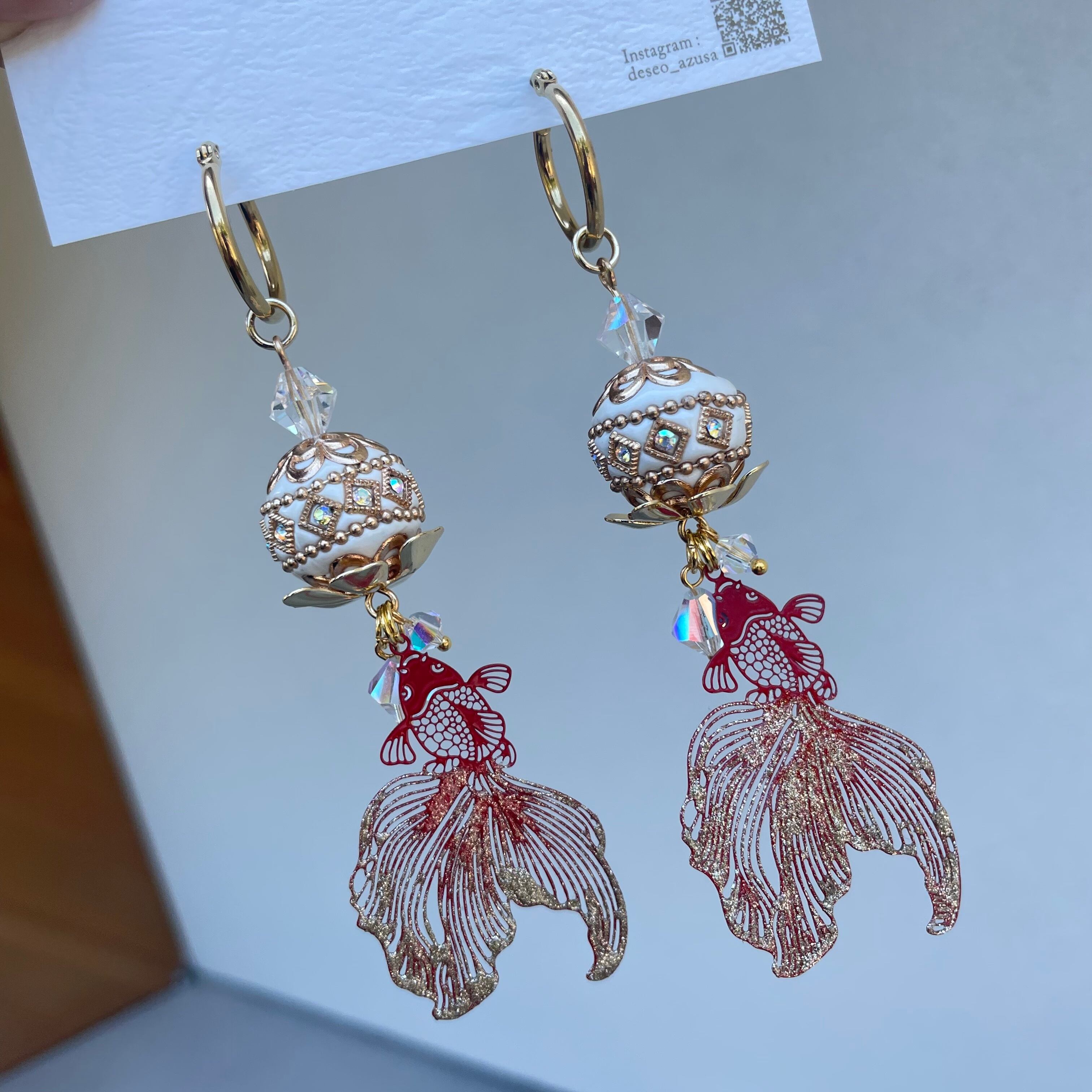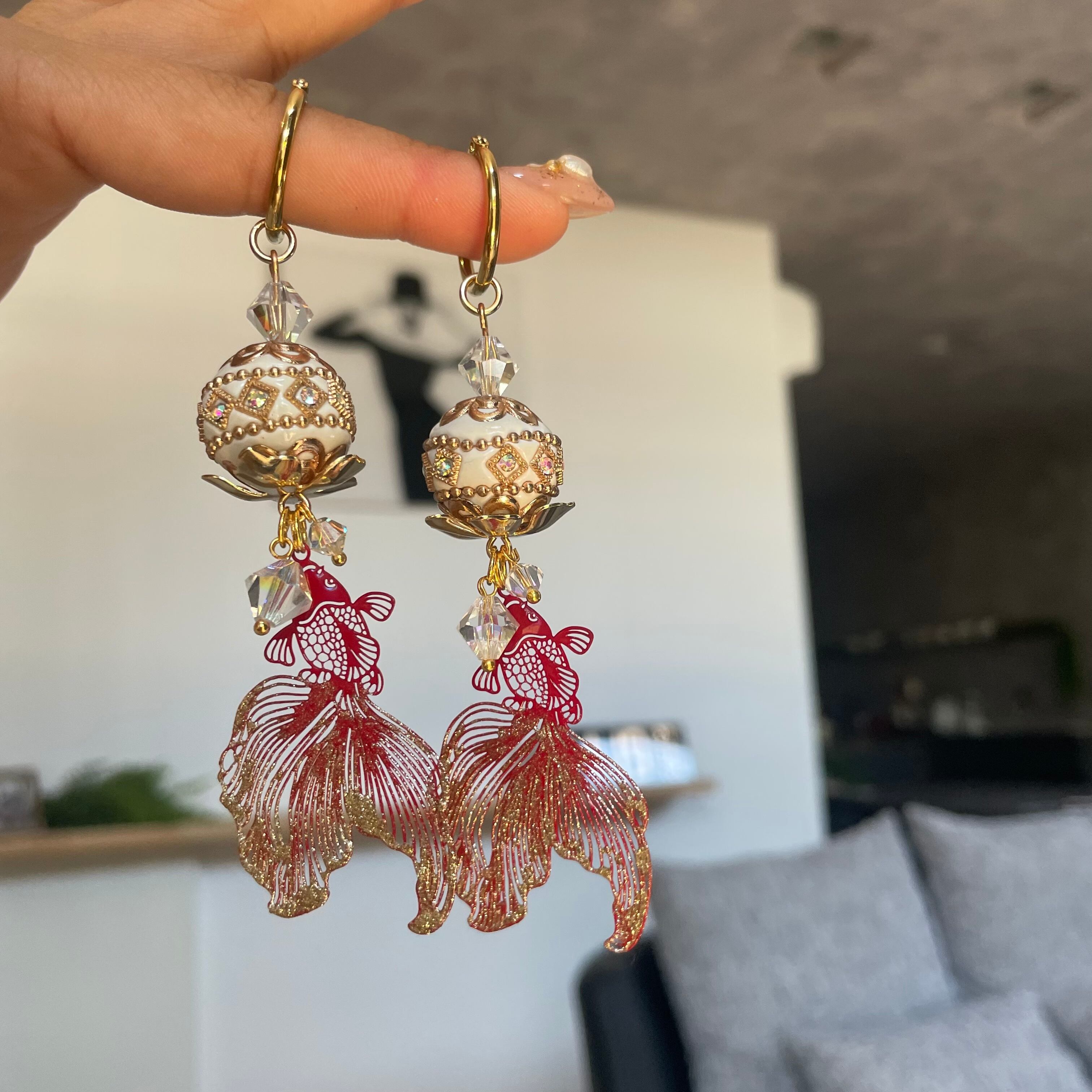ペイントを施した金魚にインドネシアのエキゾチックなビーズを使用したこちら