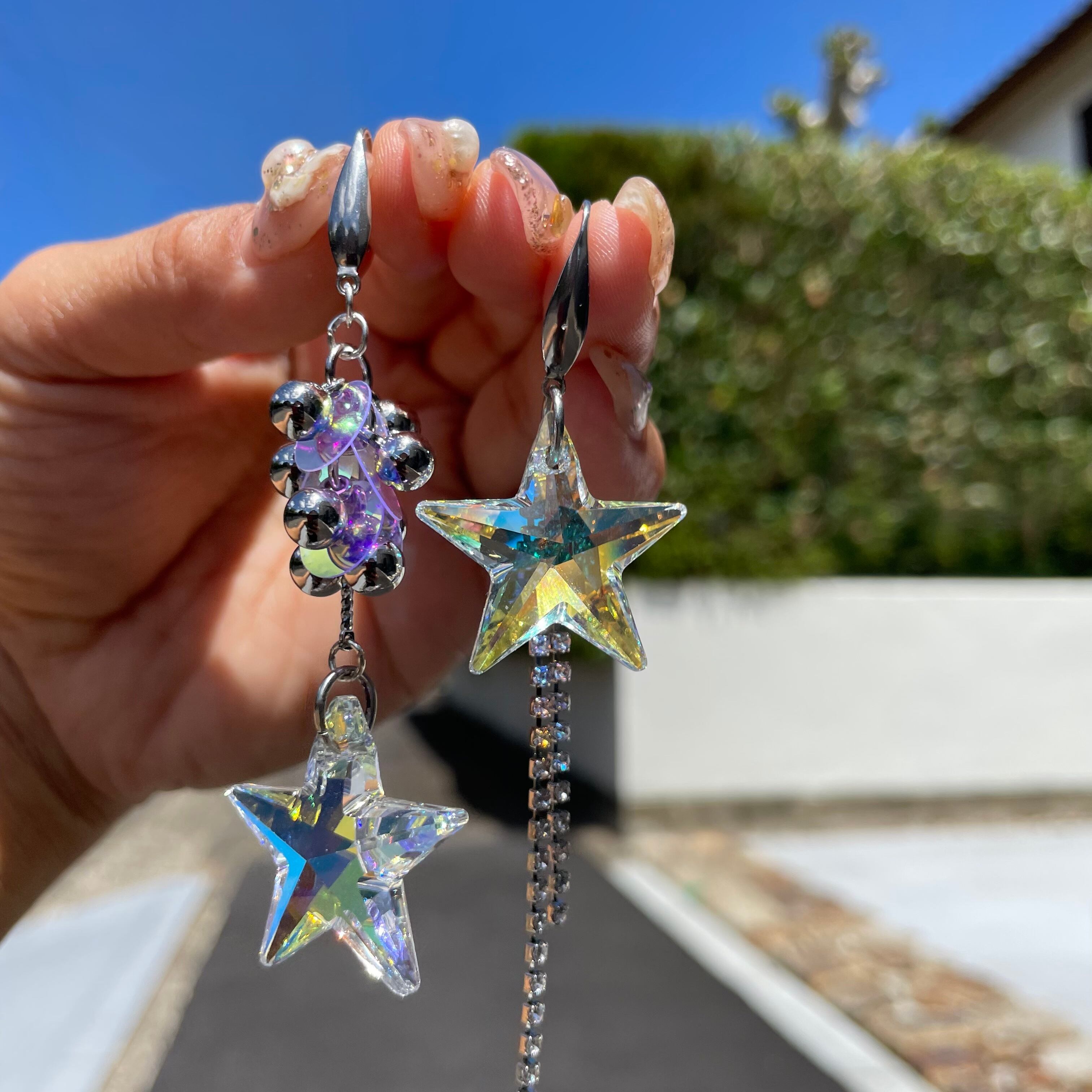 BIG STAR☆スワロフスキー✨星ピアス 星イヤリング アシンメトリーピアス アシンメトリーイヤリング NO.330