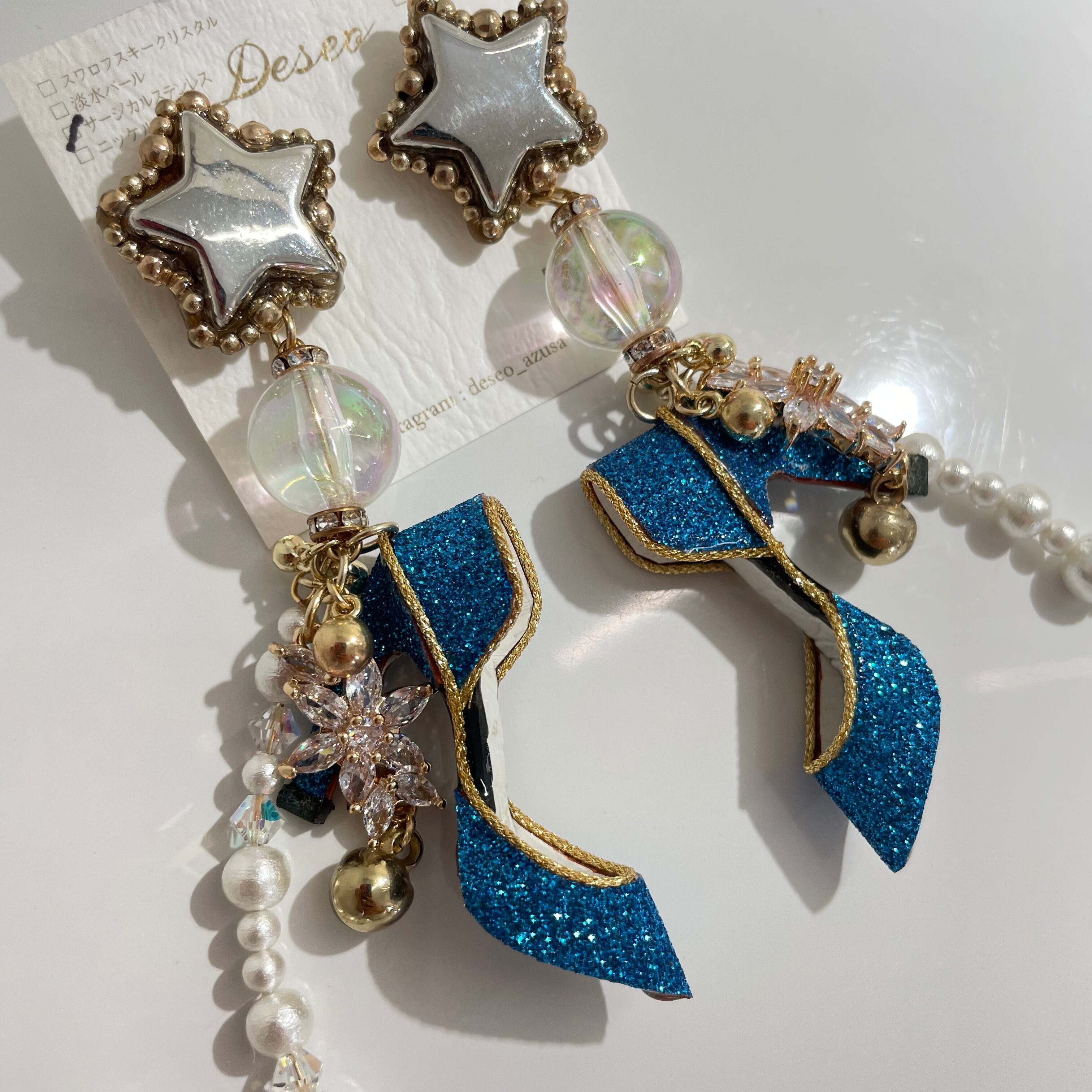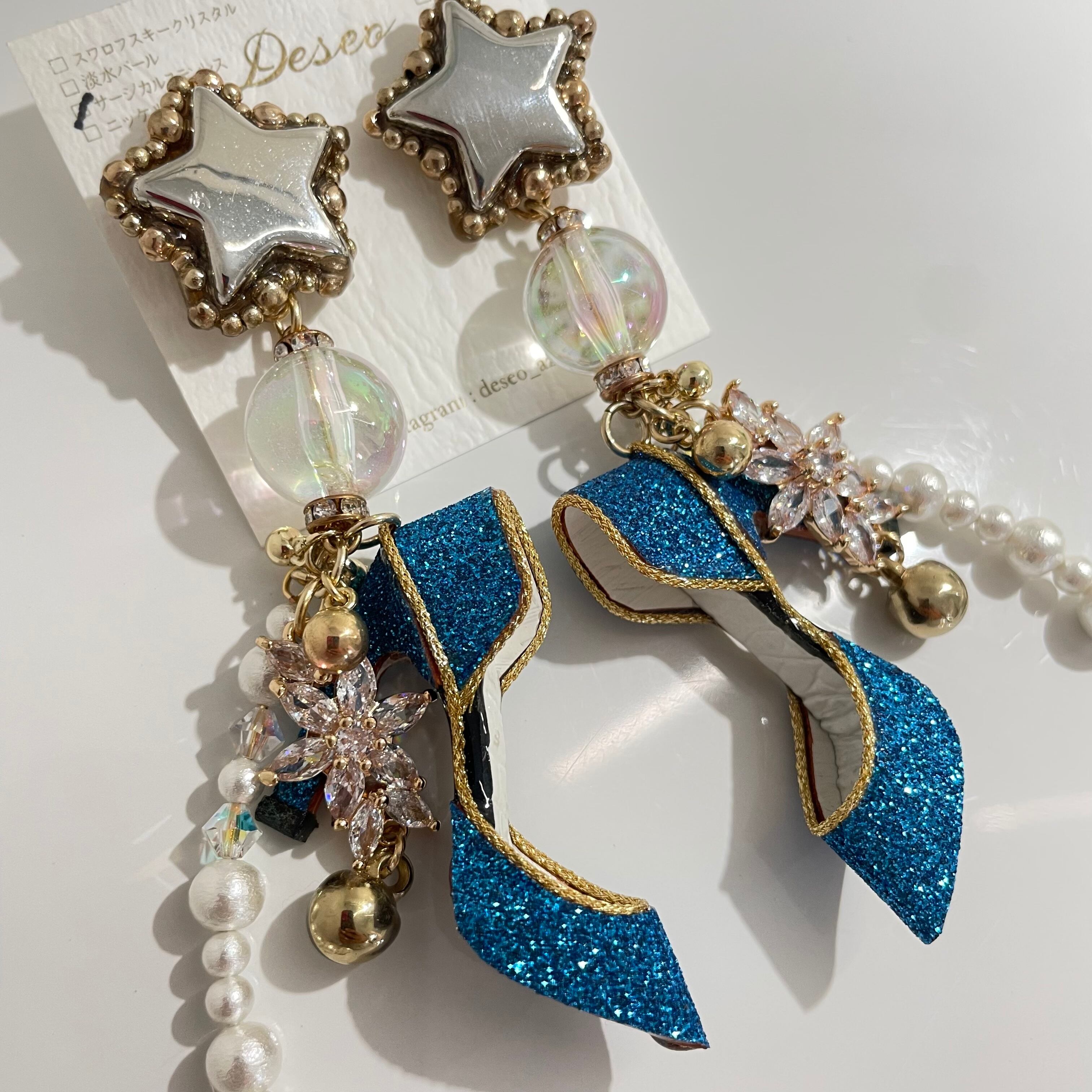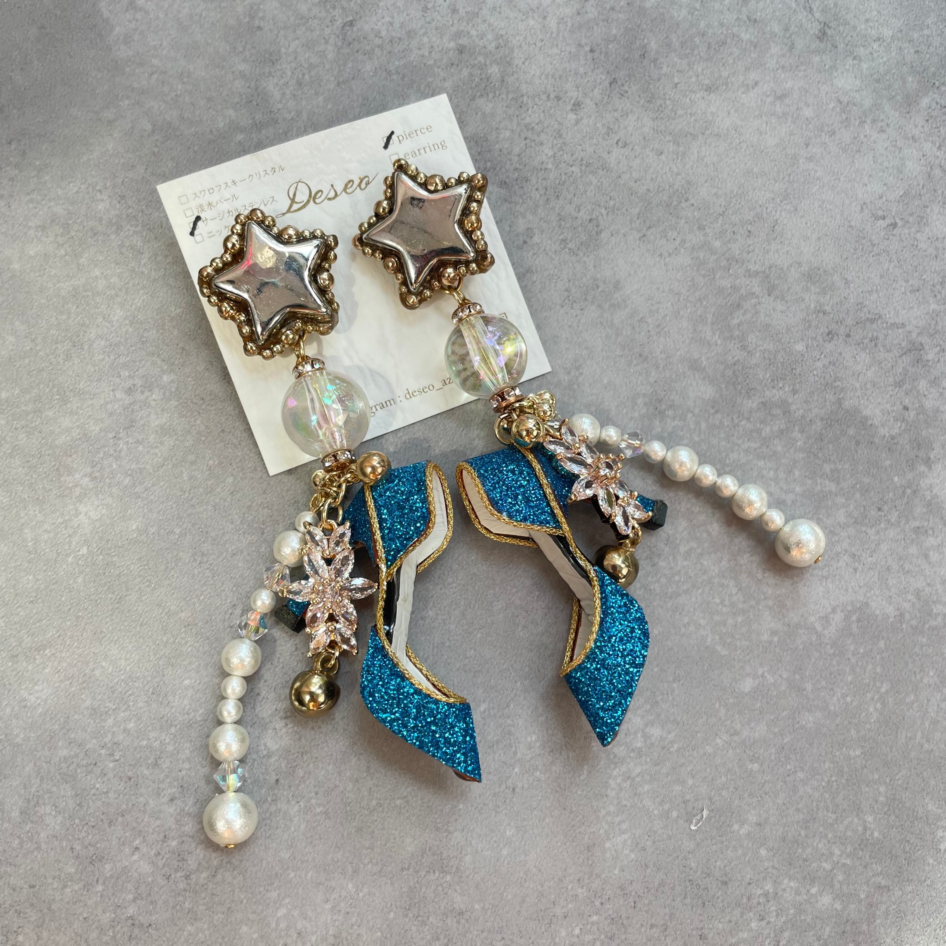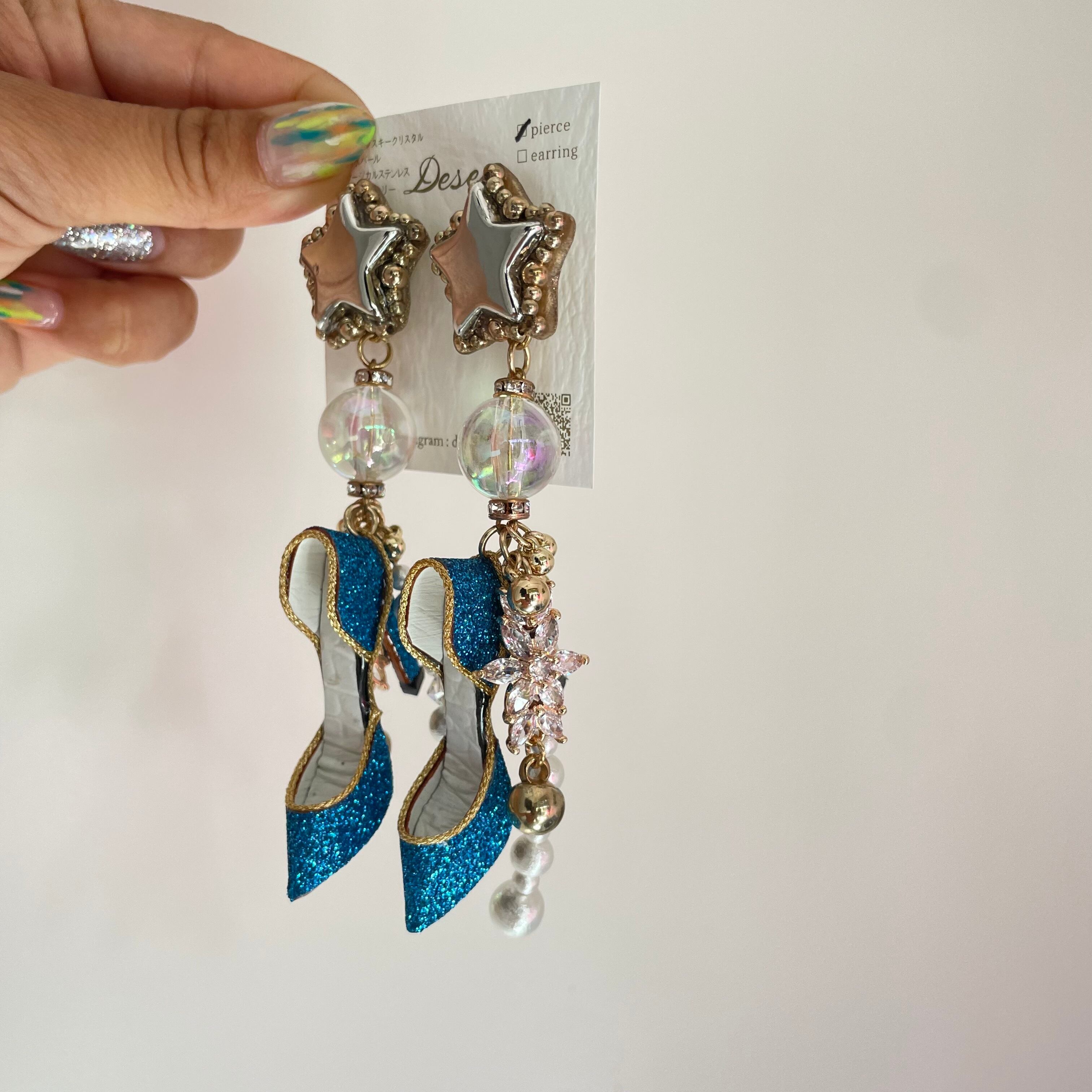 水色ラメハイヒール❤️POPシンデレラ★ハイヒールピアス ハイヒールイヤリング NO.354