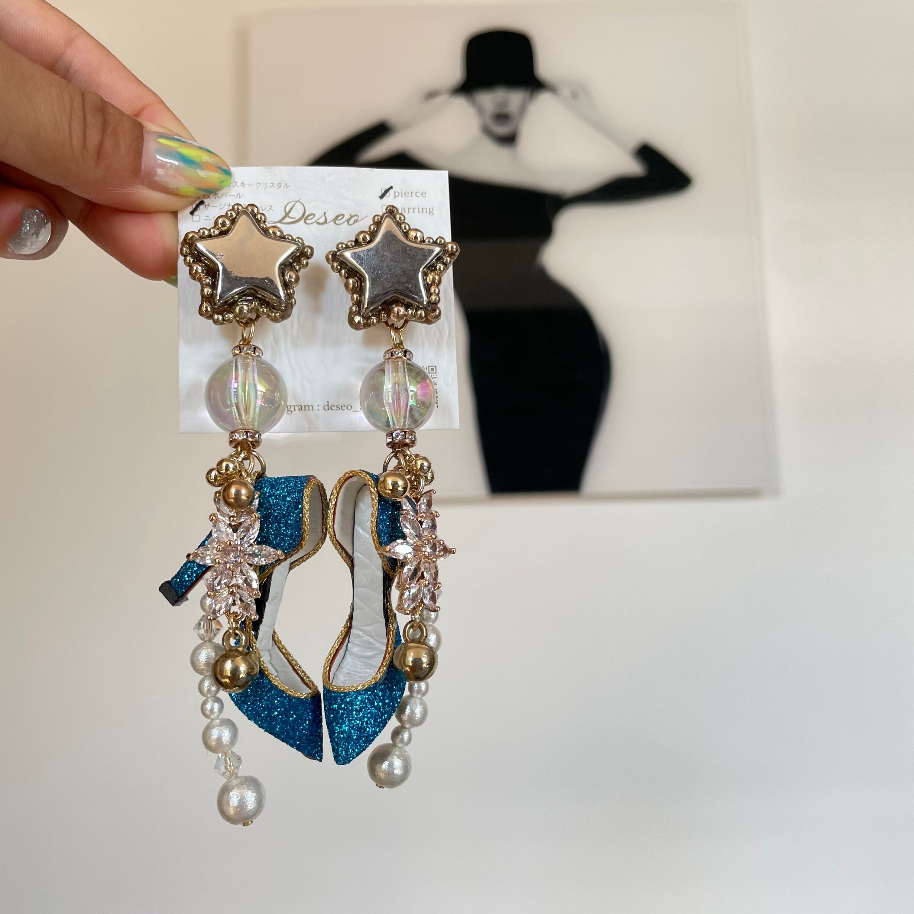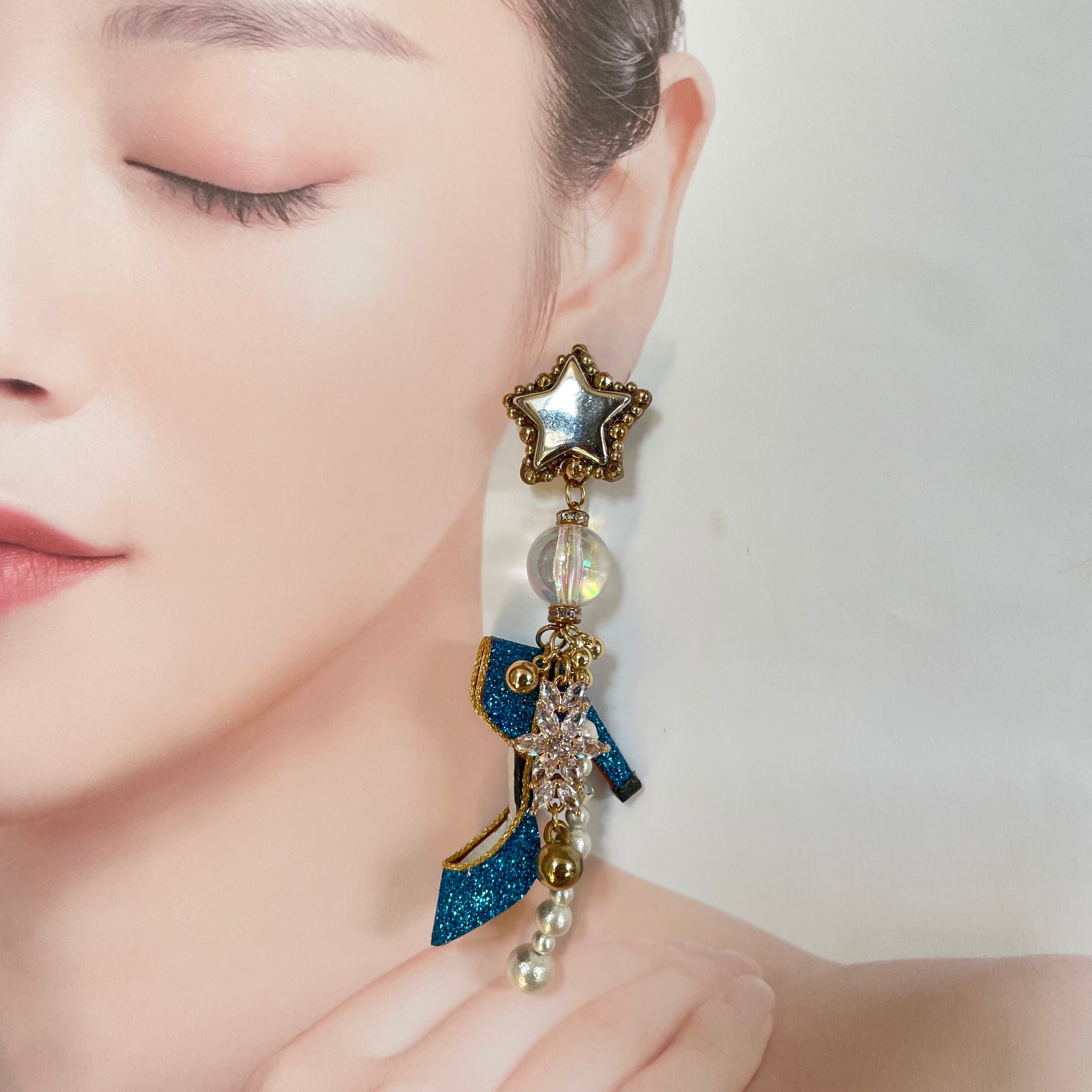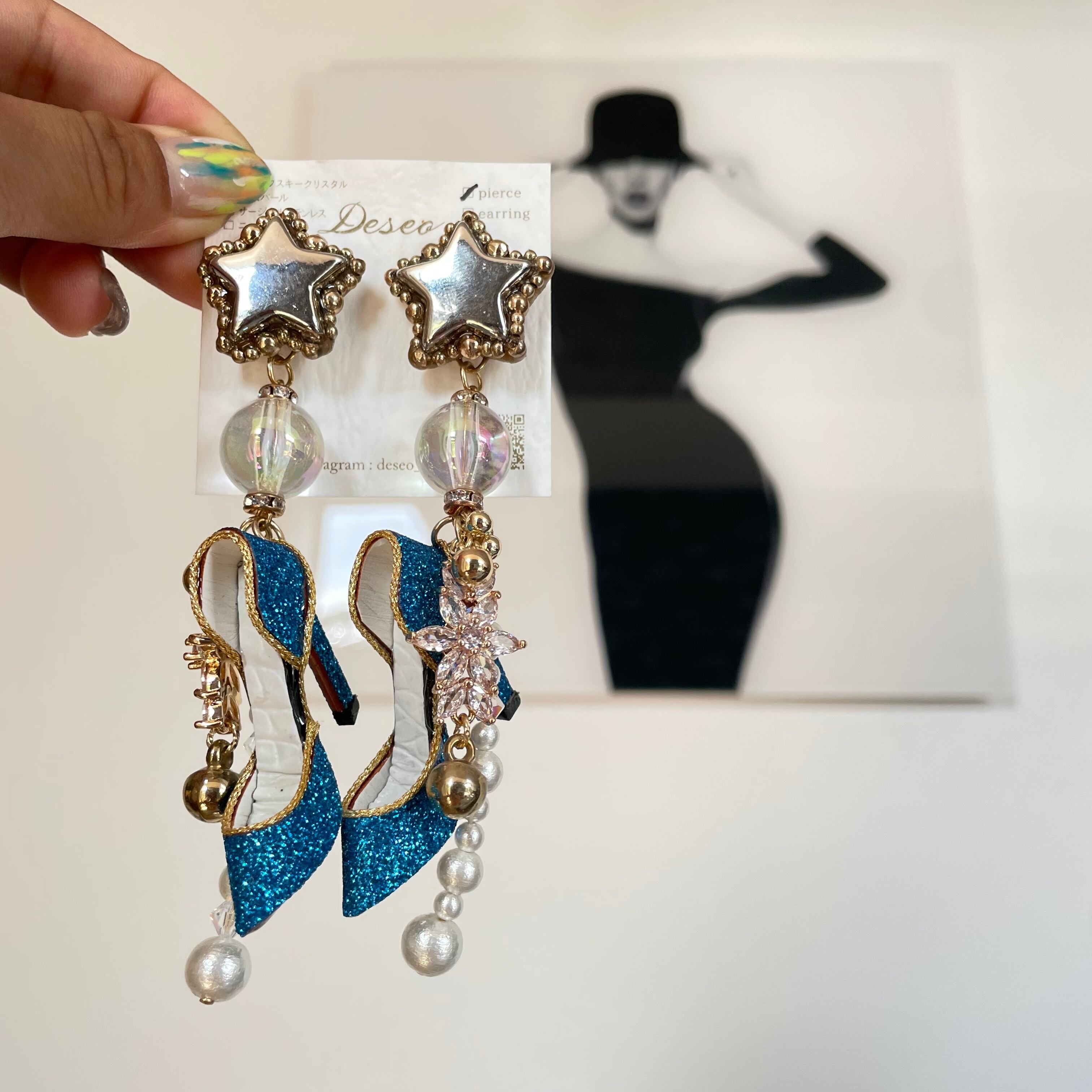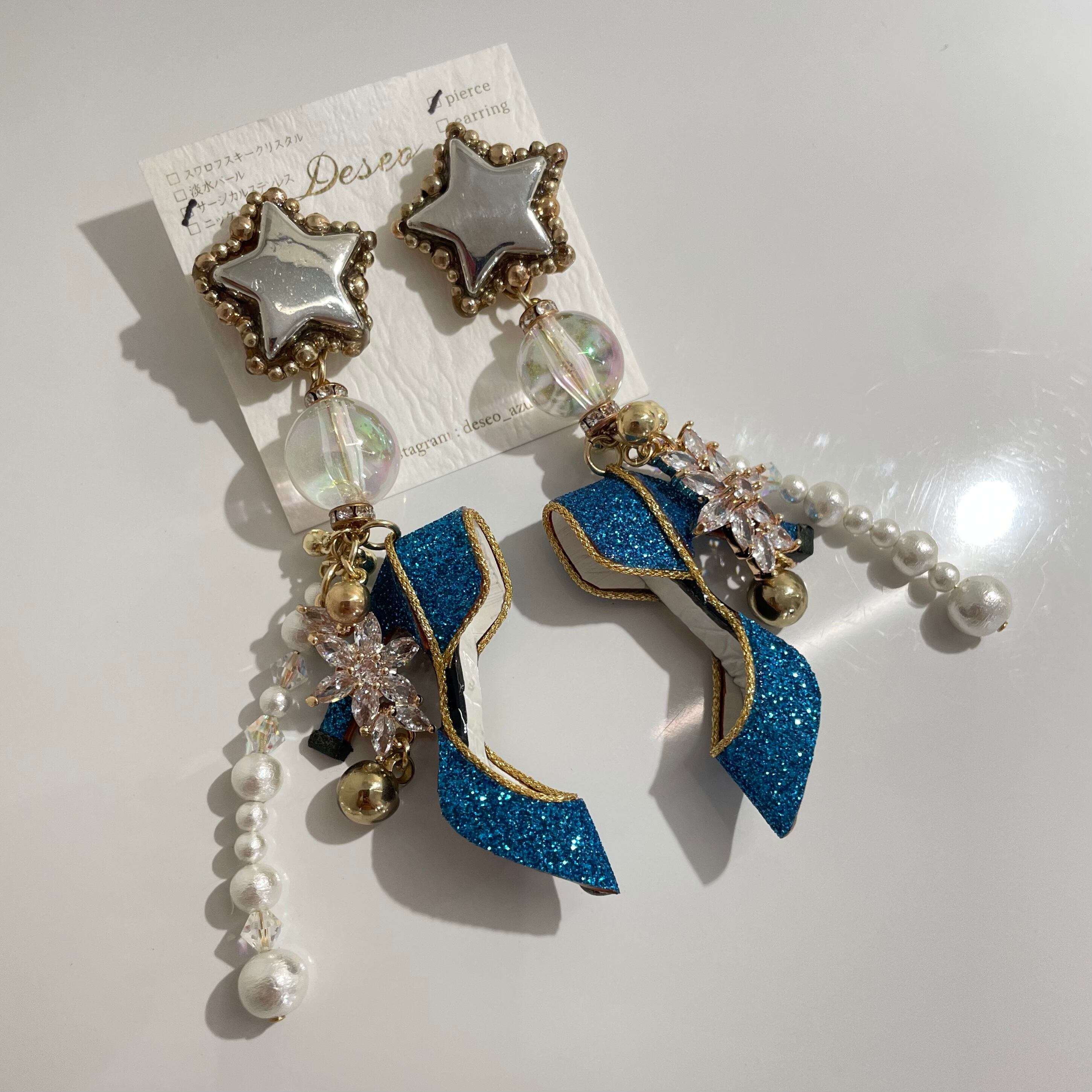 水色ラメハイヒール❤️POPシンデレラ★ハイヒールピアス ハイヒールイヤリング NO.354