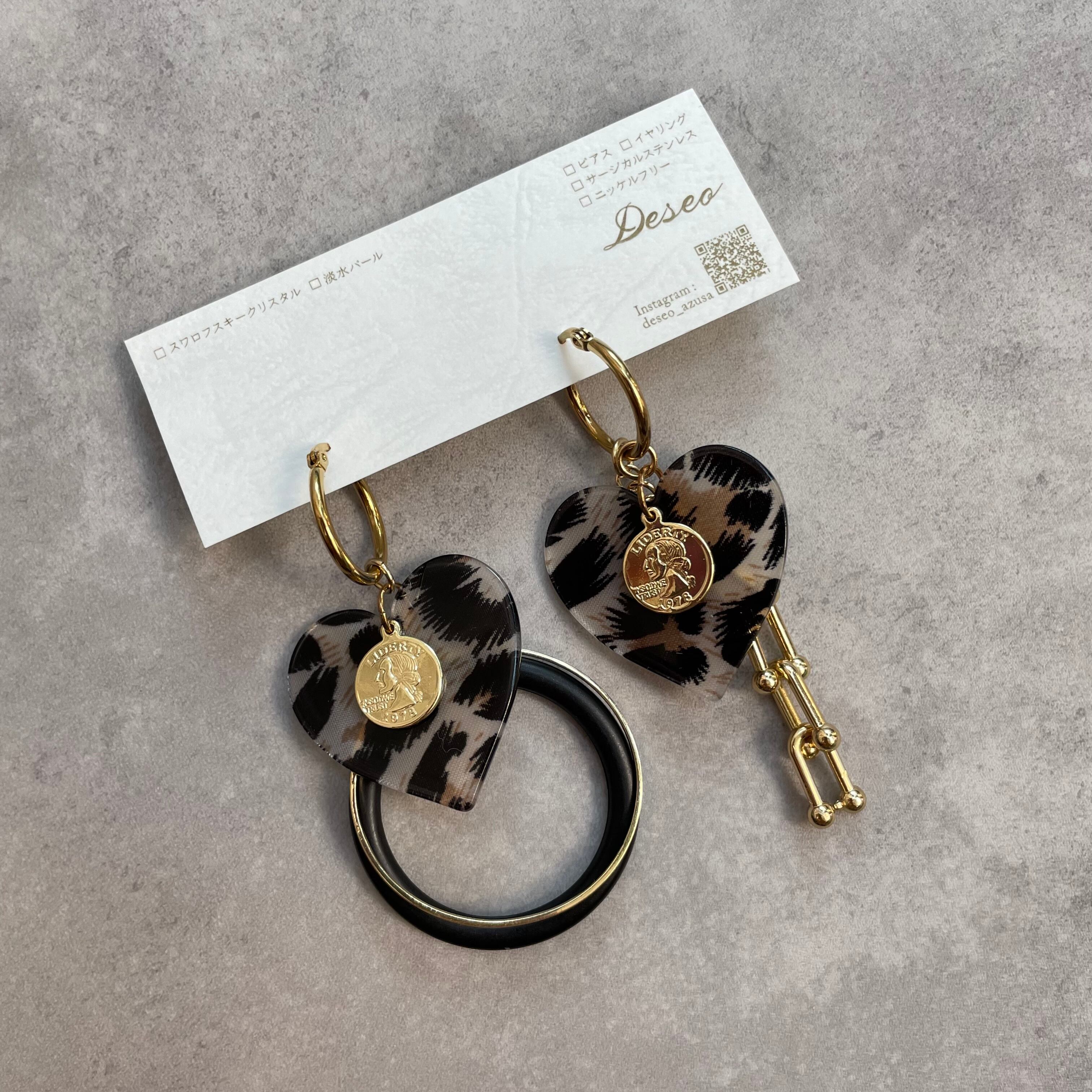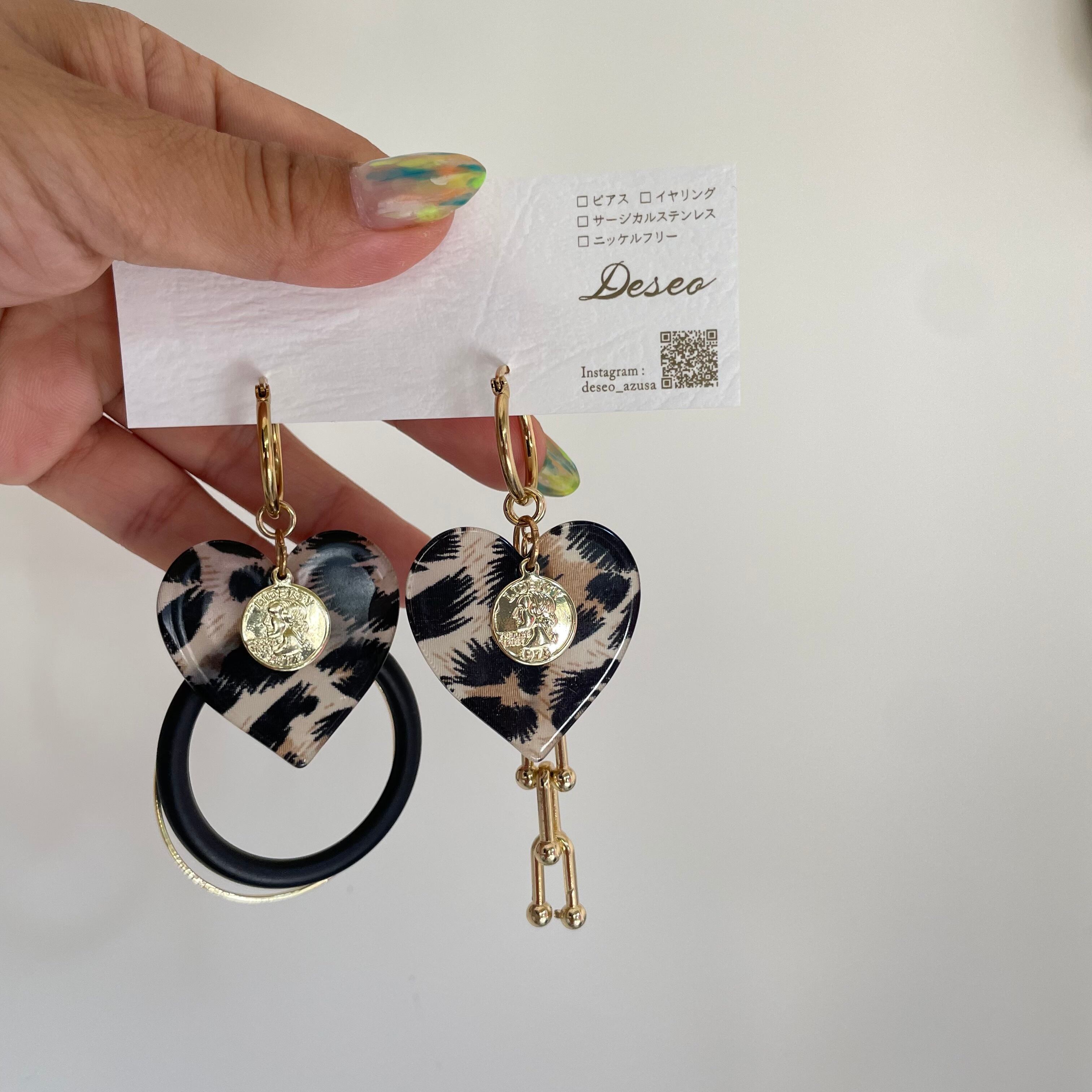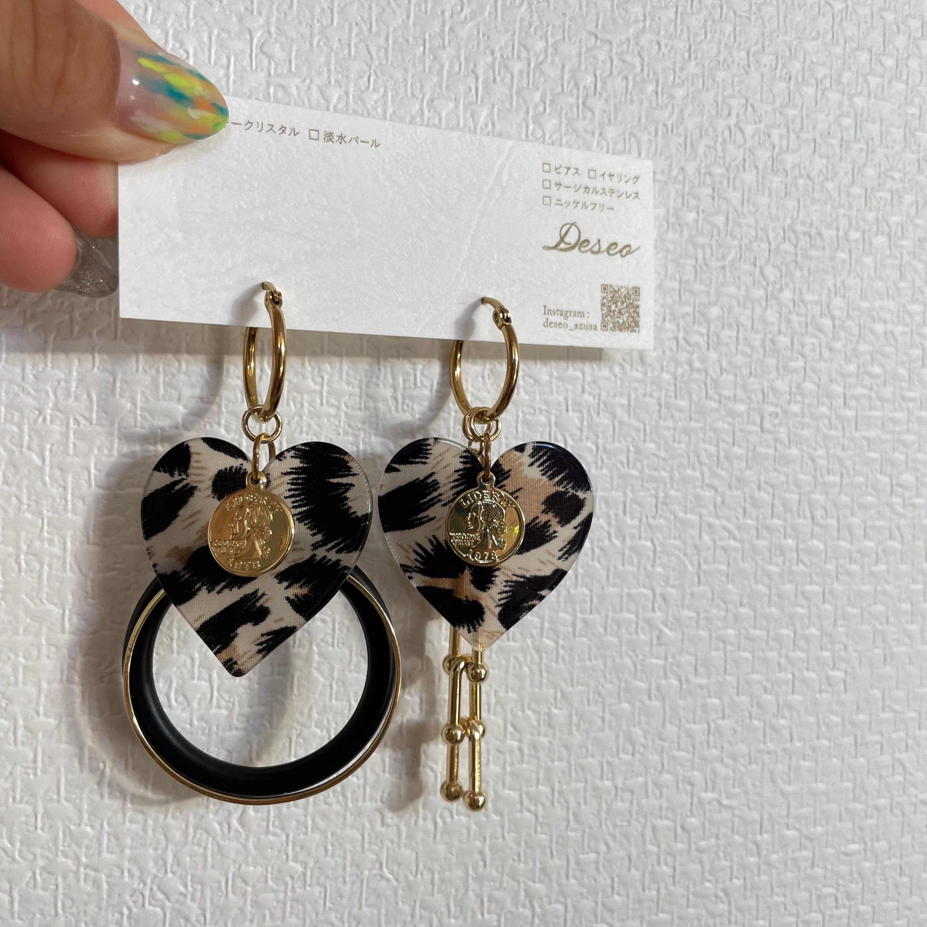Heart Leopard❤️レオパ柄 ヒョウ柄ハート✨フープピアス フープイヤリング★NO.366
