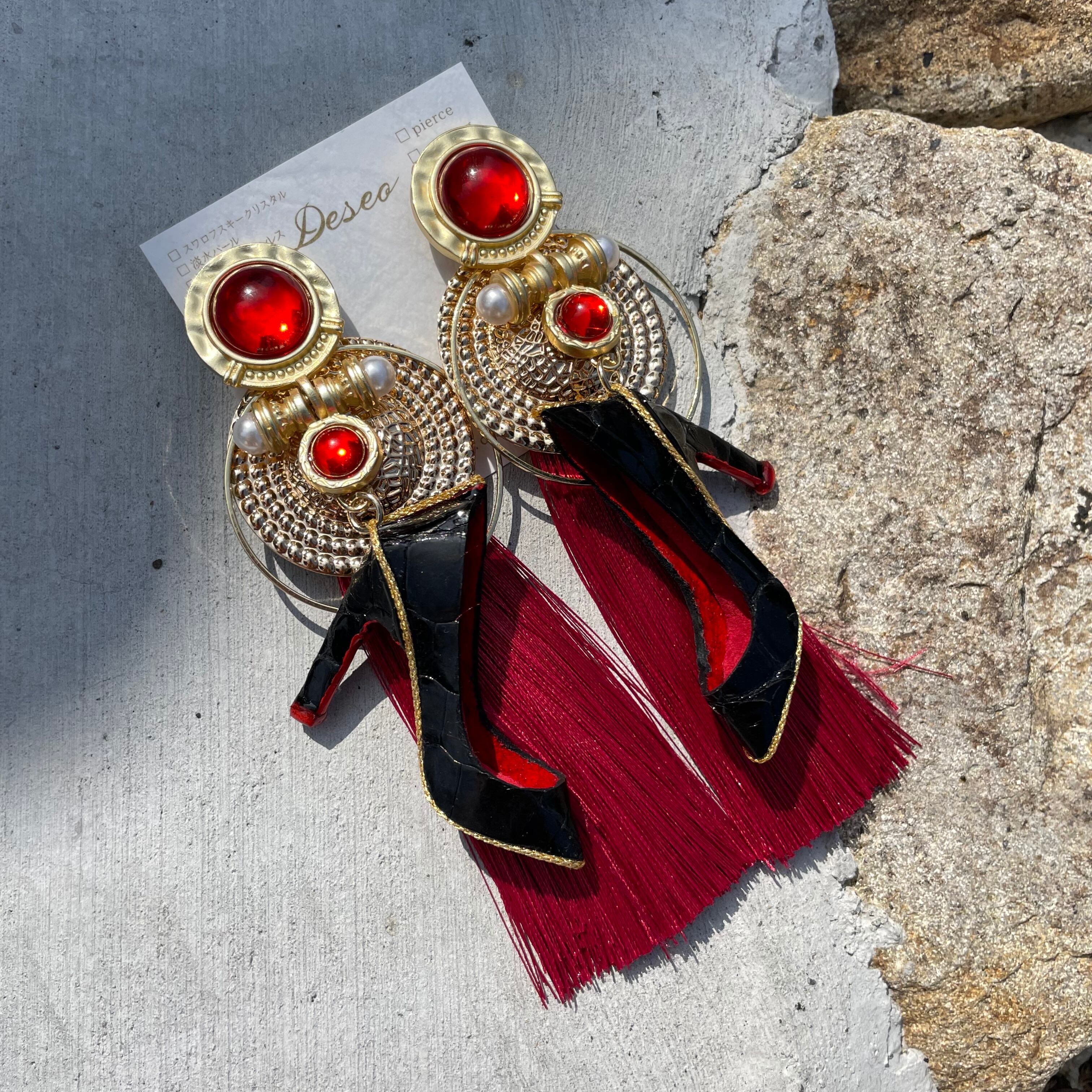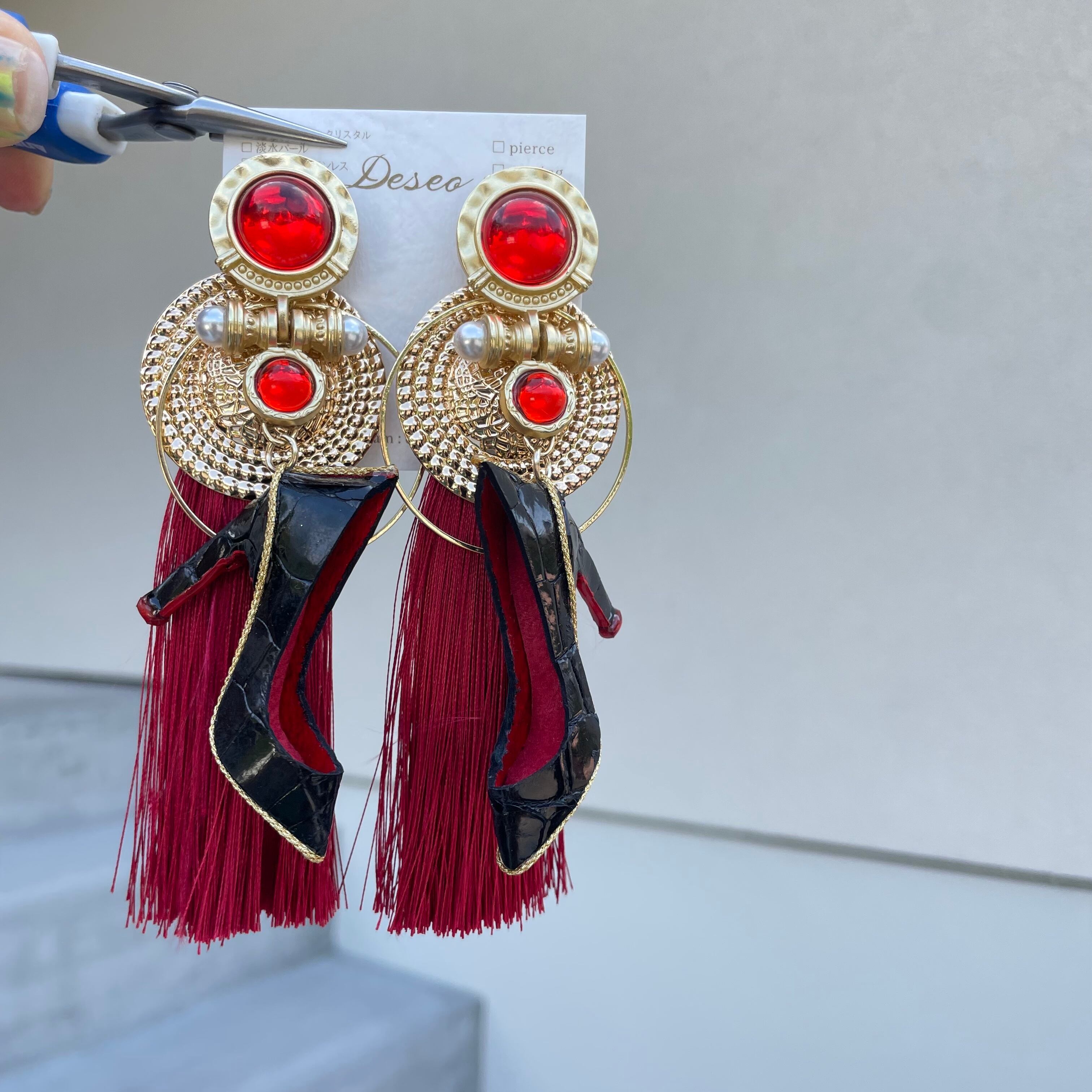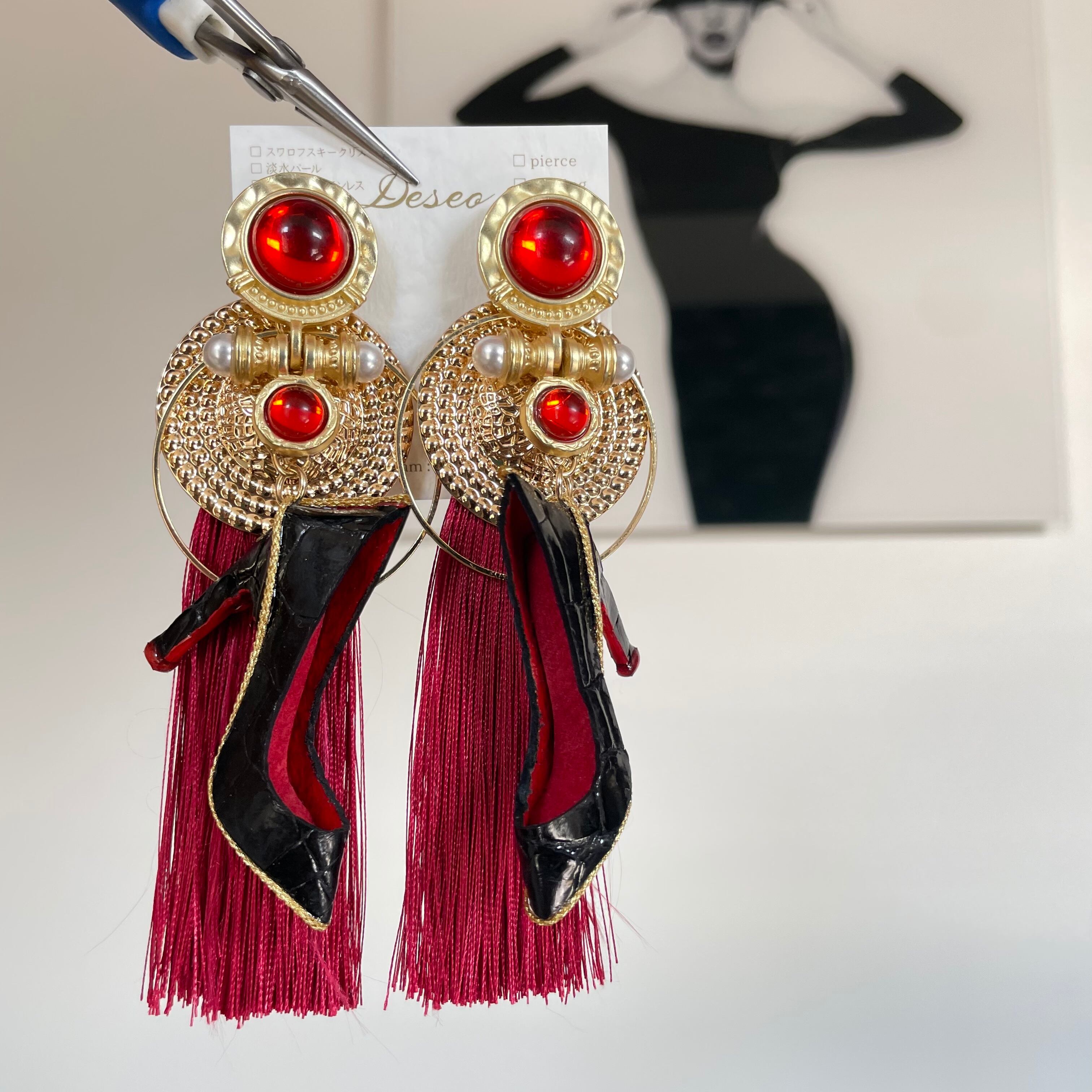 エナメルワニ革ハイヒール❤️クロコ✨取り外しタッセルキャッチ★ハイヒールピアス ハイヒールイヤリング✨NO.383