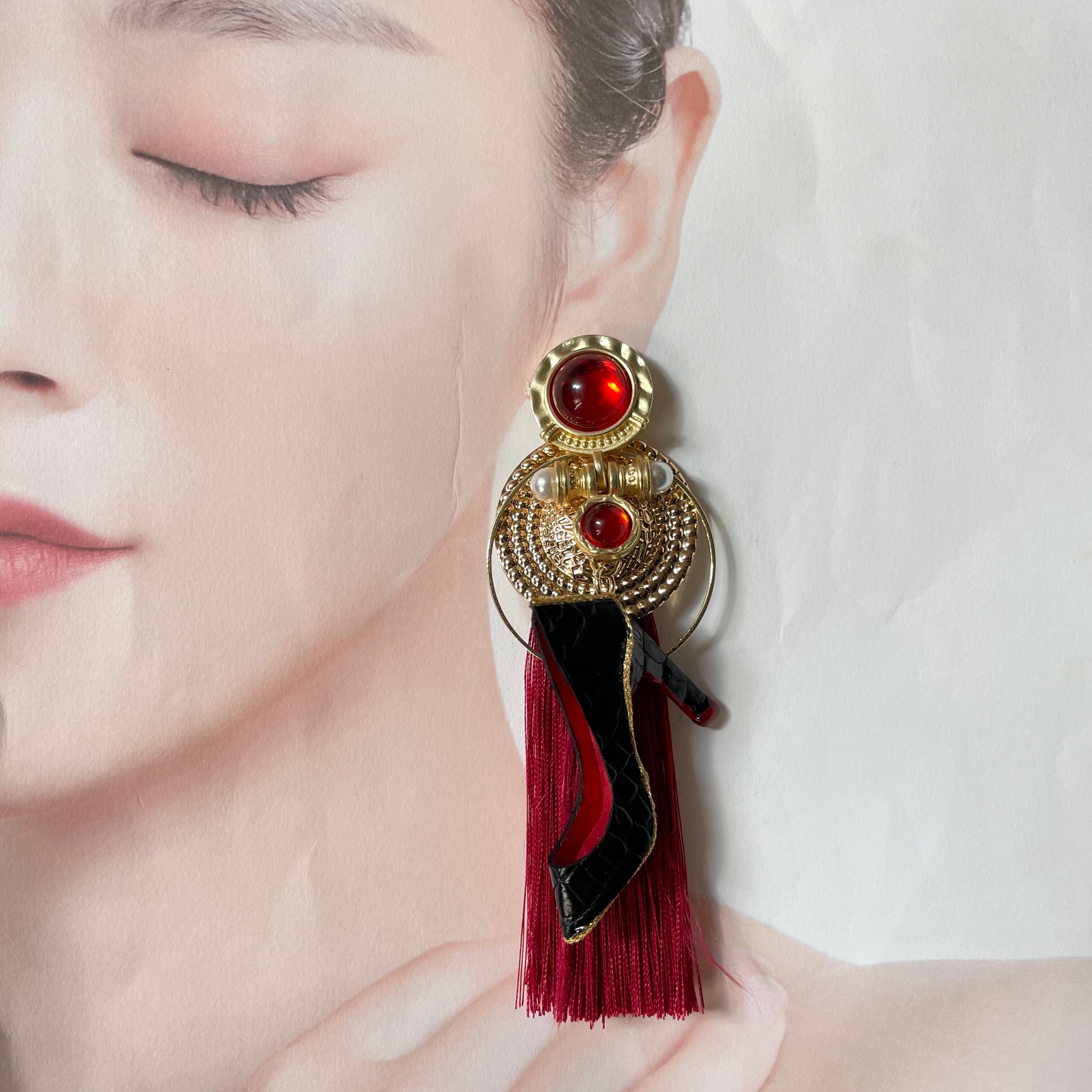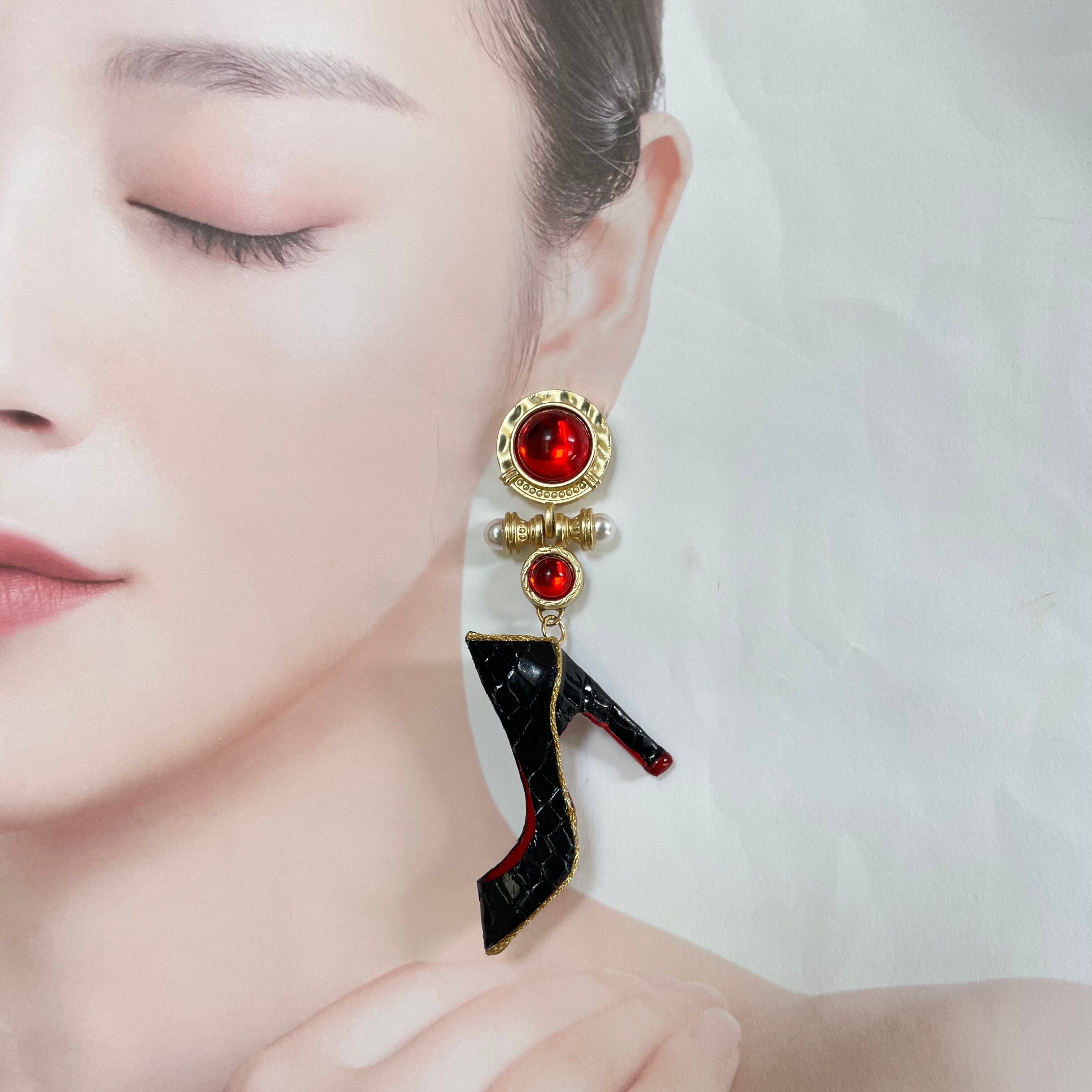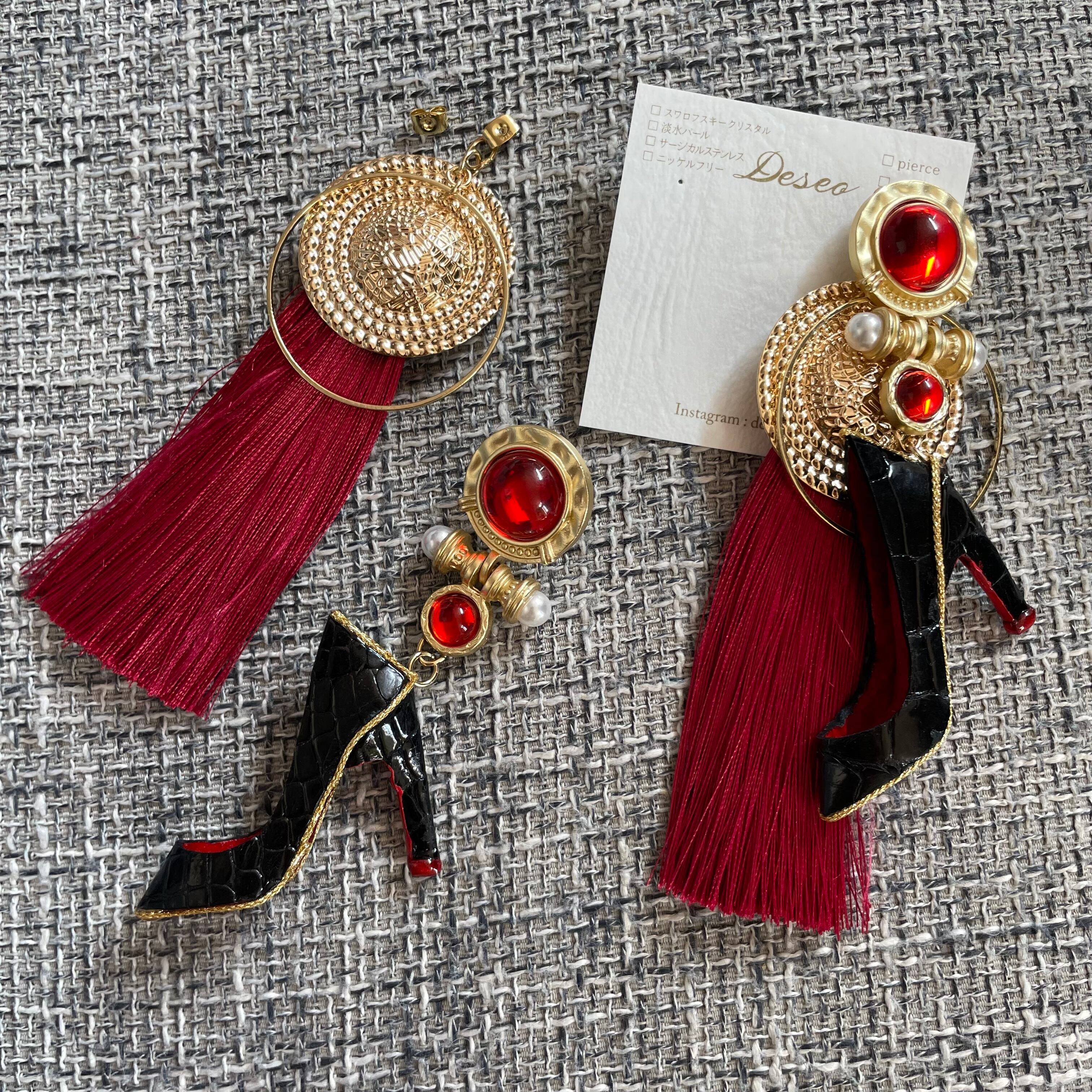 エナメルワニ革ハイヒール❤️クロコ✨取り外しタッセルキャッチ★ハイヒールピアス ハイヒールイヤリング✨NO.383